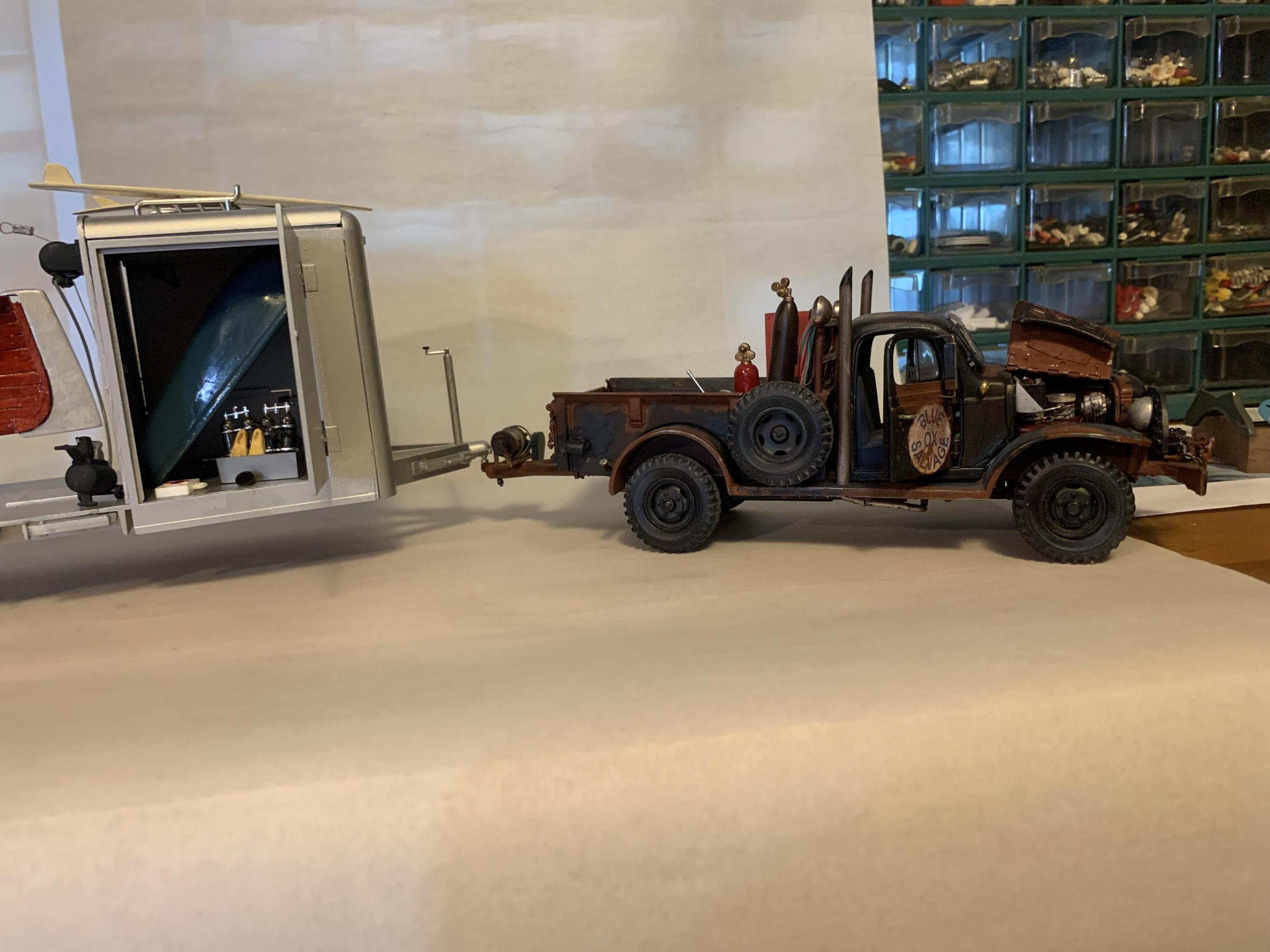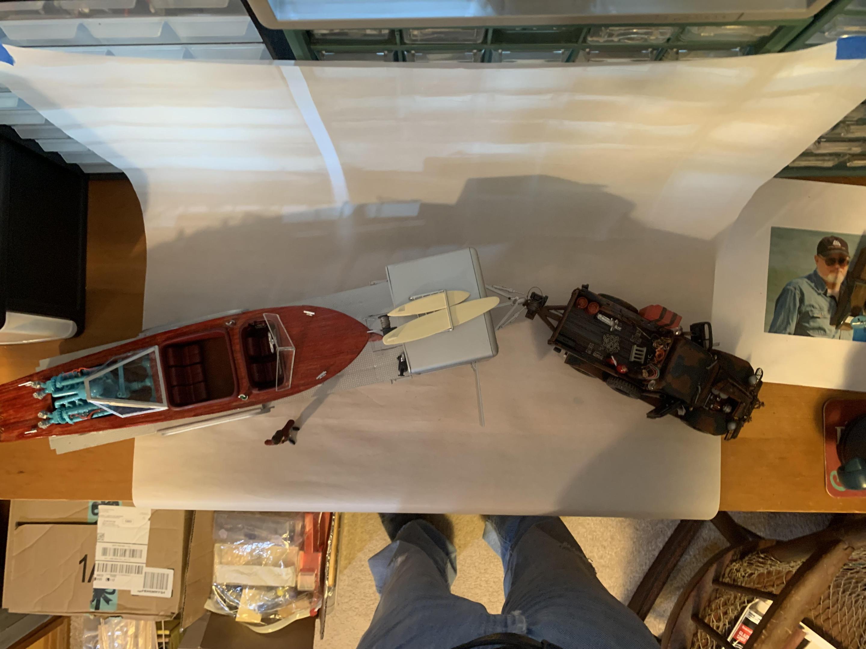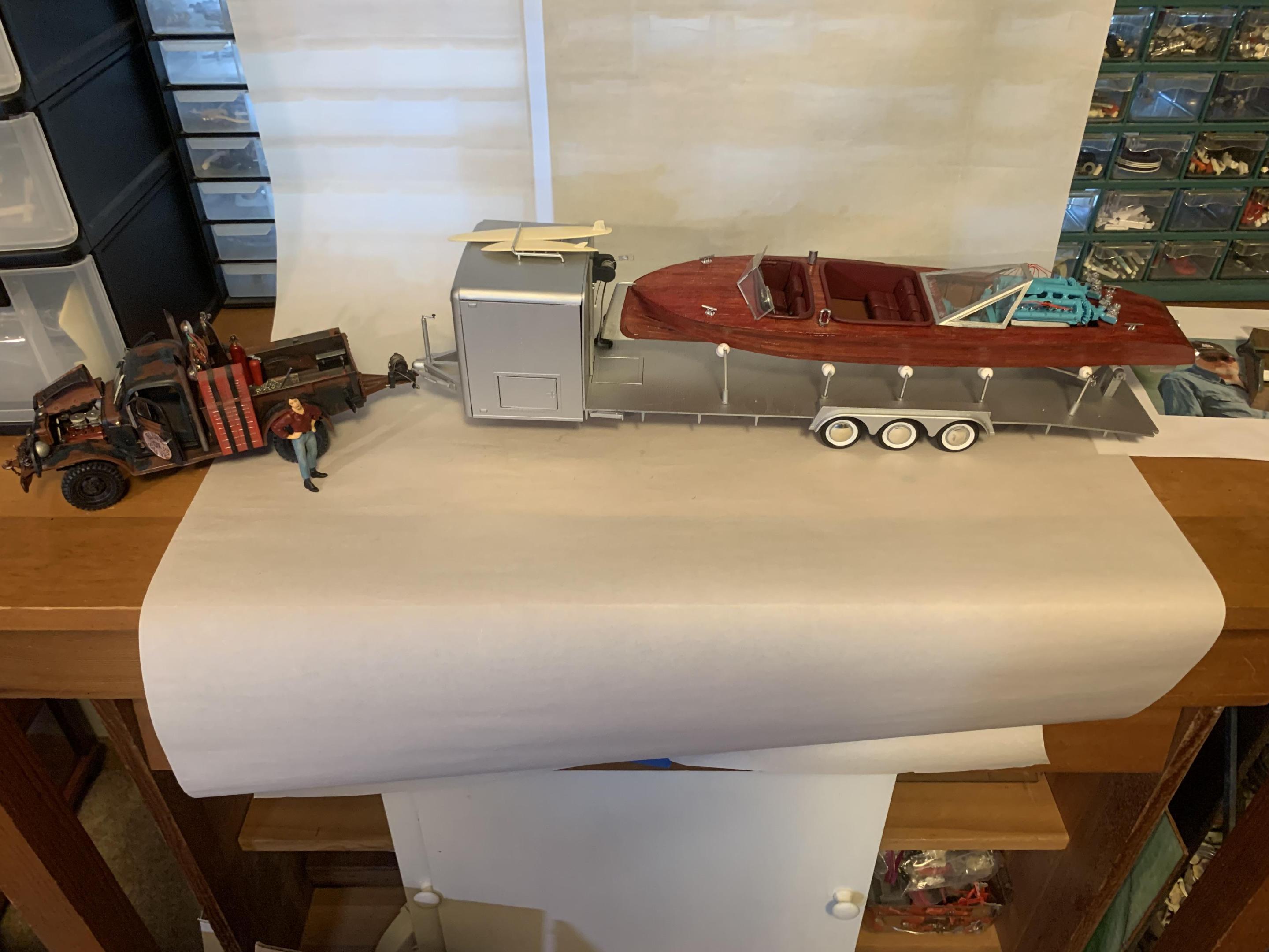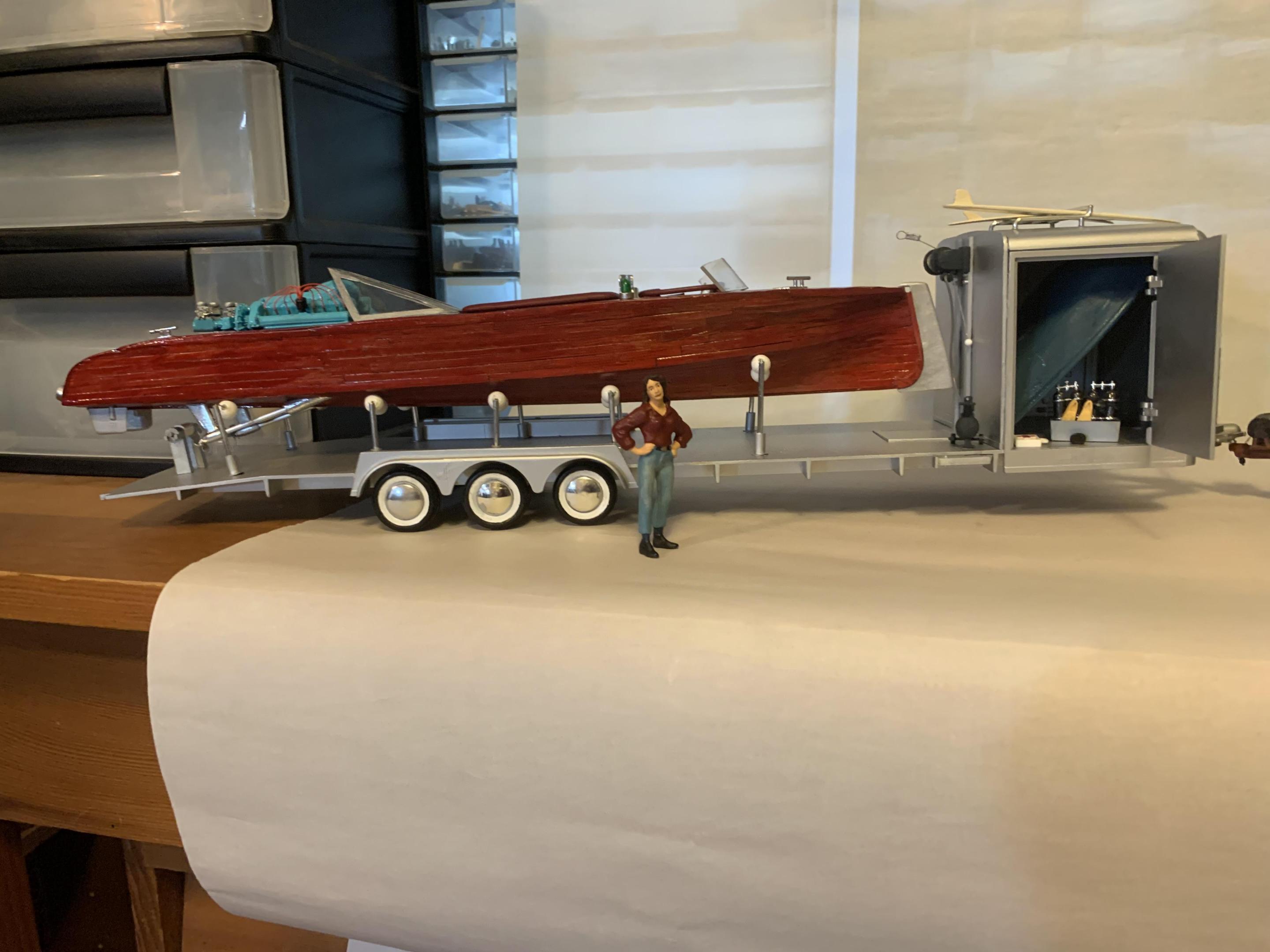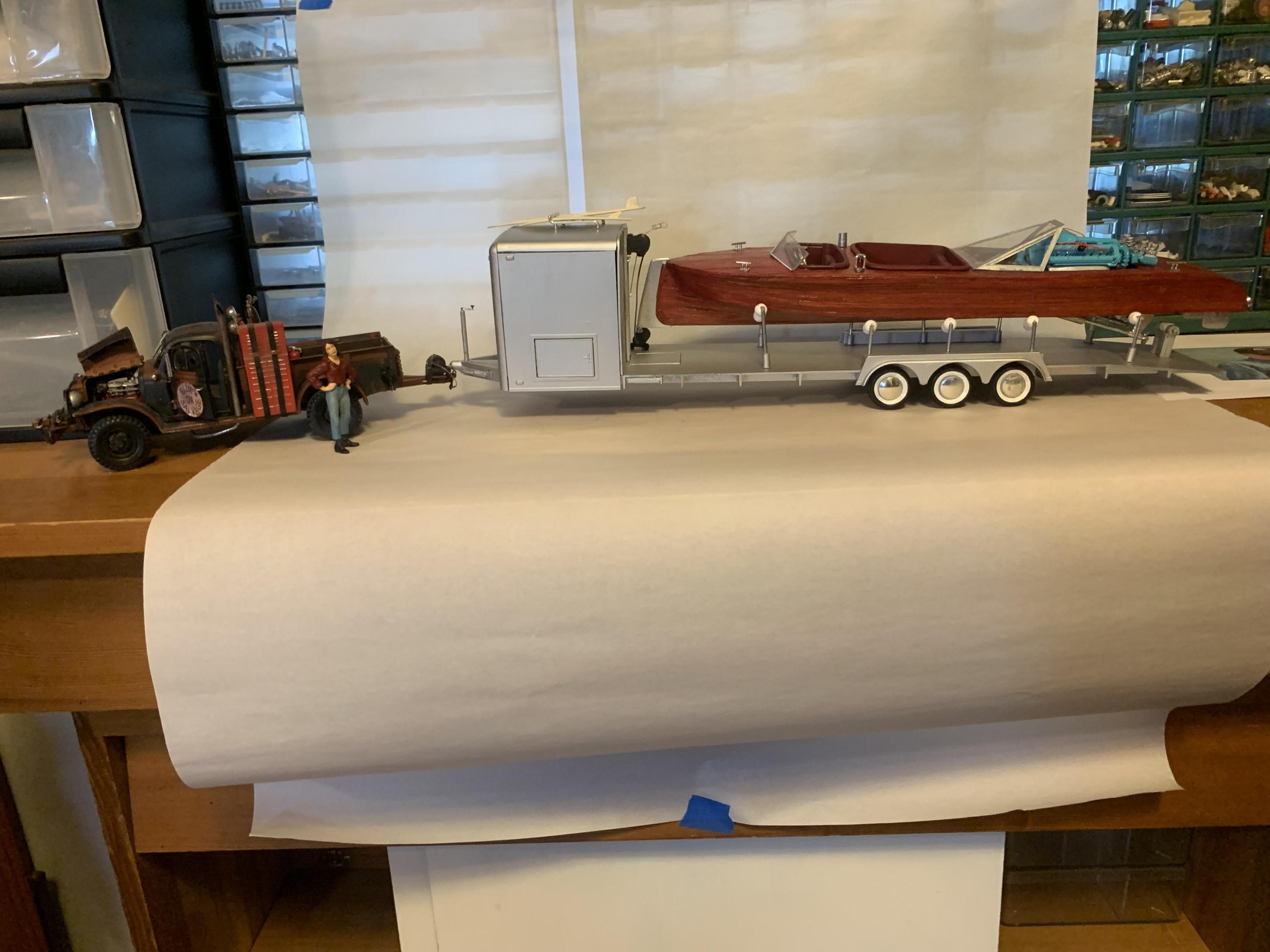 Truck, boat and trailer done! Teaser pic! More pix in under glass! Tim, please continue posting your progress here since this has become an enjoyable shared thread of info, pix and great ideas! -