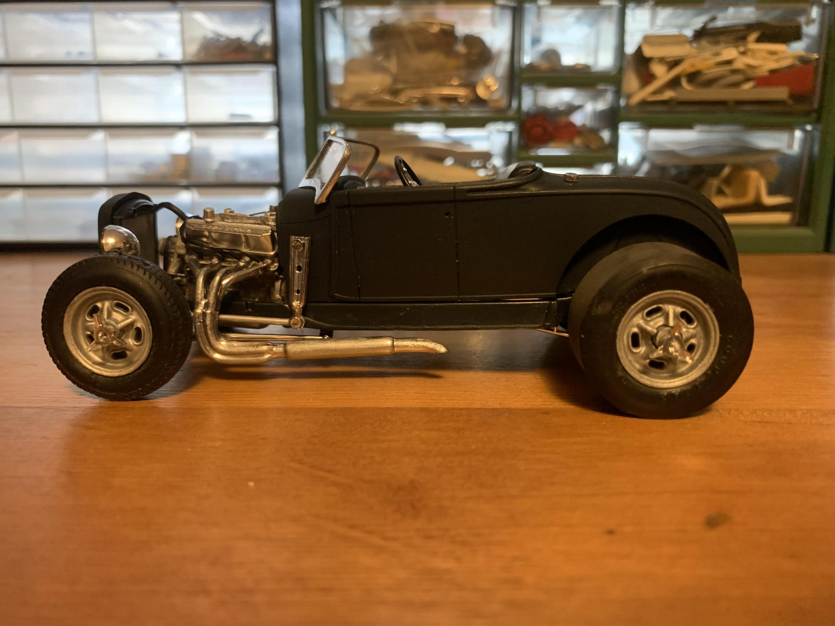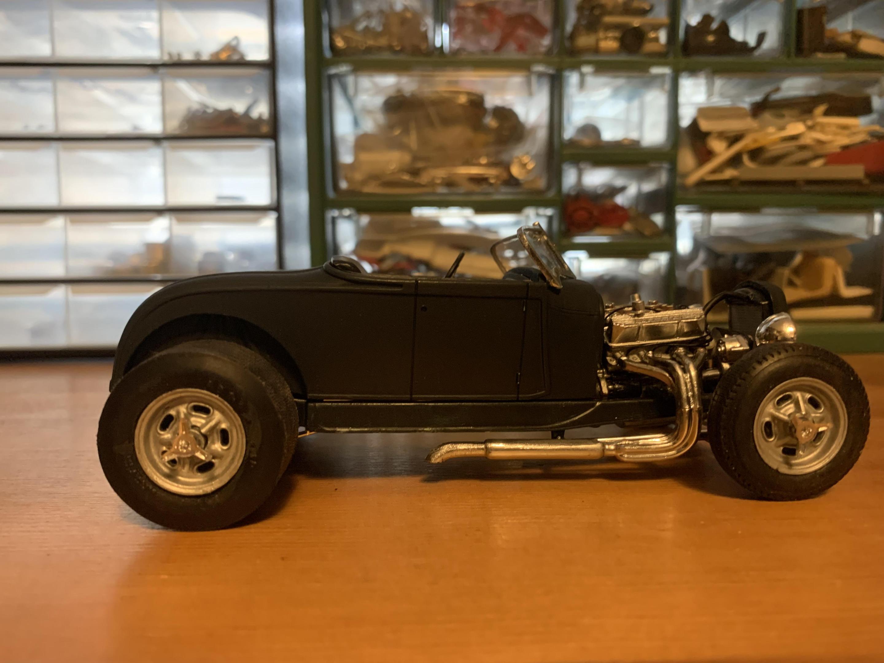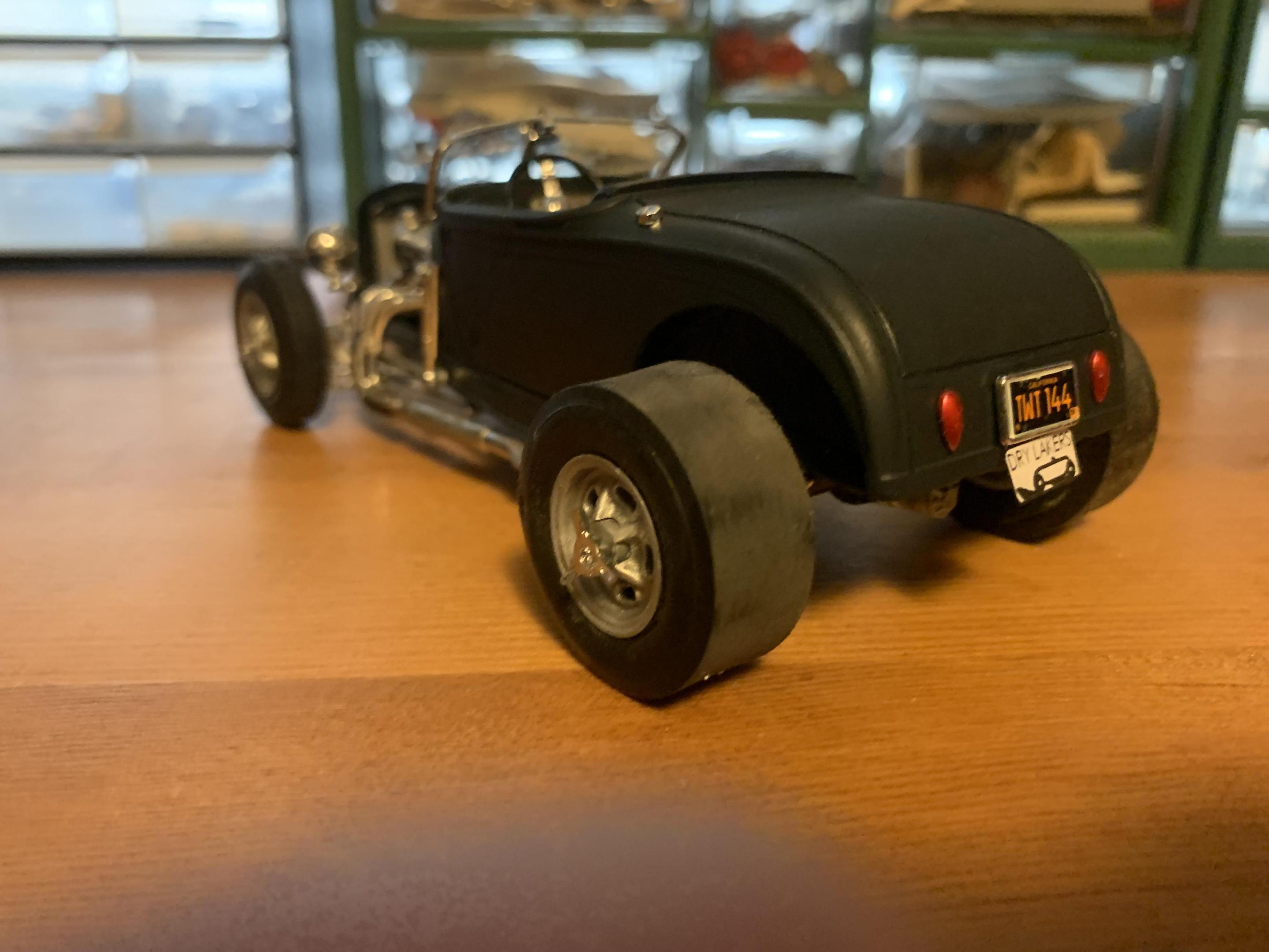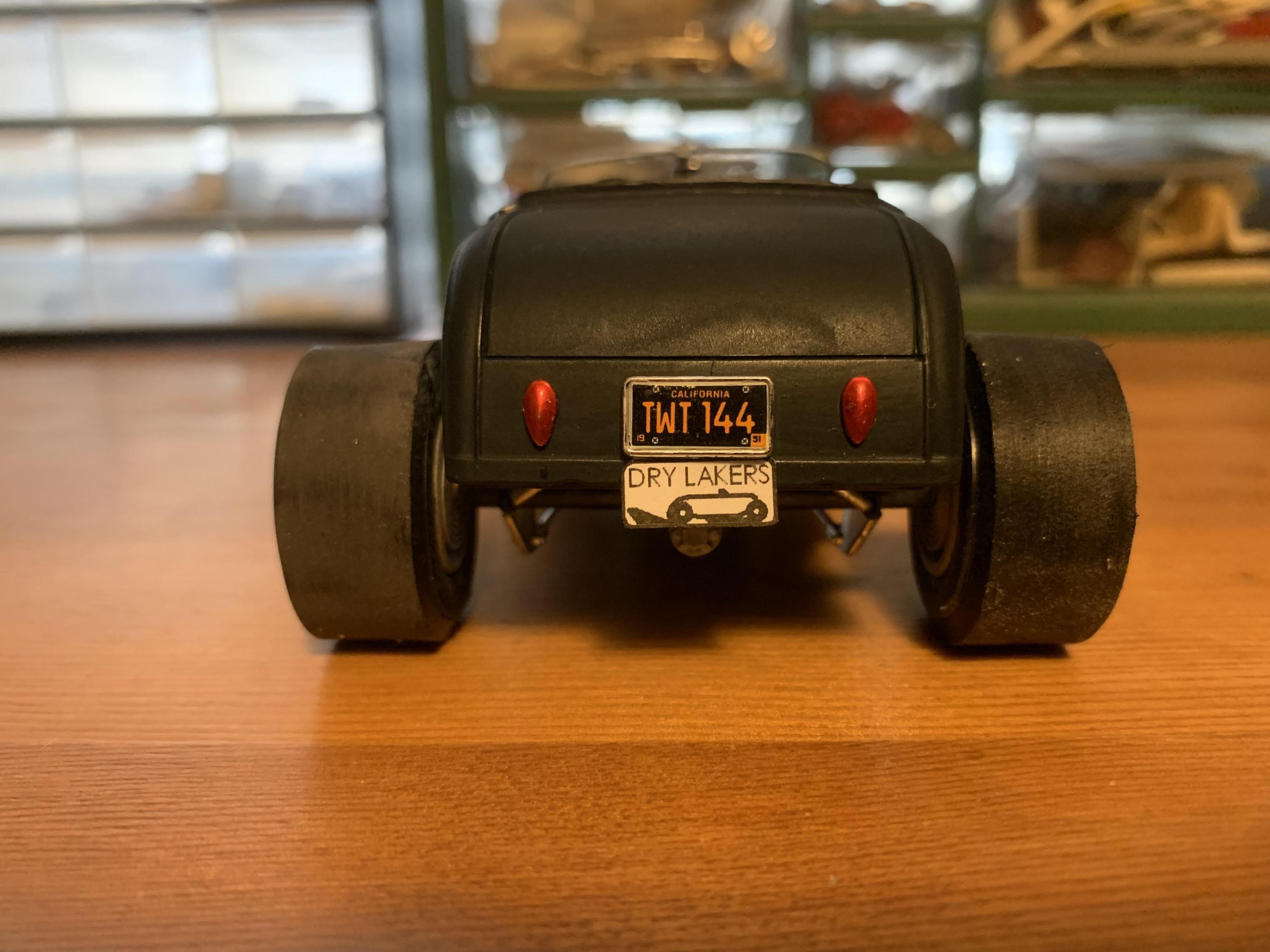 First of all, build them how you like! I personally like either no fenders or cycle fenders attached to the axles front and rear, not attached to the rear body, but that's just me. How about a well equipped flathead? Or are you going for a more updated engine? Remember, true hot rods have three pedals......................