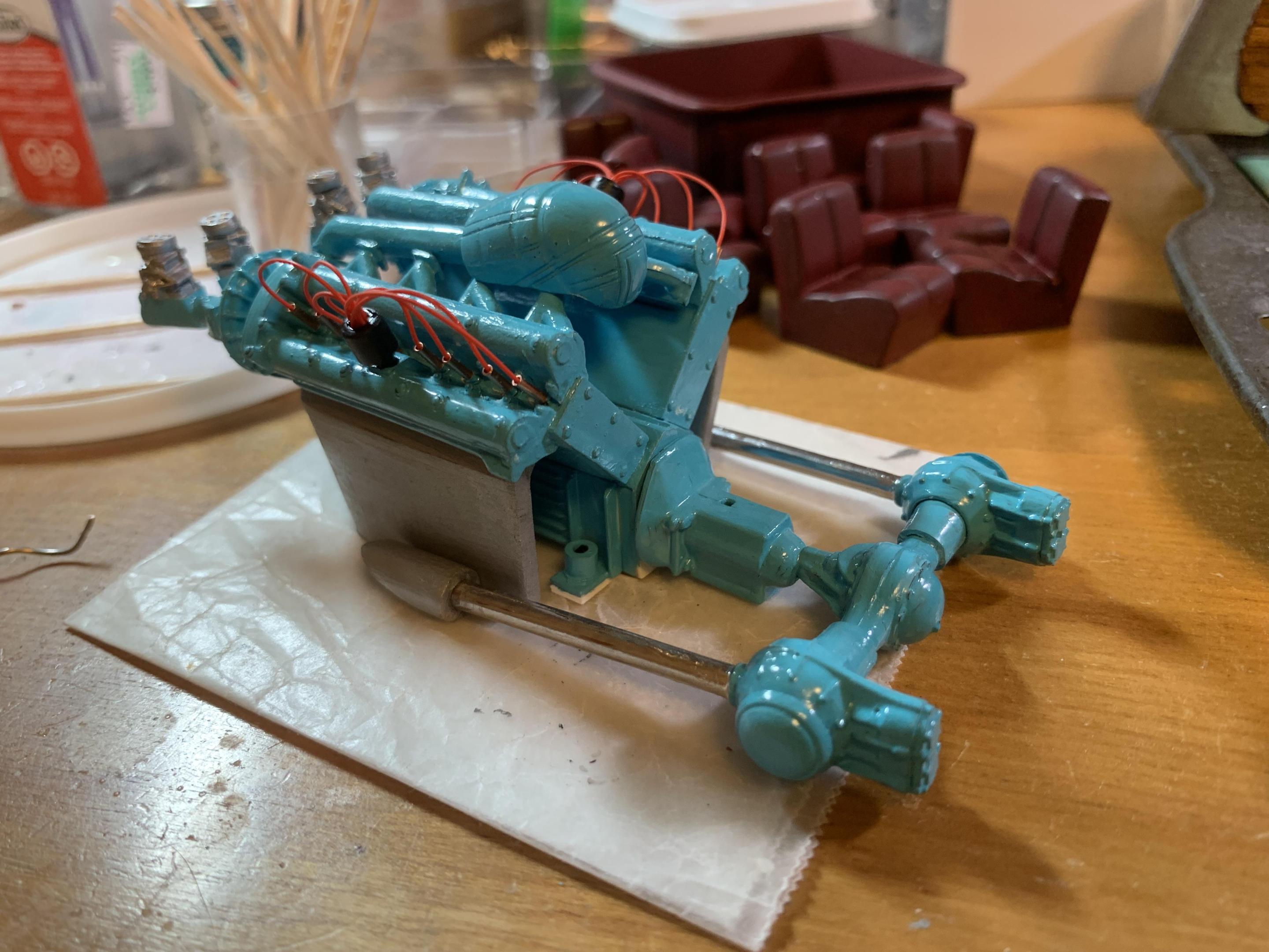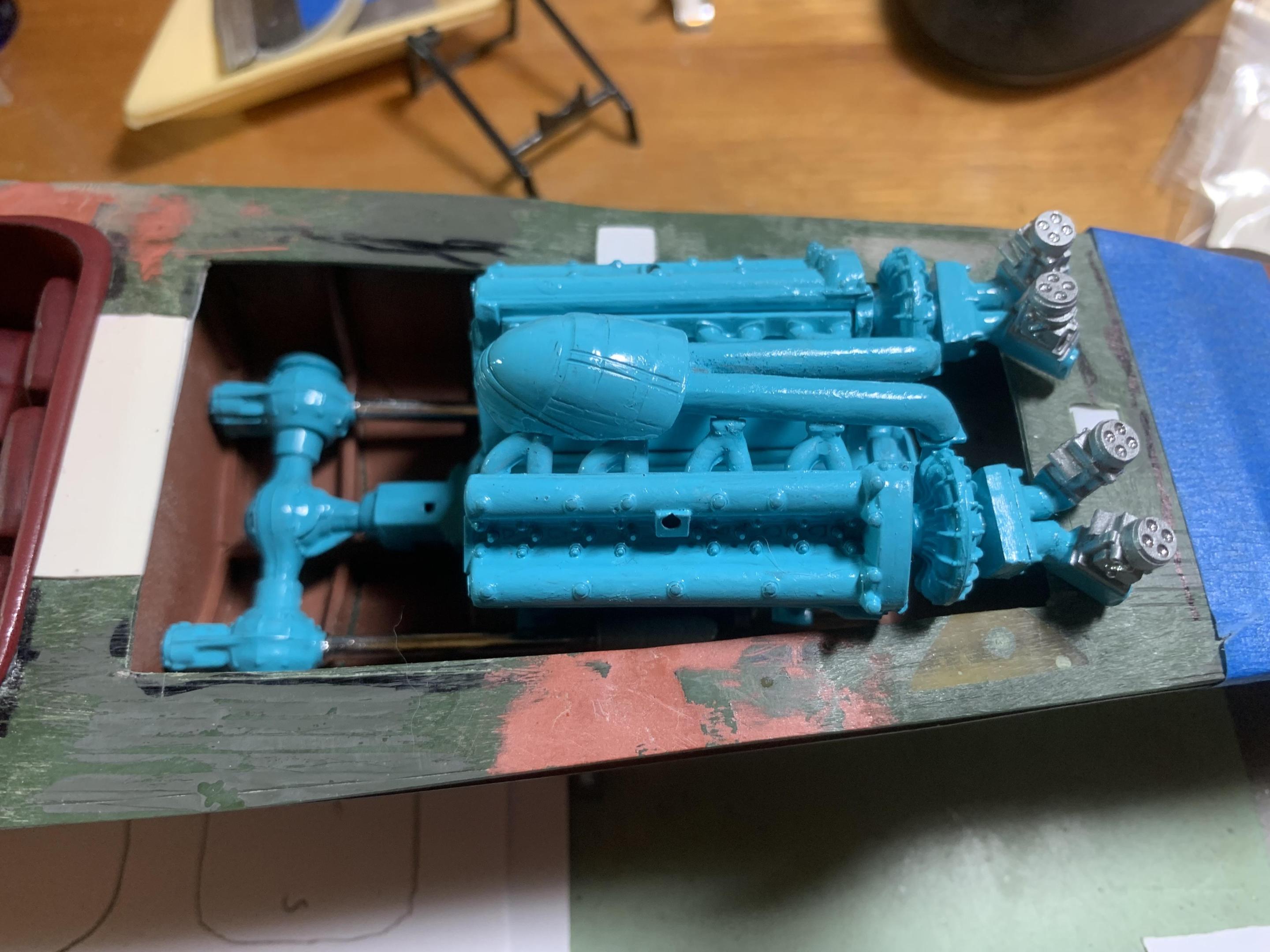 Tim, those engines look like something Harry Miller would build. He did several big boat engines for racing boats. Usually his engines were polished like this, but they were also painted, hence the paint on my engine. -