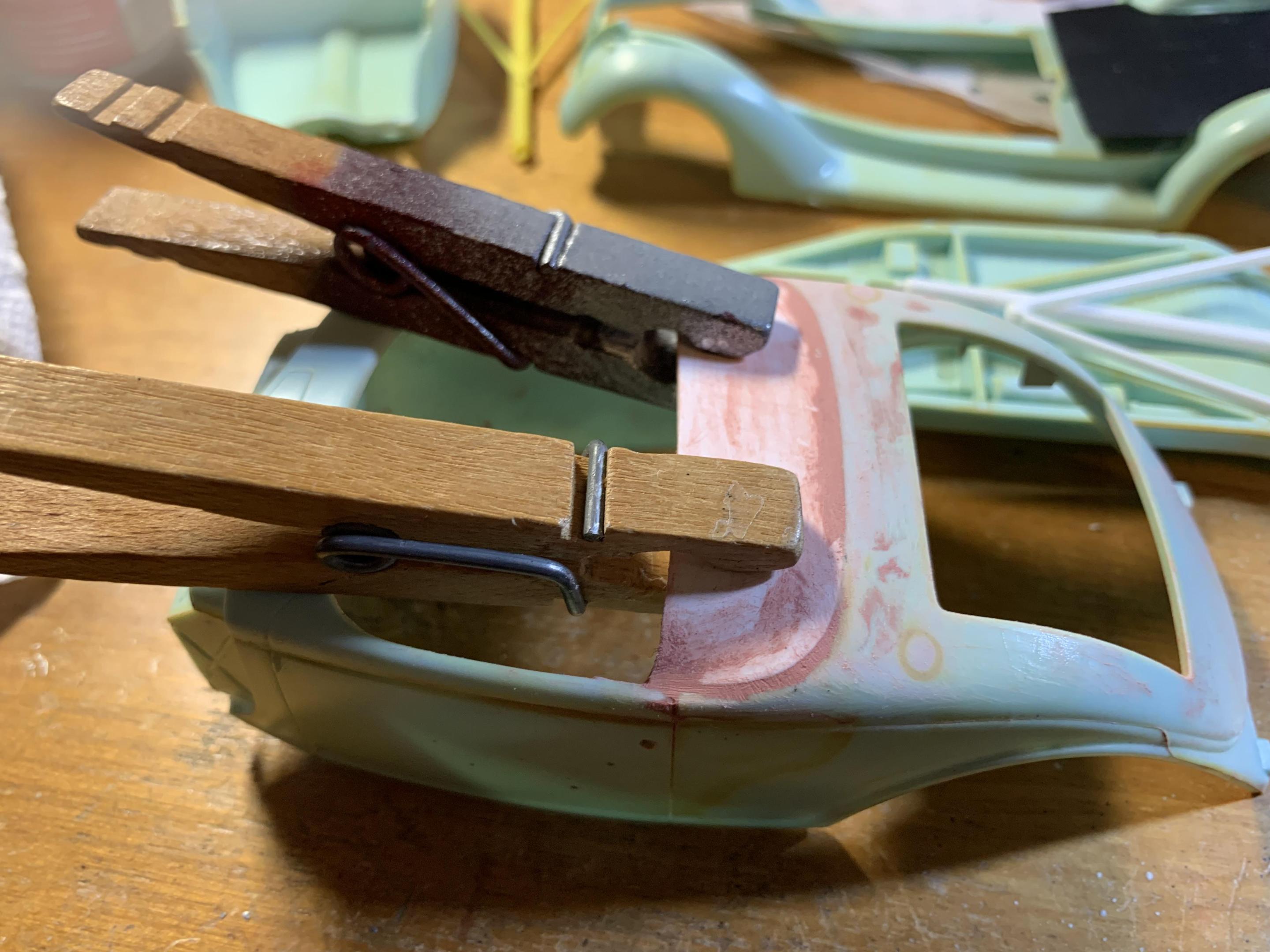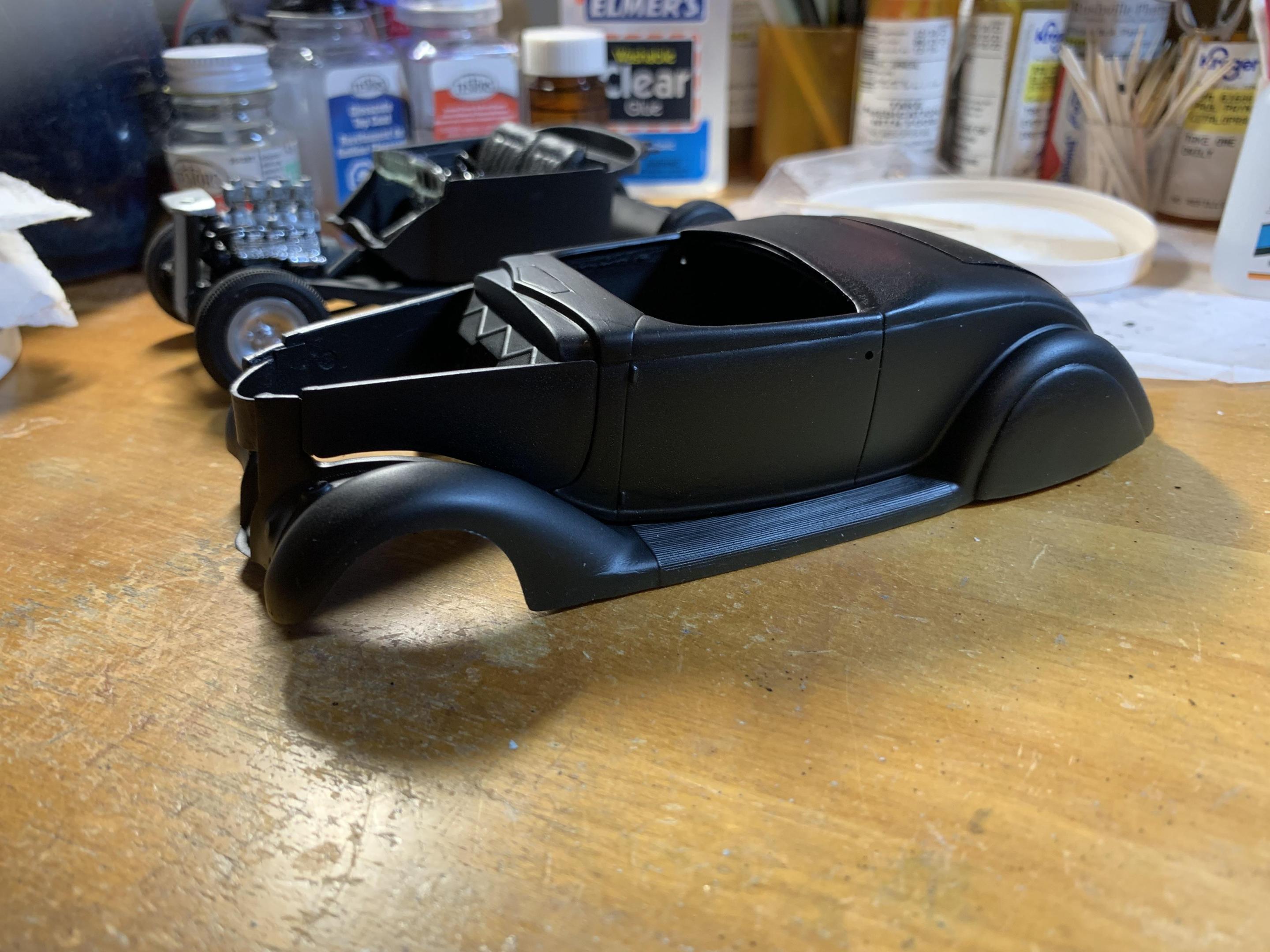 Great job on a difficult kit, but it does lend itself to a good looking model. Having built one myself, I can only suggest gluing the top on as securely and accurately as possible with liquid styrene cement, and seal the seams with super glue. I have also found the grille surround and front of the hood can be tricky- on my 36 roadster I added material to the front edges of the hood sides and was very careful to engage both locating pegs on the body to the fenders to make sure the body sits down correctly. Good luck on your next 36 Ford build!