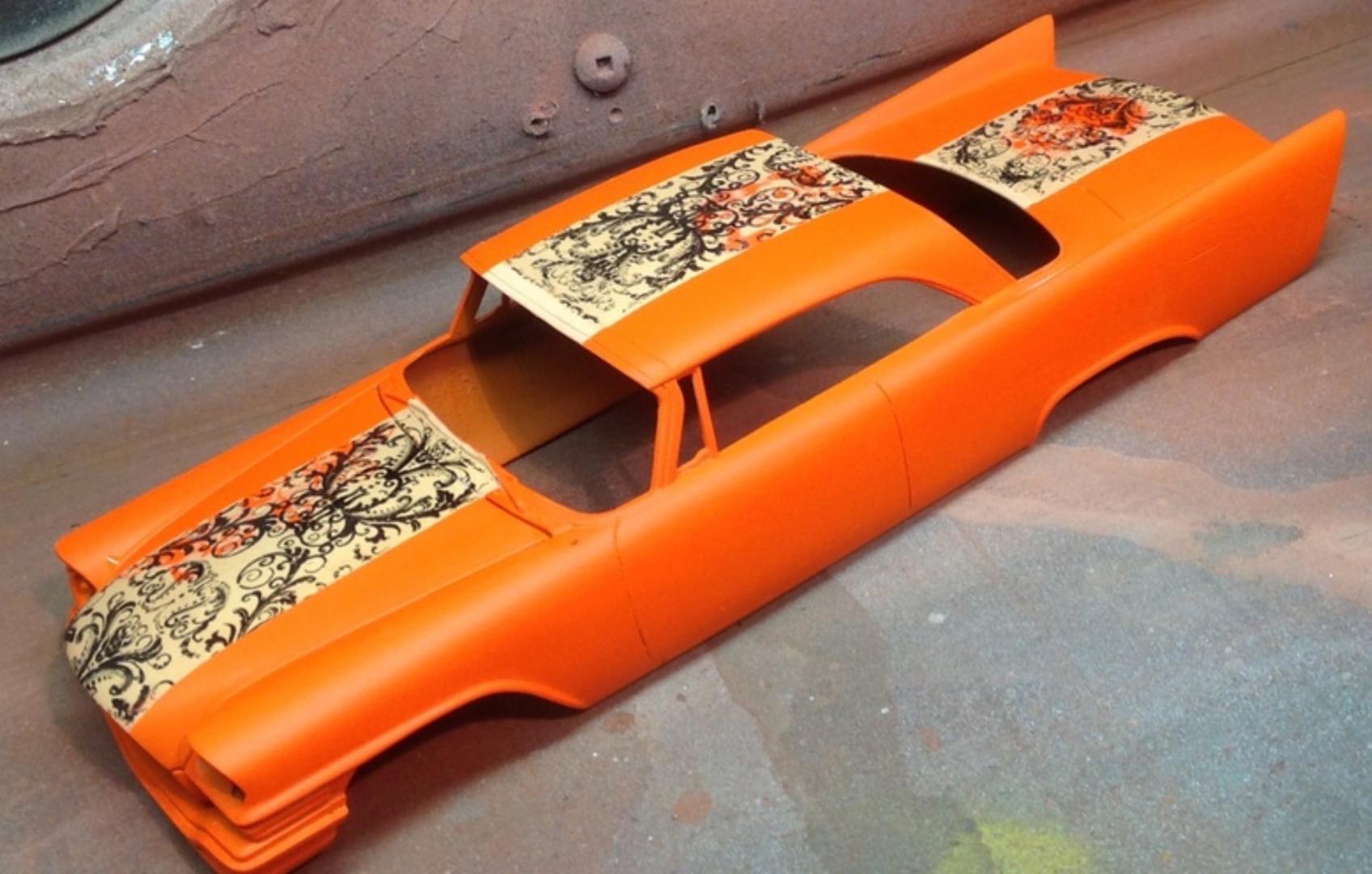 This is super, love these paint jobs, interesting pattern. I have a ton of that nail transfer stuff too. I thin the glue with ammonia and shoot it through my AB. Really looking forward to see how this turns out ?. This paint job never got finished.