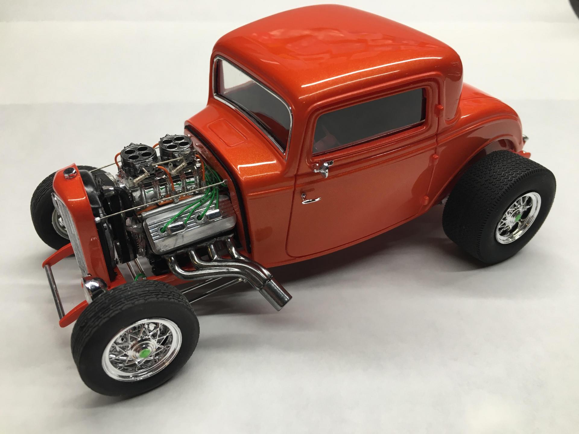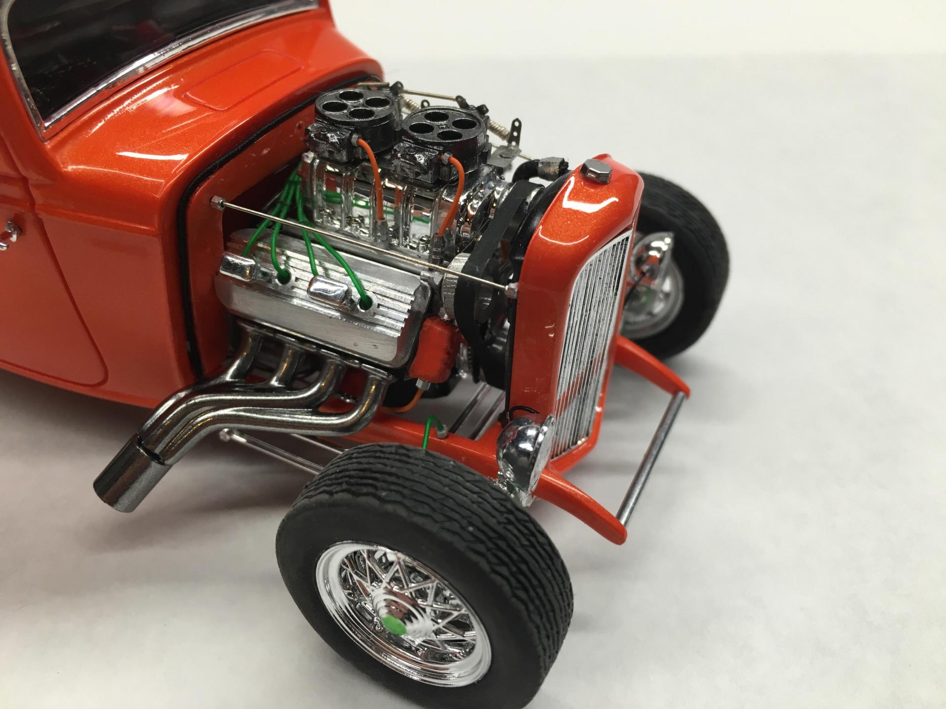 Revell kit . Custom Testors enamel color and clear . Detail Master wires and fittings . Machined aluminum valve covers by Dudek .