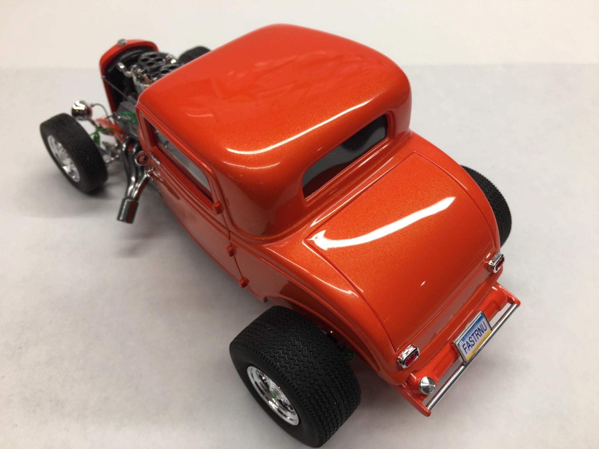 Revell kit . Custom color . Motor is from the Revell β62 Corvette gasser . Detail Master fittings and wire used throughout build . Aluminum parts were machined by Bob Dudek . Wheels are made by JDS Racing .