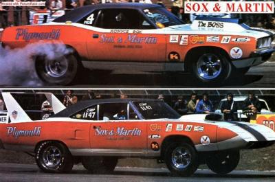 I don't know exactly how many 1970 Barracuda's Sox & Martin had...one had red bumpers, one had chrome bumpers and there were other differences, so they had at least 2, 3 or maybe more, pictures of the cars both from the time and restored cars are available on internet so do a google search on Sox & Martin and you will for sure find some. They raced Barracuda's in Pro Stock 1970, 1971 and 1972 as well as Duster's 1970, 1971, 1972 and 1973, drivers were Ronnie Sox, Herb McCandless, Don Carlton, Joe Fisher and some more and each driver had their own number on the cars (Ronnie Sox had number 200 on the Pro Stock cars he drove 1970, number 4 1971, number 23 1972 and number 200 again 1973).
