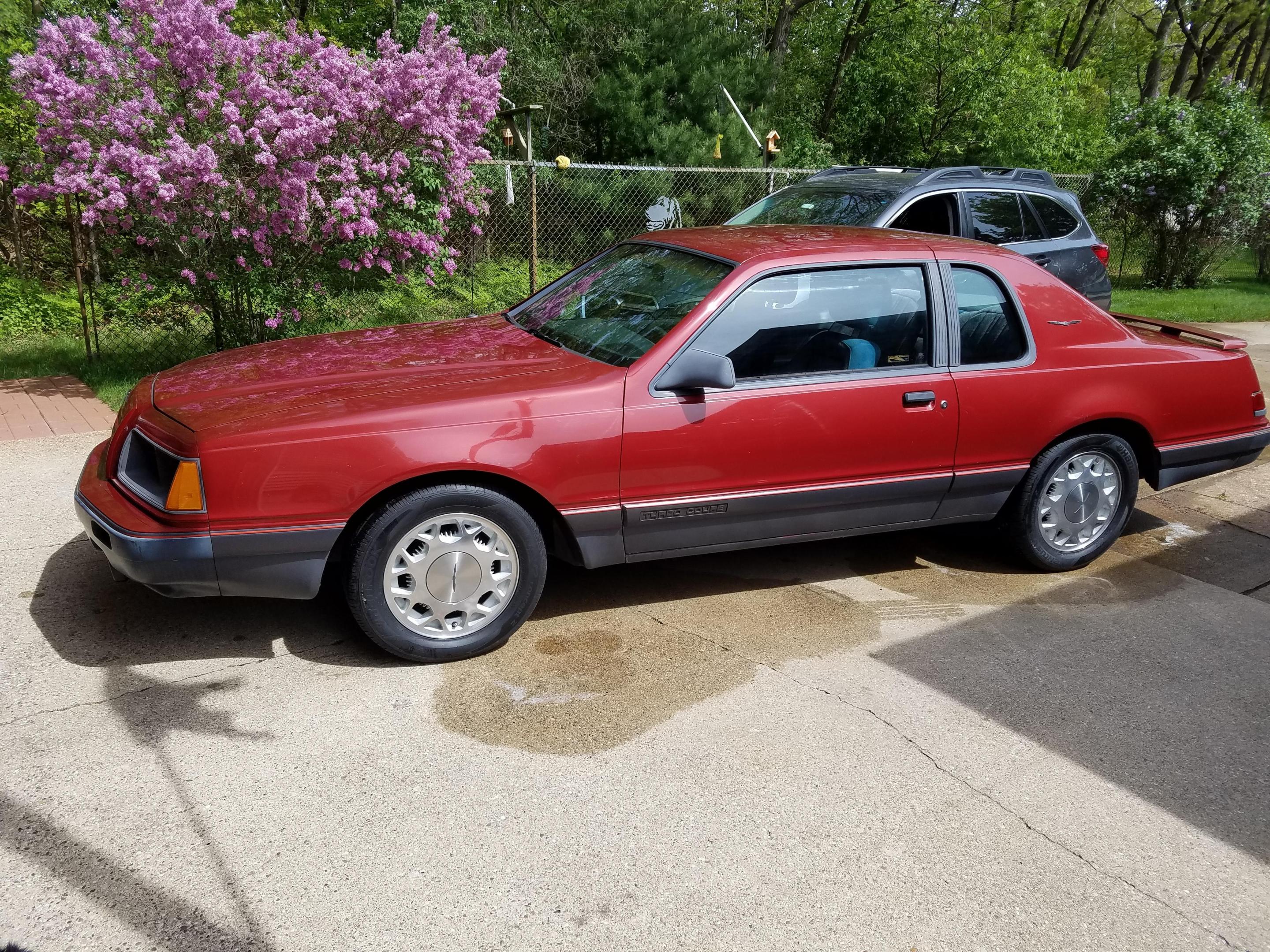 Just got this Tbird delivered yesterday, bought it Saturday and had a friend flatbed it to me. Only pic I have now is fresh off the trailer covered in dirt. It's a 1986 Turbo Coupe, 73k miles, no rust survivor. Needs some TLC but otherwise great shape. Need to wash it for sure ...........