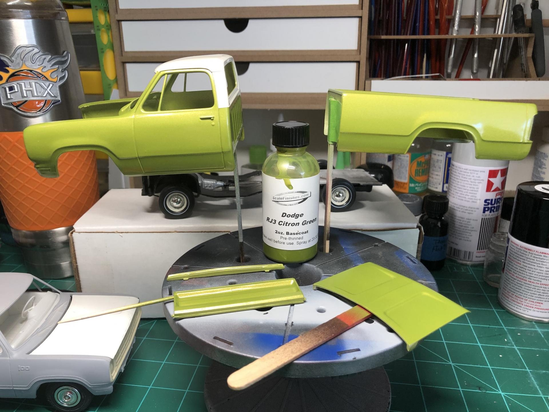 I decided to use Citron green for the main body color. Should be able to get it painted by the end of the day. -