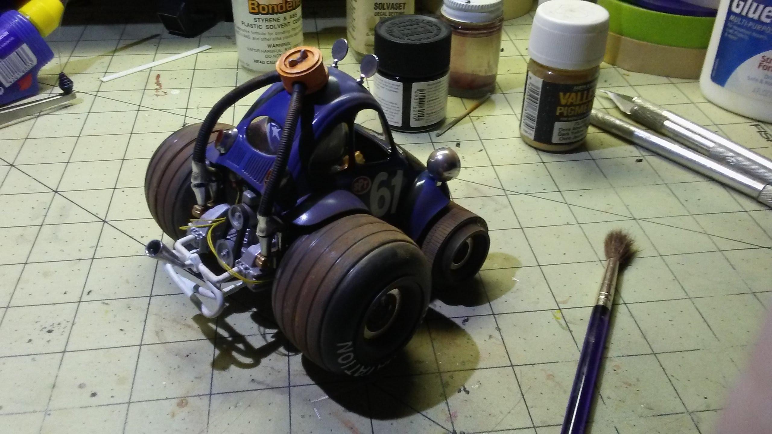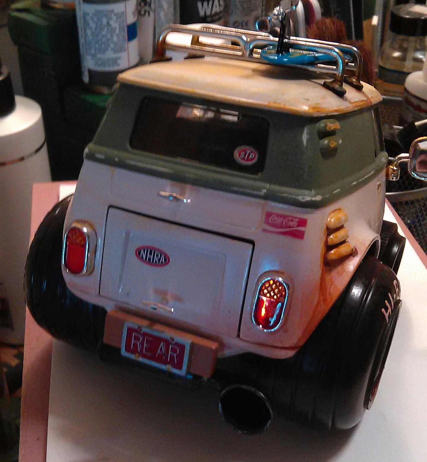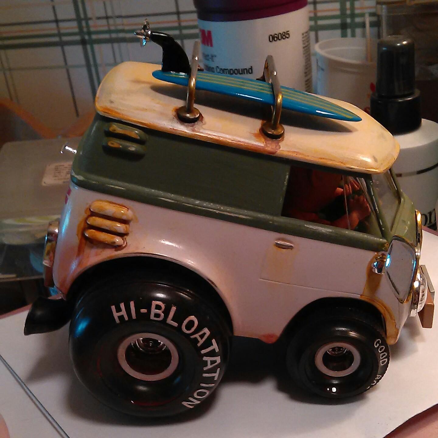 Old builds so forgive the lousy pix. These kits are just bat poop crazy in price these days. I've had most at one time or another, and my very first model car was the Bug Bomb in 72 when I was 7. Rusty and scratched on the van. A little dust and road grime on the Humbug. Just good ole fashioned fun in plastic.
