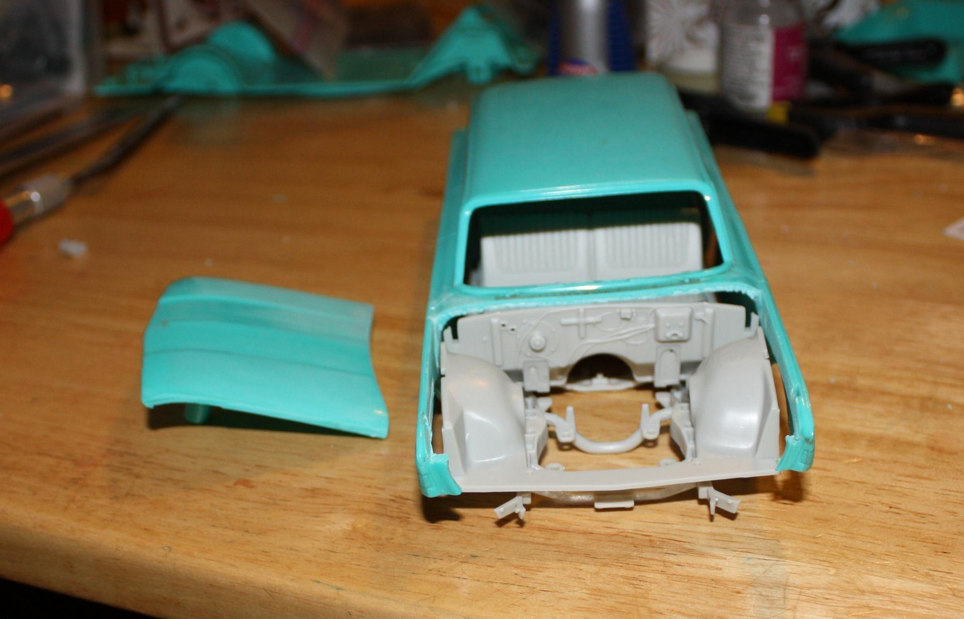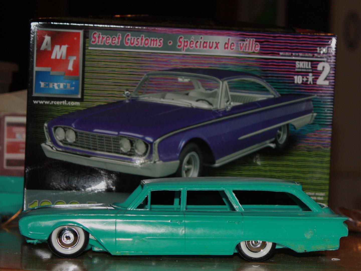 Jim I started a 60 wagon like yours and I found that the parts from the AMT kit wiill work. But the windsheild is to narrow for the wagon. The chassic is also to short, this a wagon and may correct. I cut the hood out and found the underhood fenders are almost their but there is a gap that need to filled. The grill fits which is surprising and I think the custom grills from the AMT 53 Ford pickup will also fit. Tony -