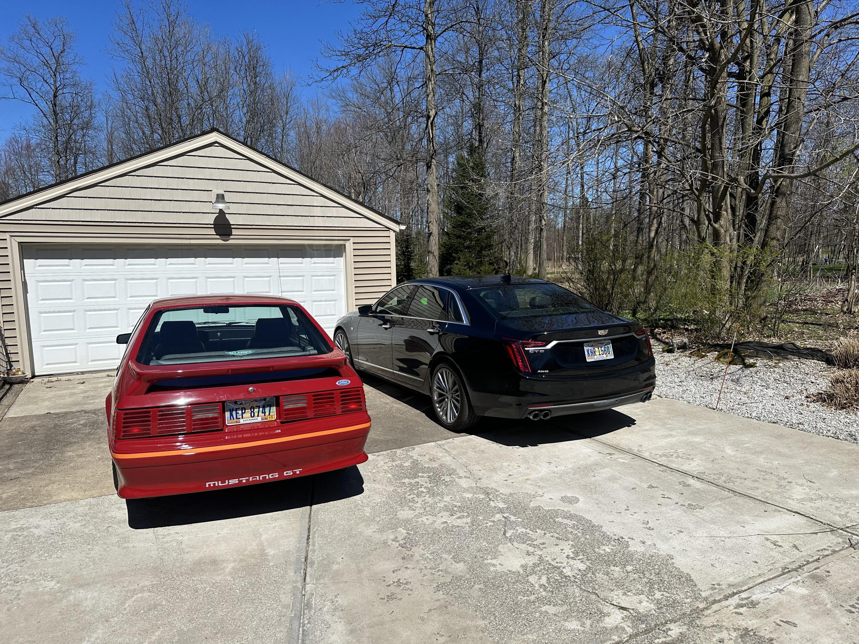 RED Turn Signals/Hazards : WHY ?!?Rob Hall replied to 1972coronet's topic in General Automotive Talk (Trucks and Cars) I like the '85-86 style... my '87 GT has the cheesegraters (which look good in red, IMO). I once thought about swapping out the cheese graters for '85-86 GT lenses or SVO lenses (which are slightly different from GT ones), but have kept it stock.. Top pic was at home on my family farm in 1990 when I had both the '87 GT and an '86 LX (my college car)...the '86 was gone by 1994. Below pic is a few months ago, the restored '87 GT and my '19 Cadillac CT6.