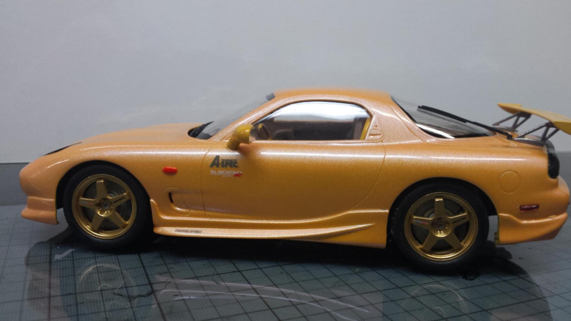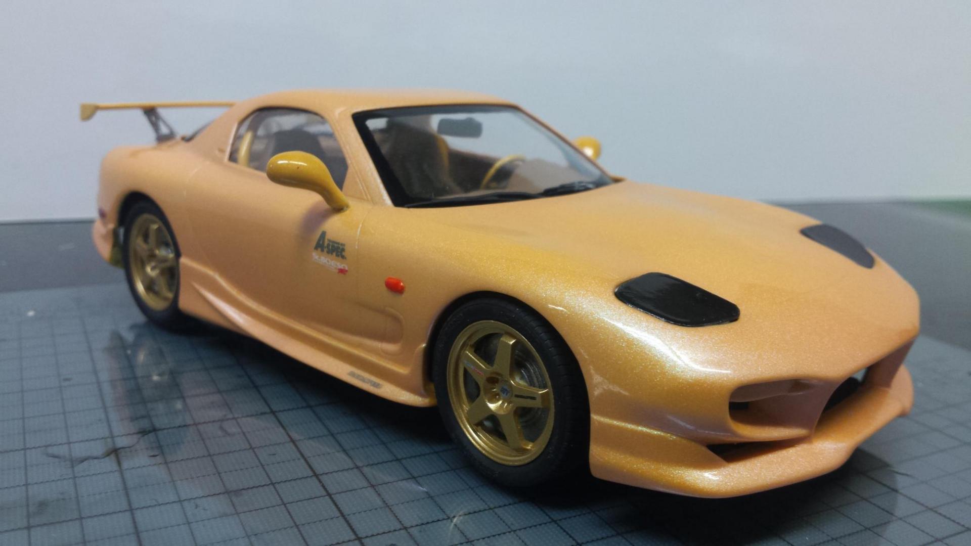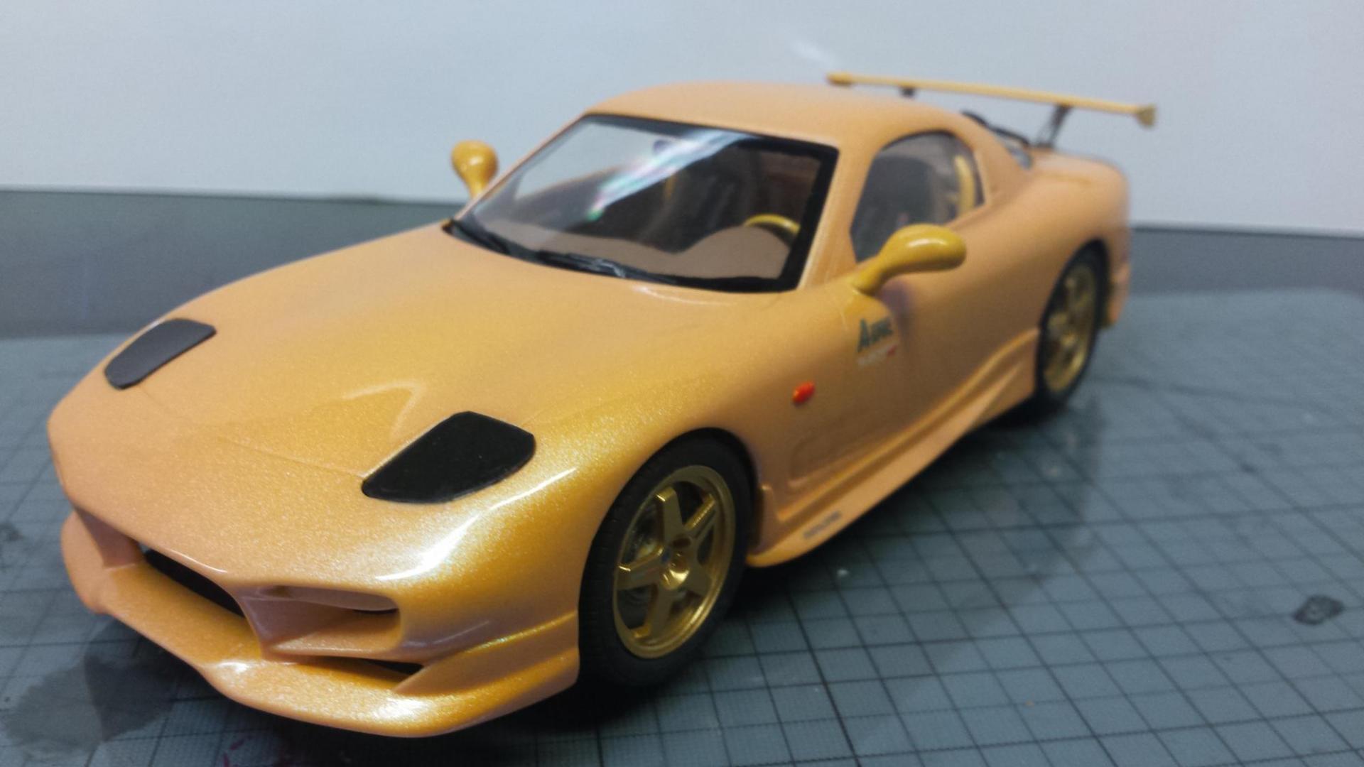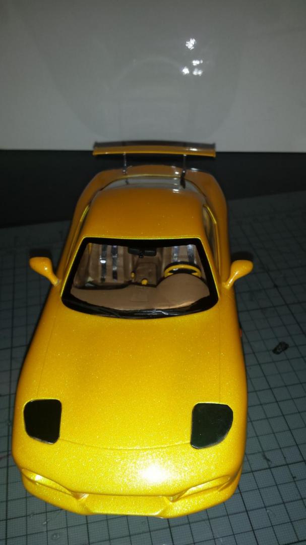 Thanks for the comments. I didn't choose this color. My buddy had painted it. He used HOK paints, . The pearl effect in it is amazing! The pearl causes the paint to change from green to pink along with the yellow. There are better pics of the color change in the WIP thread here: http://www.modelcarsmag.com/forums/topic/108281-96-rx-7/ Later-