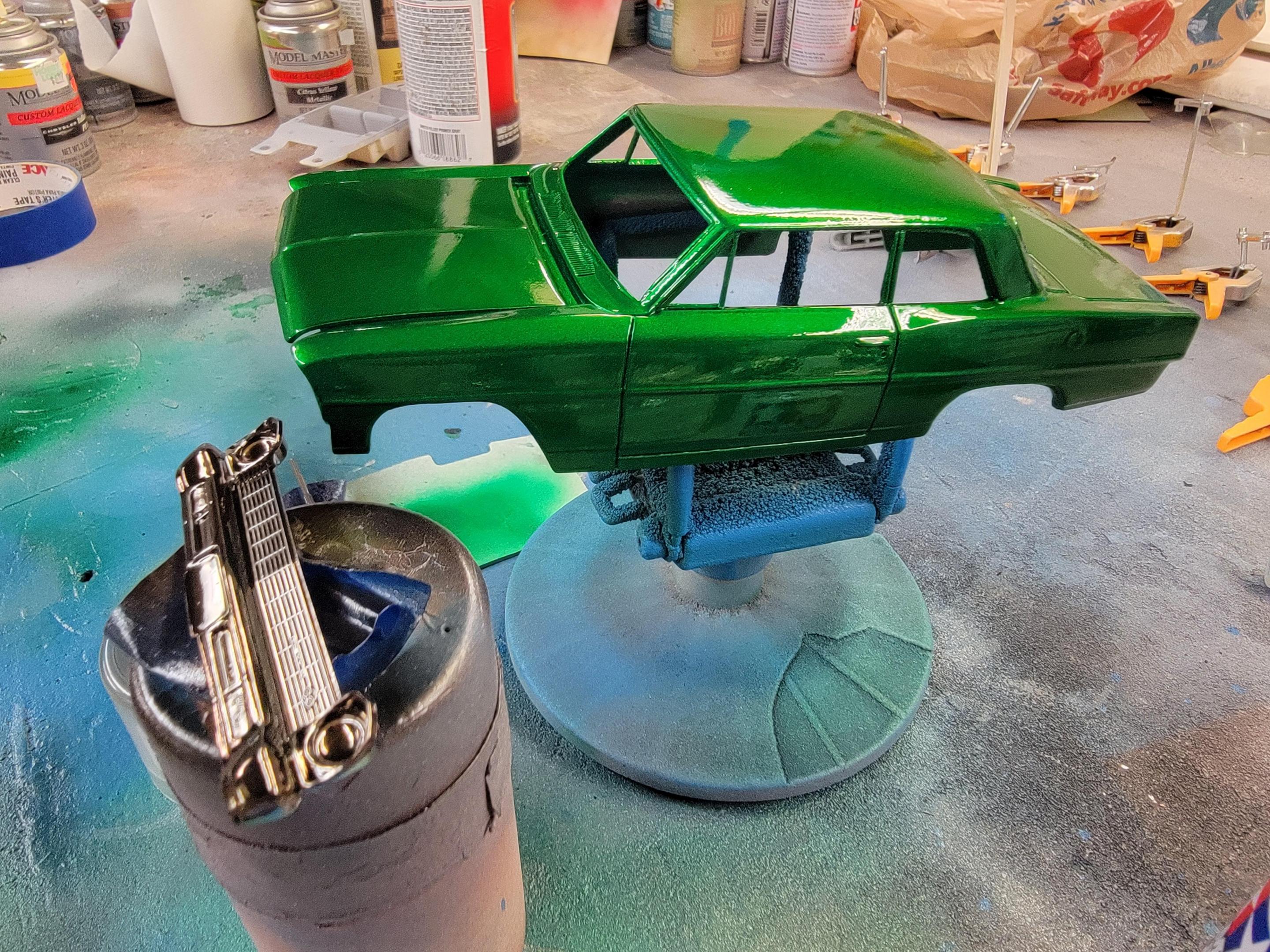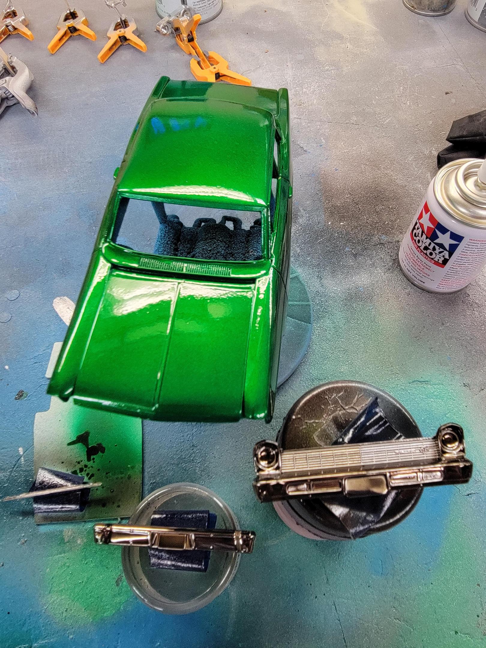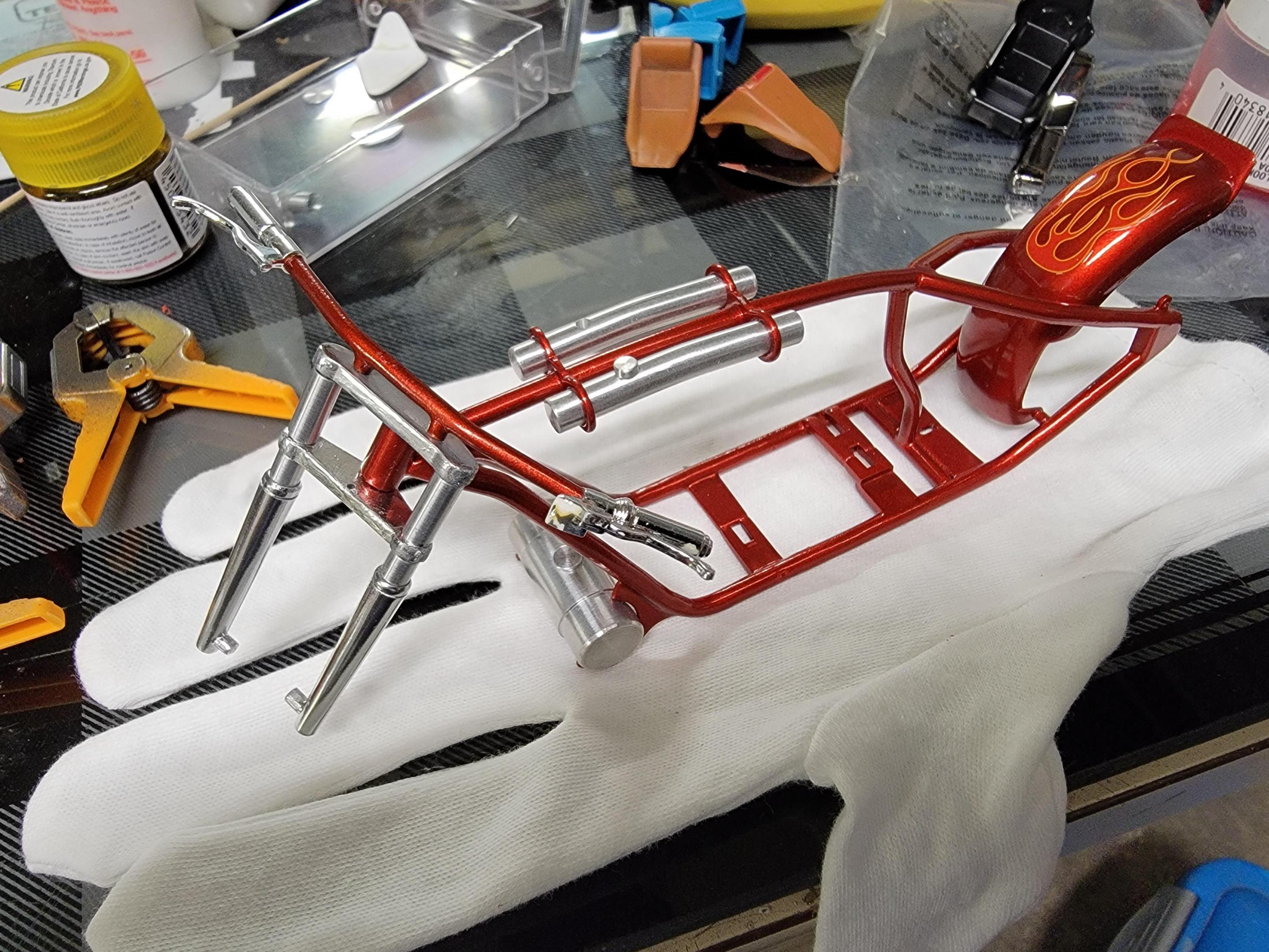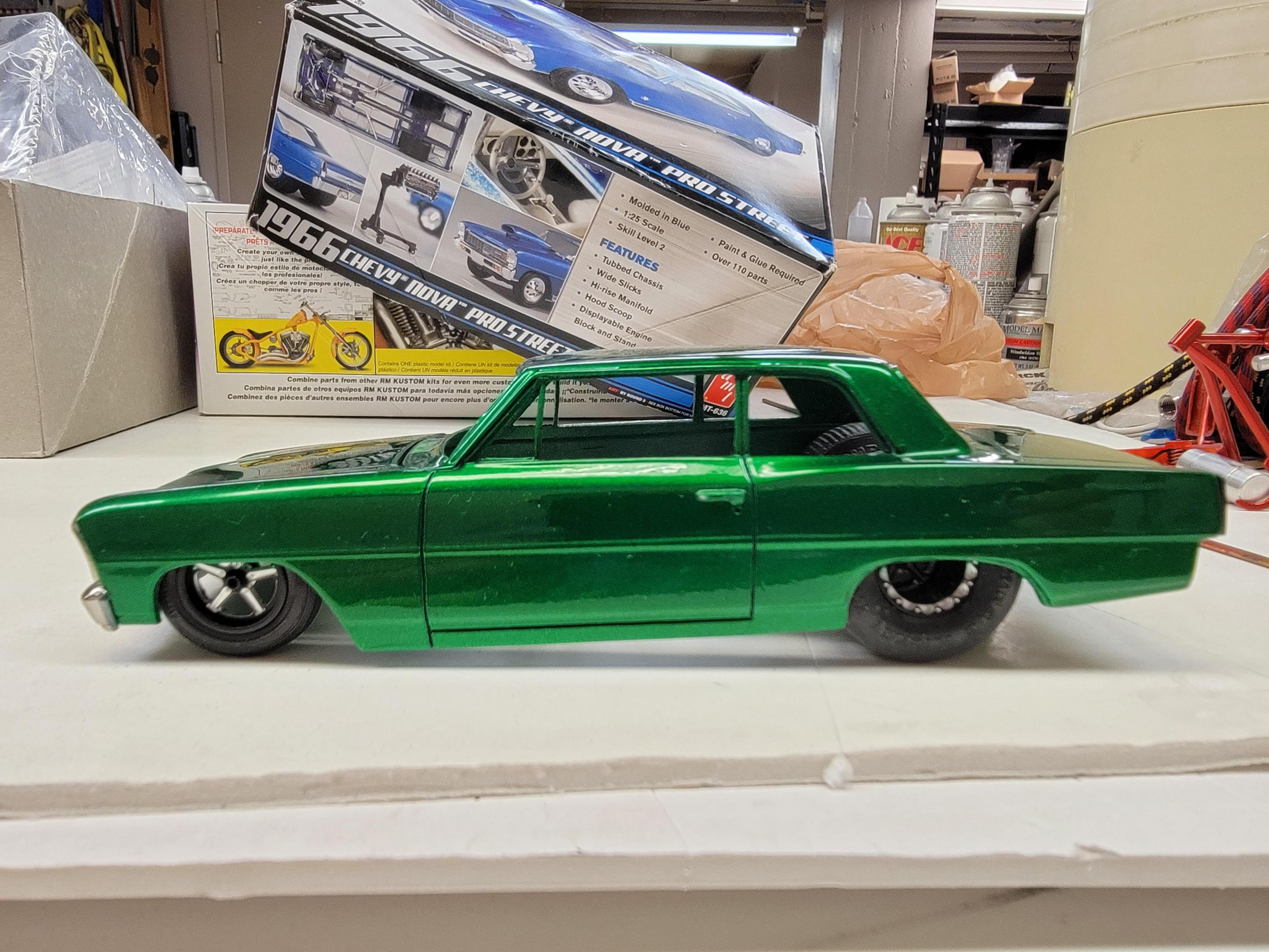 That fogging on the paint is looking great Tom! I spent some.time.today doing a bit (very small amount) of BMF on the 57 Chevy. I also airbrushed some Molotow chrome on some parts for my custom chopper. I sprayed a final coat of clear on my Nova Sedan and sprayed a coat of Tamiya Smoke on the chrome for it. Later-