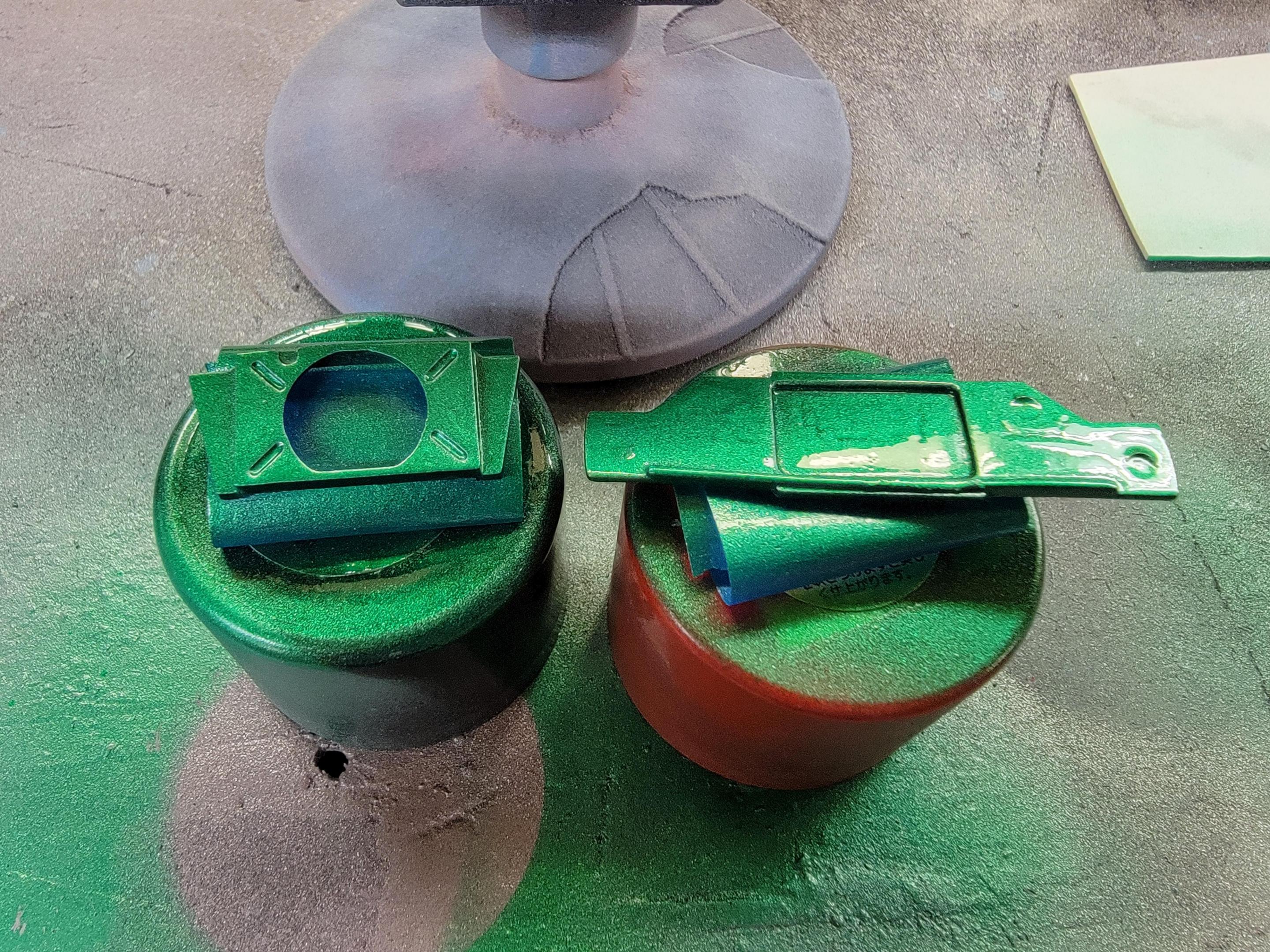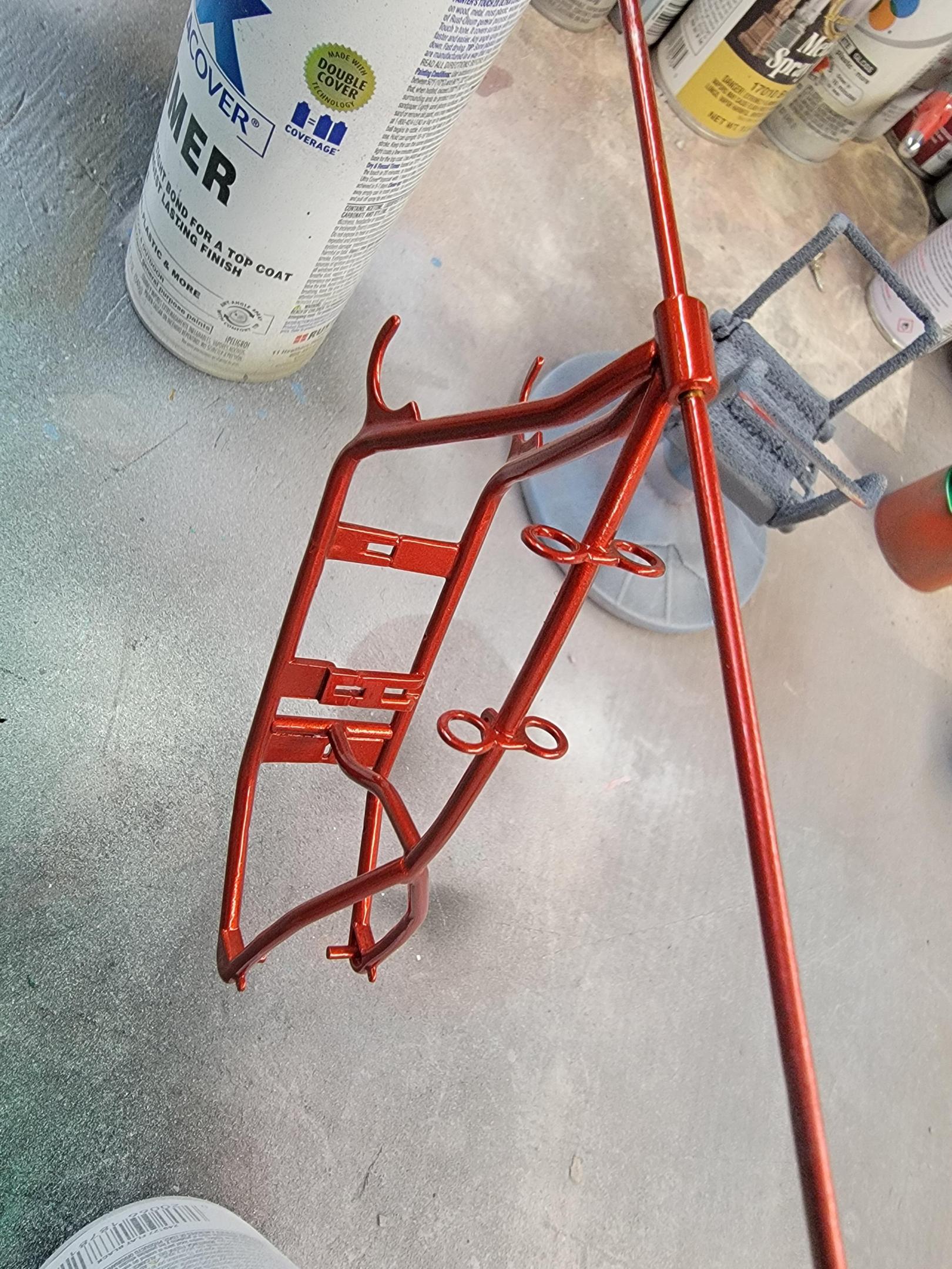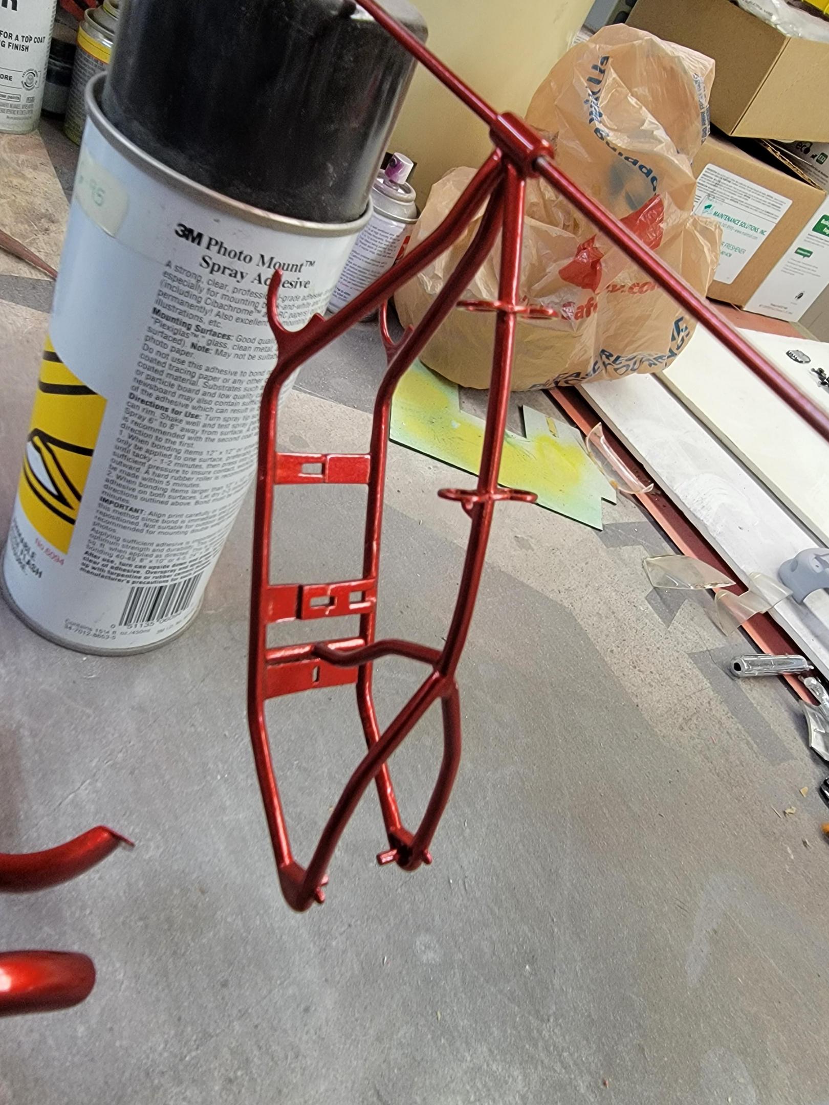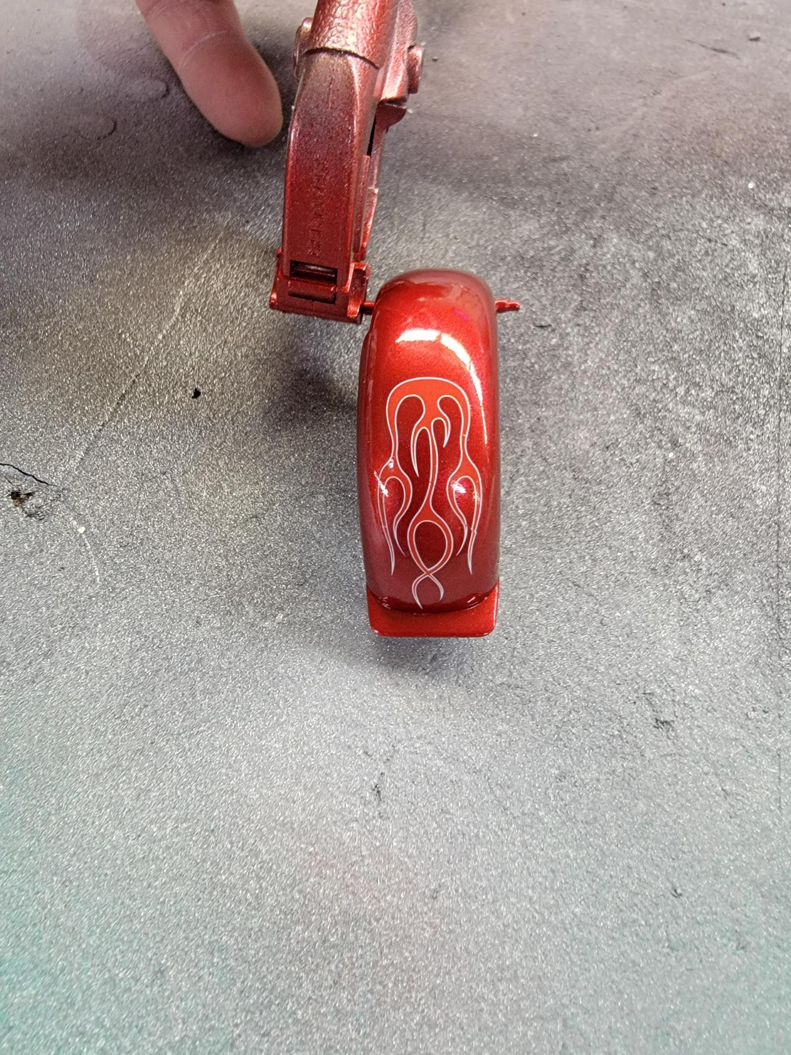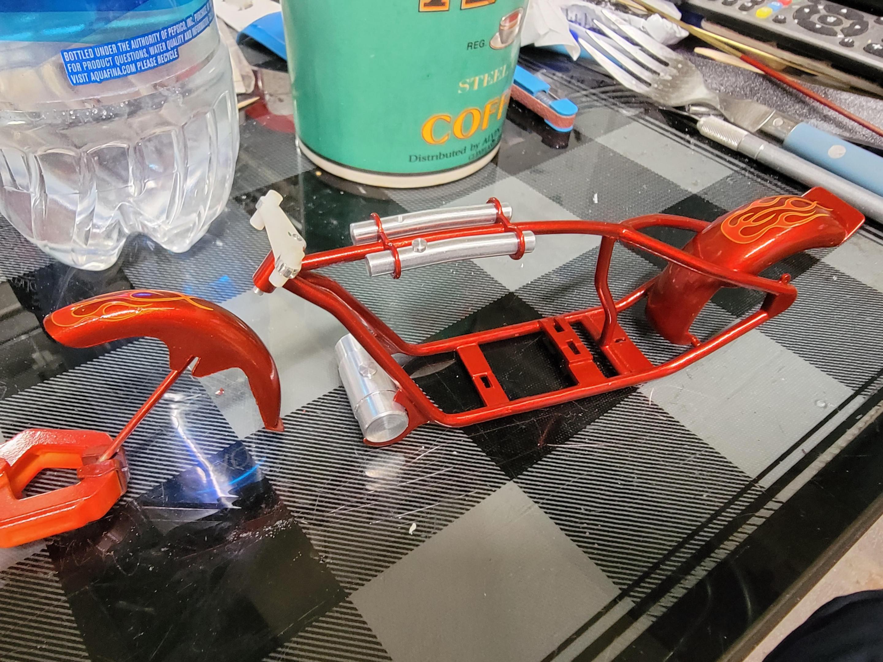 This morning I began the paint work. Started with a base coat of Model Master Plymouth Bright Platinum and covered that with Tamiya Mica Red. The plan is to shoot some clear over that, add decals and then a final coat of Tamiya clear Orange or clear Yellow. Later- -