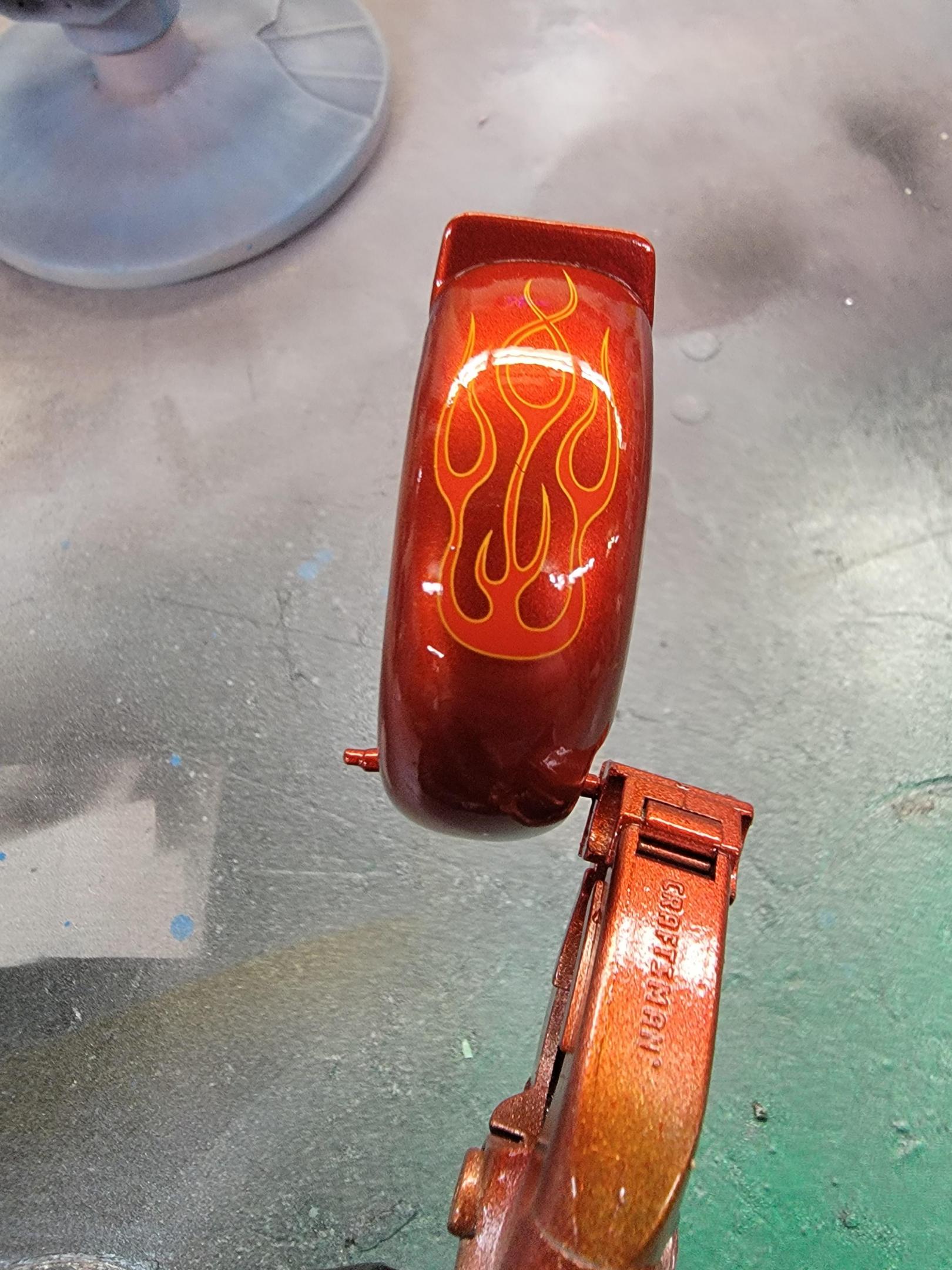 Yes I am. Thanks Jim! I think you'll like the paint job now. Got clear orange sprayed and then a couple wet coats of Wet Look Clear. Later- -