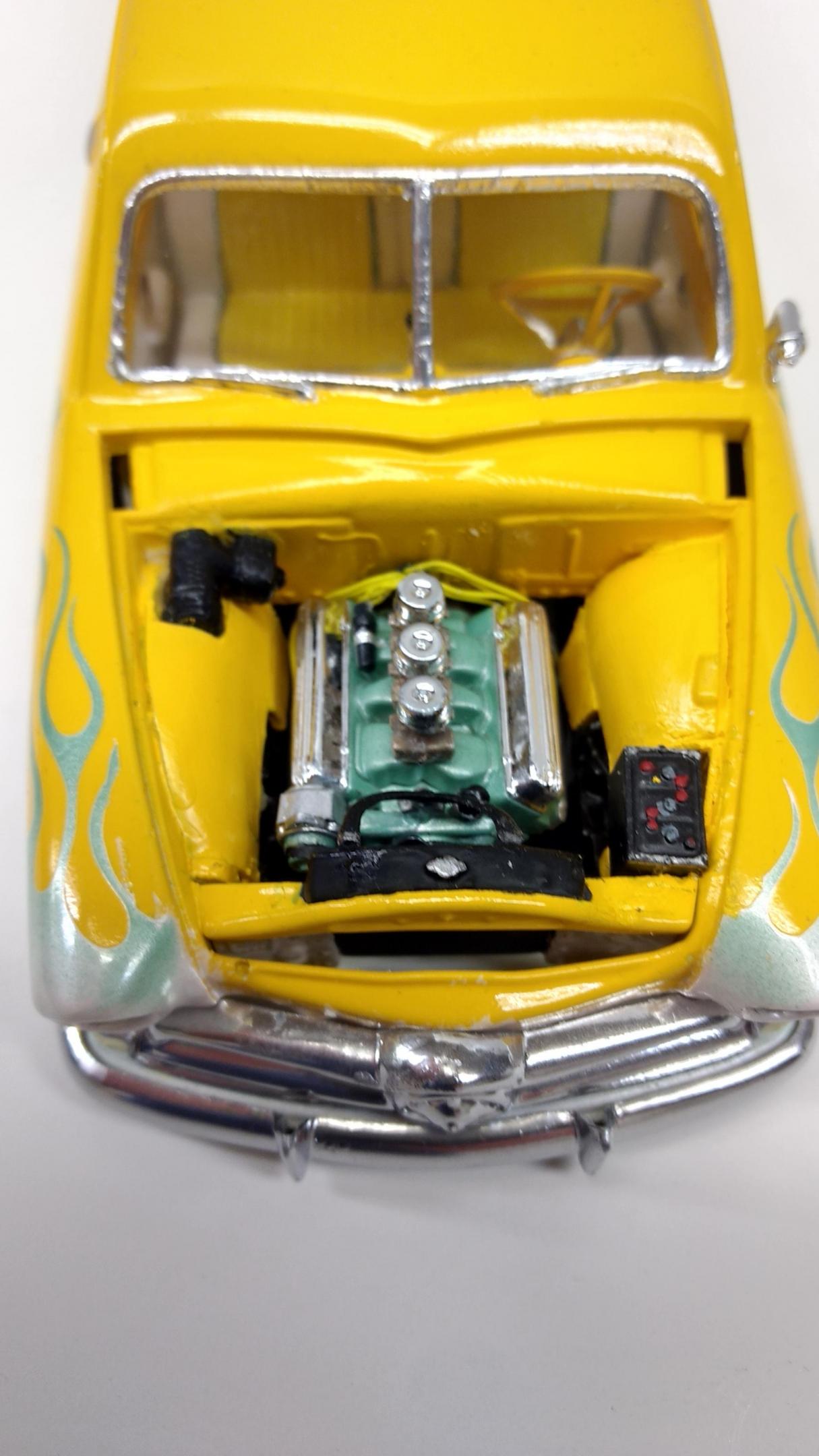 Thanks Sam. Thanks. No, I only used one coupe roof and a strip of styrene close to 1/2 inch wide. Thank you. The idea is that the 4 slots around the center bullet would be digital ancillary gauges. It does look natural to me. Thanks. The grill reminds me of a Chevy grill now. Later-