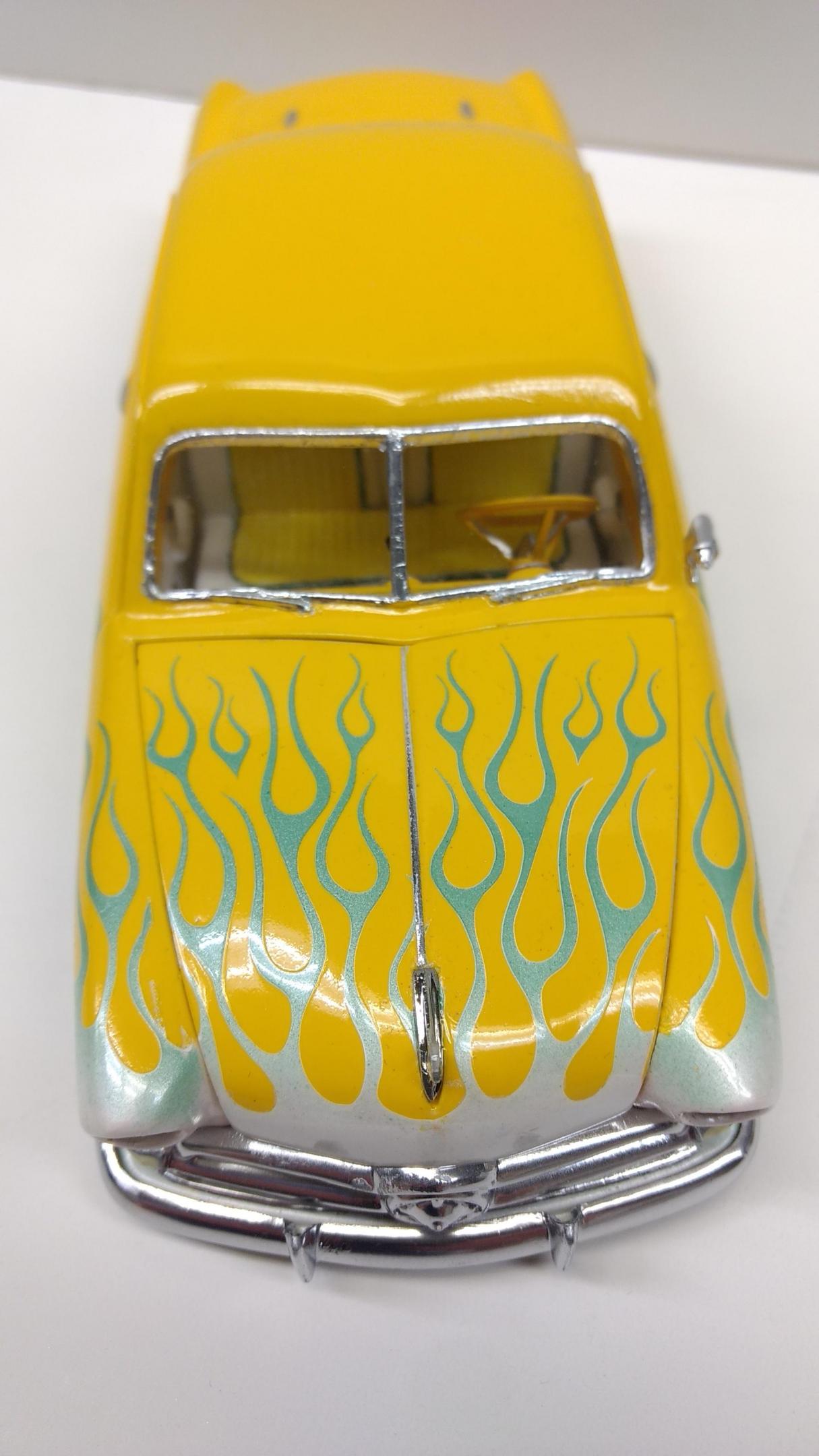 I just finished this one this morning (#12 for the year). This one took a few years to get across the line and I'm glad to finally have it completed. The body and interior was sectioned about 1/8 inch. 56 Ford headlight buckets molded in. Used Lazy Modeler flame stencils and three colors for the flames. Many other major and minor alterations. Thanks for looking. Later-