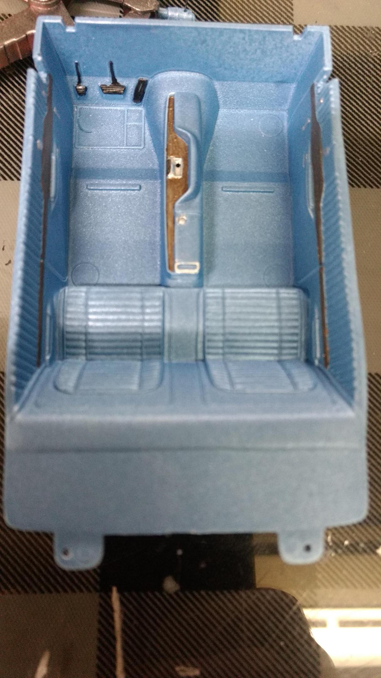 Got some more craft paint mixed and sprayed the interior this morning. Looks a little like the blue vinyl for B5 blue cars. Been cleaning the glue off of the grille. That didn't work as smoothly as I had anticipated but it will clean off fine. Should have my wheels waiting for me tonight when I get home. Of course, I have to work late tonight. Later-
