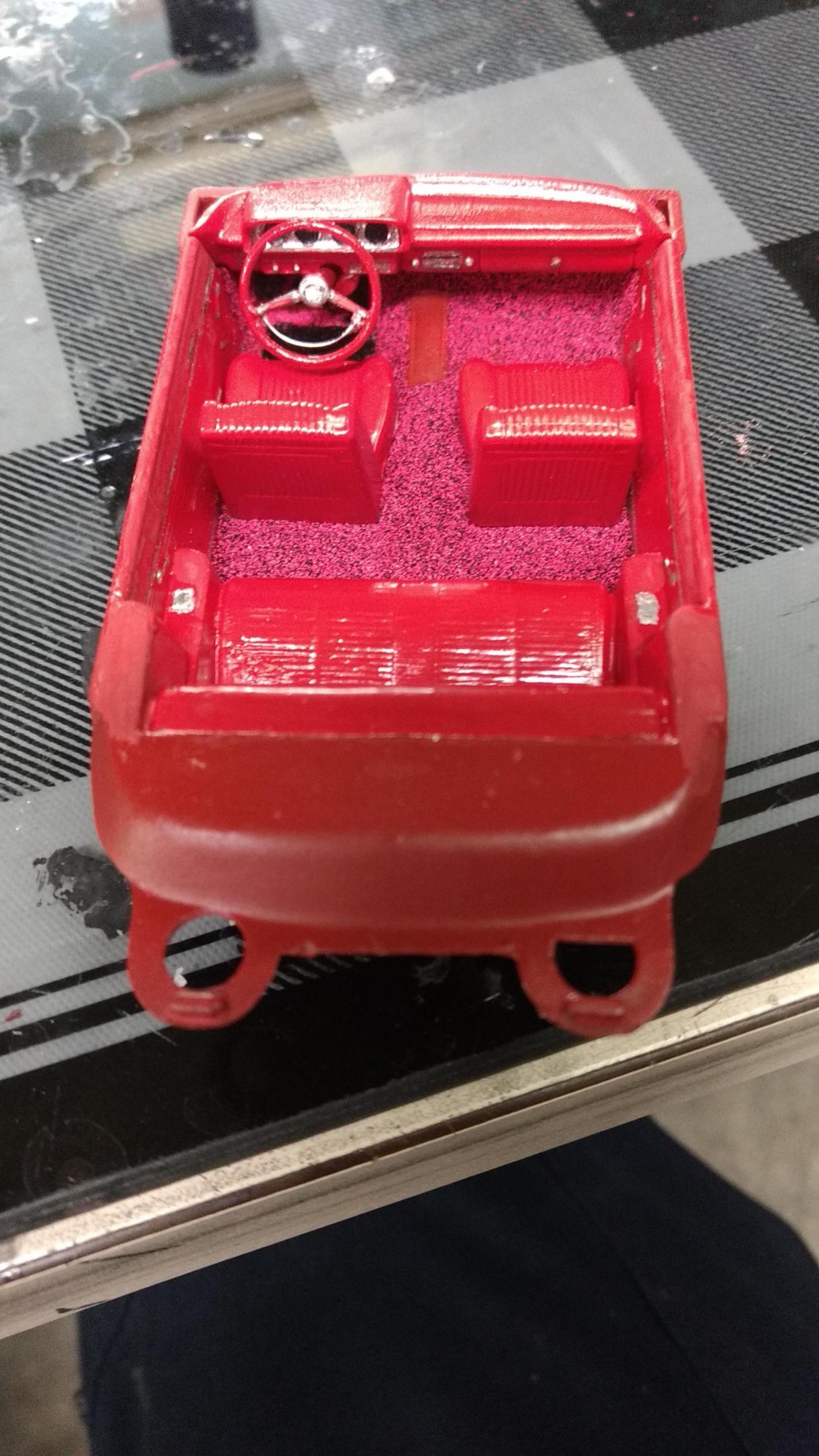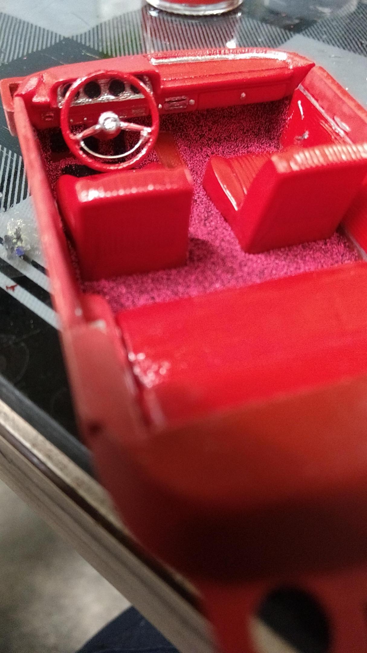 21. I started on the interior of my 63 Tempest today with airbrushing some Tamiya Flat red acrylic. Still need to hit it with a variety of glosses for some contrast. Later-