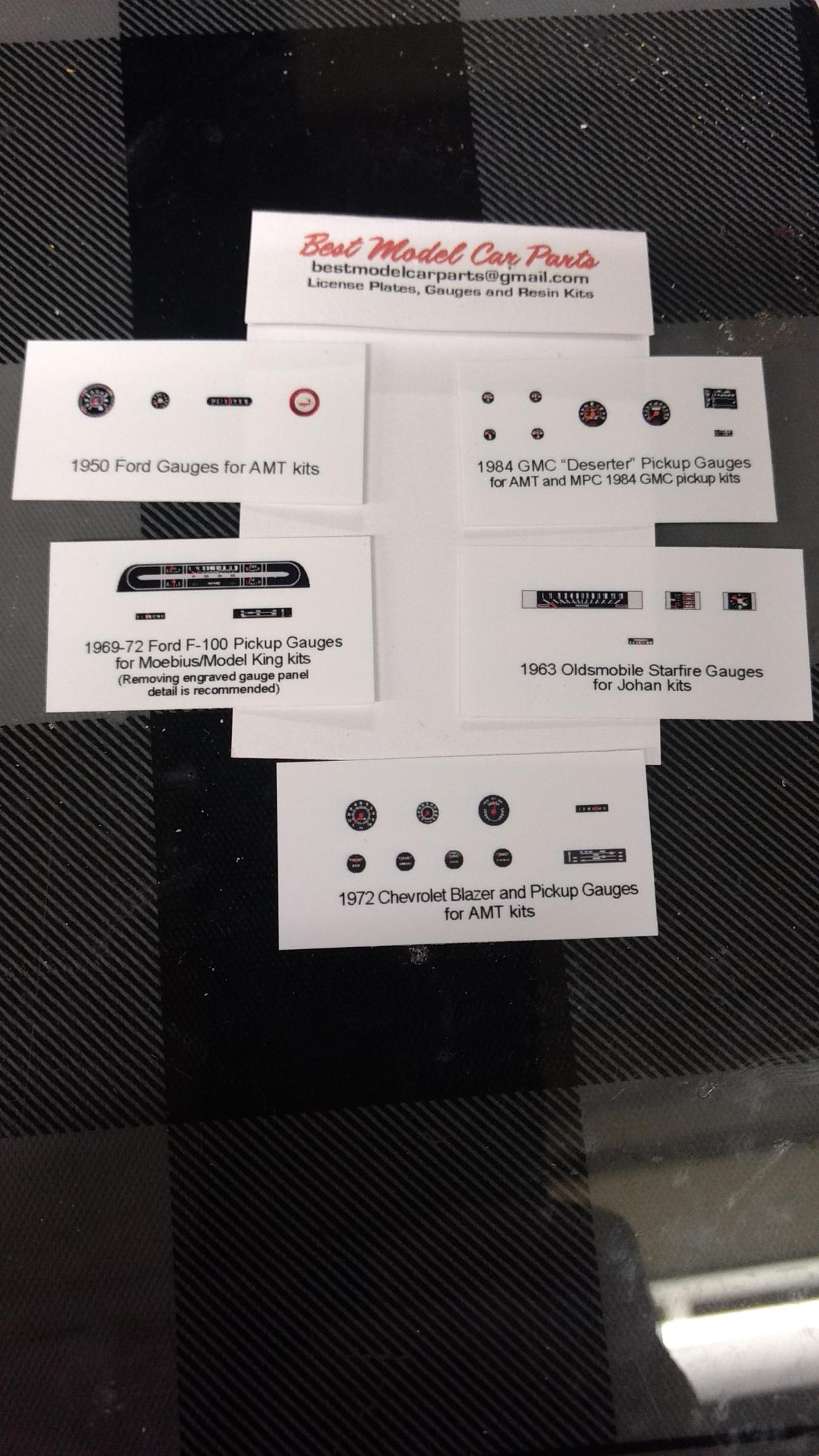 Got these in the mail yesterday from Best Model Car Parts on eBay for current and future projects. If you haven't ordered any of these I highly recommend them. He has a wide selection and they are cheap. They are not decals but have to be cut out and white glued in place. I've used them before and they add a lot of realism to the interior. Later-