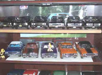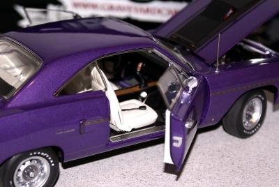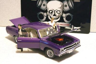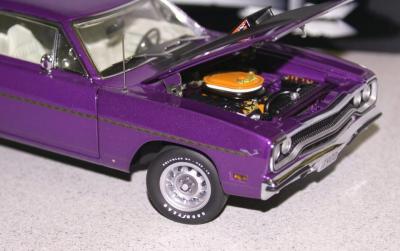 This is the rare In Violet Road Runner in 1/18 by Georgia Marketing Promotions, now called ACME. They lost the mold to China. In this photo, on the second shelf, are my other GMP Plymoouths. The top row are my Supercars Collectables Super Car limited editions. -