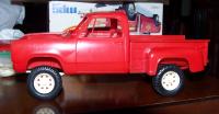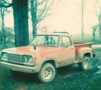 I'm building a replica of my '78 W150 I used to have. I started out with an MPC Lil Red Express kit and parts from BNL Resins. I want the express my gratitude to Ben of BNL for all the help he has given me. One of the major mistakes of the kit was the placement of the transfer case and crossmember. After looking at a prototype photo, I moved things around. Also, the kit has a big block mishmosh instead of the Mopar LA smallblock it should have. I used the motor from the AMT '71 Duster. I have everything in mockup right now, and I'm waiting for more detail parts. I just purchased a distributor from MAD. I'd also like to thank Marty & Al from the Mopars In Scale Forum for the parts they have helped me with. It's great not to see that transfer case hanging down like a bull from the PBR.