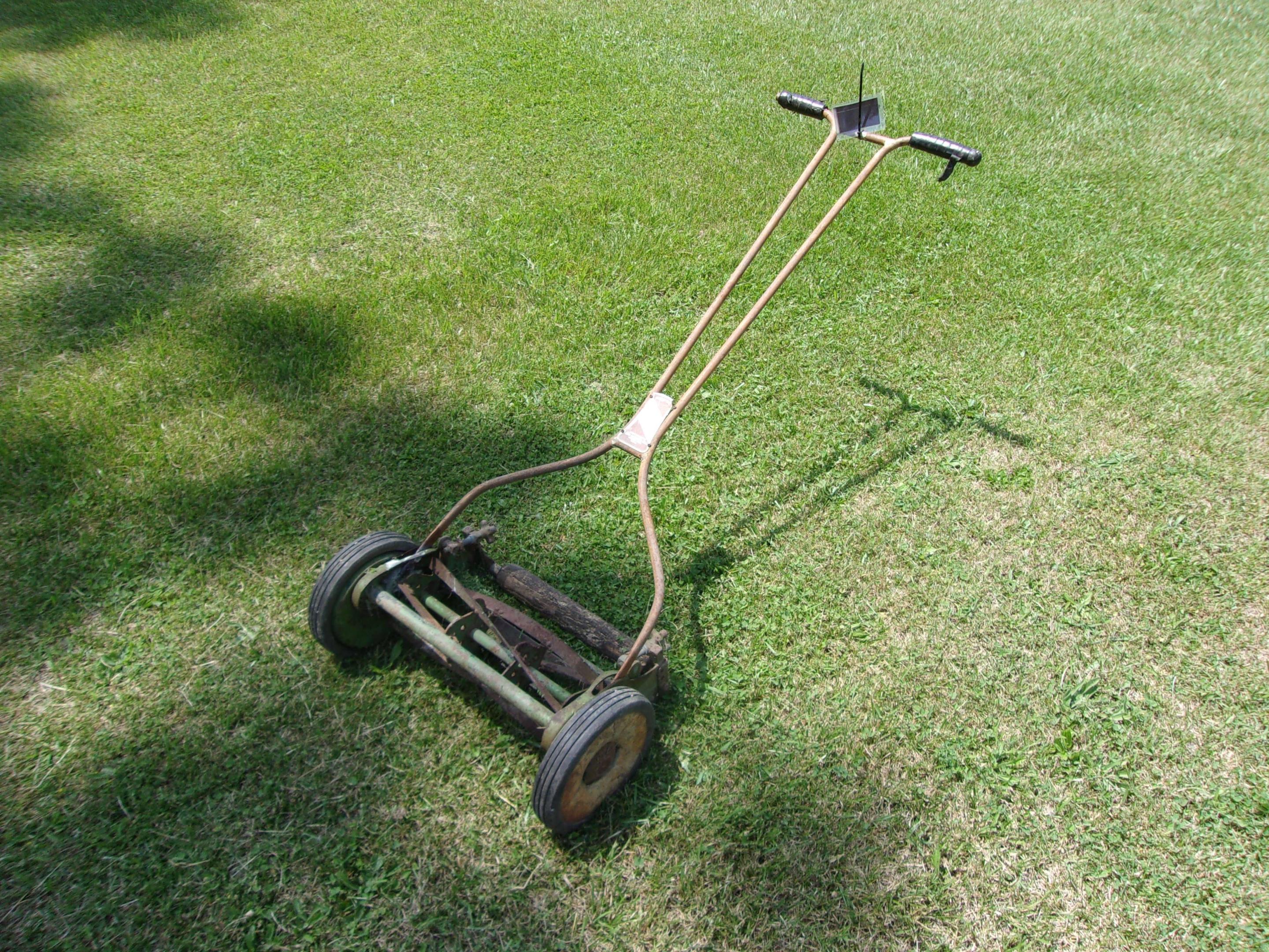 1. I'll be dragging this out on select weekends. 1946-ish Michigan Noiseless reel mower by REO. The name says noiseless but it's only about 80% accurate. ? Needs a roller (original is a bit rotten) but works well enough. No, I don't use it on the entire lawn. I have a rider for the yard and a Ferguson 30 with a 3 point mower for the "back 40". I've so far been too lazy to jump it so for now it's actually a mowing obstacle.