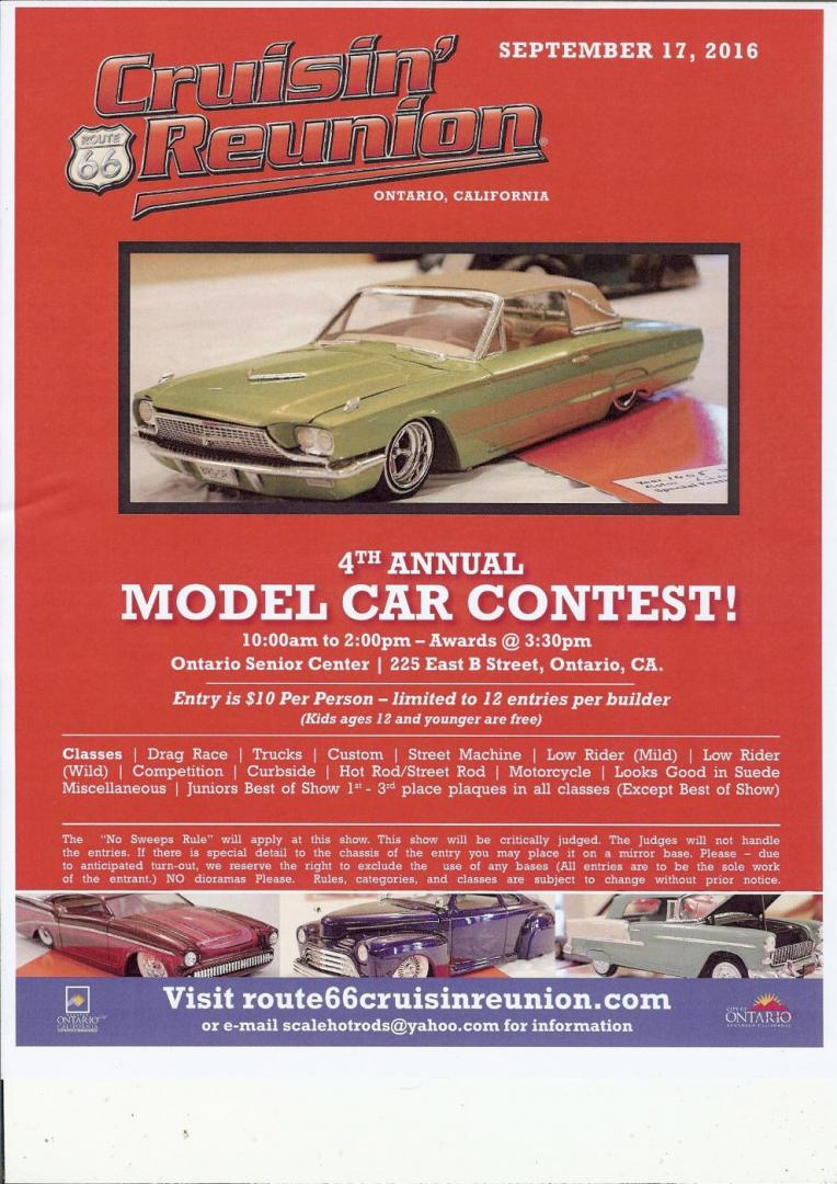 Bump Additional info - Entry for the model contest is free with paid admission to the show. We are scheduled to be in Building #7 Model Show Registration - Friday, 12:00 Noon to 8:00 pm - Saturday, 10:00 am to 8:00 pm - Sunday, 10:00 am to 12:00 noon (all entries must be registered and on the tables by 12:00 noon) - Judging begins Sunday at 12:00 noon, awards are scheduled for 3:00 pm. Bring your entries in and register on Friday or Saturday and a return pass for the show will be issued to the builder for the awards presentation on Sunday. the return pass is for the show admission only and does not cover parking. Due to space limitations there is a limit of 10 entries per person. Please - No dioramas, No Large Scale entries, and No large display bases. All entries must be the sole work of the entrant. Classes - Hot Rod/Street Rod, Drag Race, Drag Race - (door slammers), Custom, Street Machine, Low Rider - Mild, Low Rider - Wild, Competition (Non-Drag Race),Curbside, Long Roofs, Pick-up Trucks, Import/Tuner, Juniors, and Best Of Show. Classes are subject to change without notice.
