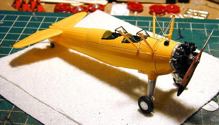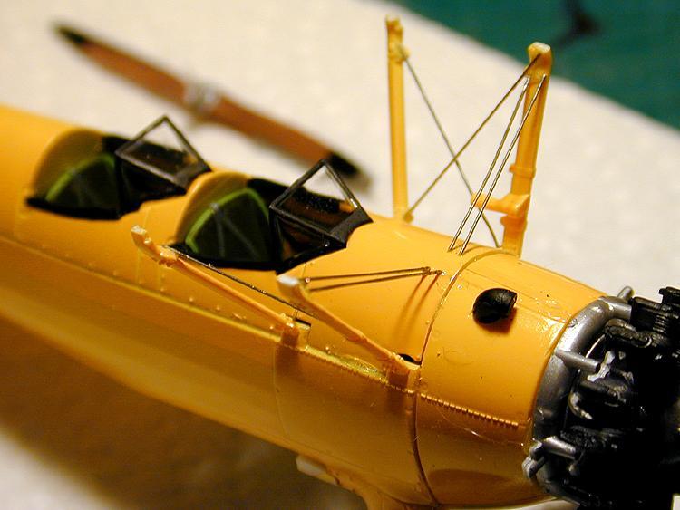 I saw this kit in Hobby Lobby last week and couldn't resist it. That marvelous wooden look propeller is done with the kit decals and a little touch up with paint. Those wire braces are not included in the kit and I wasn't sure how hard it would be to add them but they add so much to the model that they are worth the effort. Turns out these weren't that hard to do but the ones for the wings will be much longer.