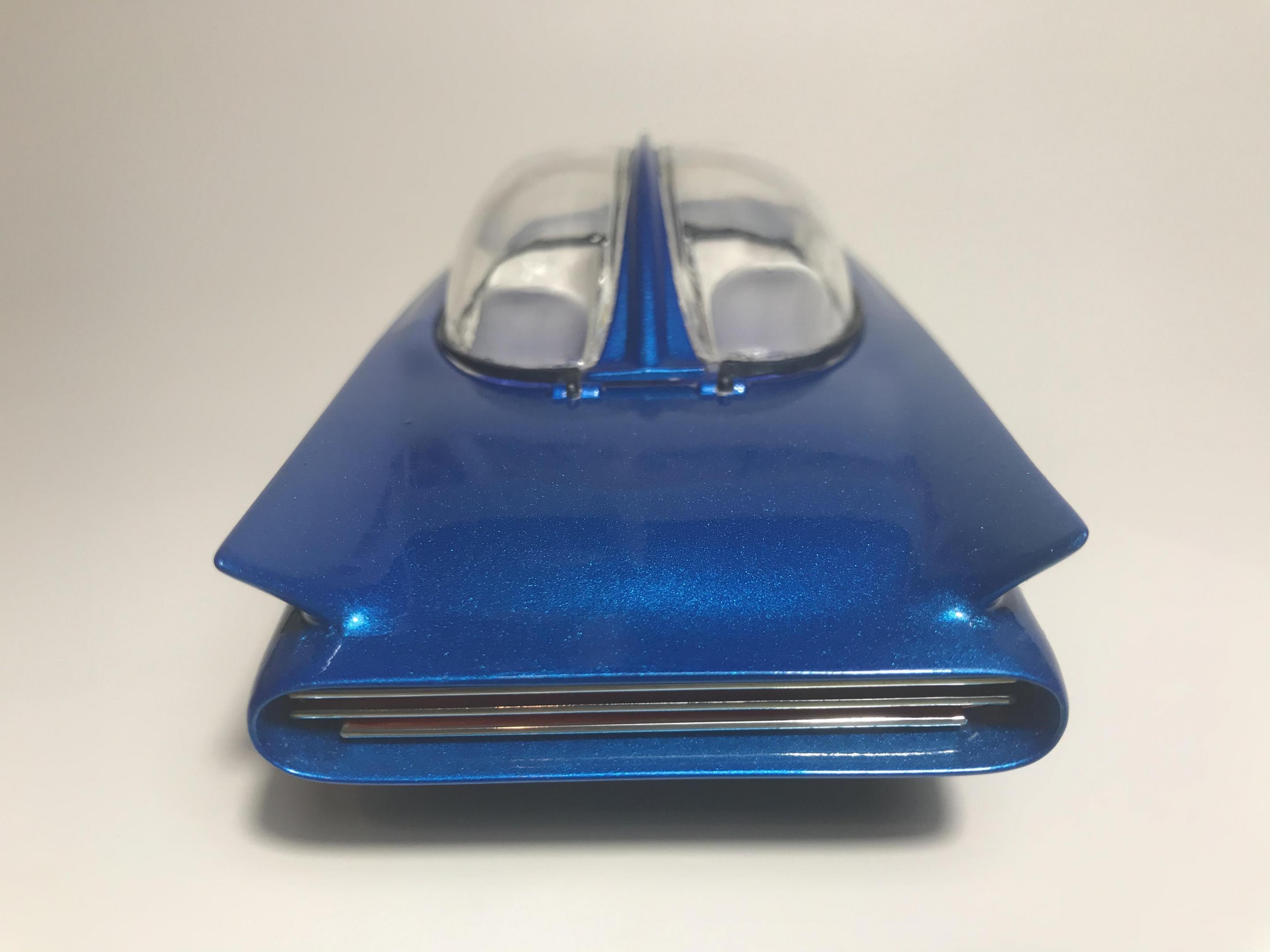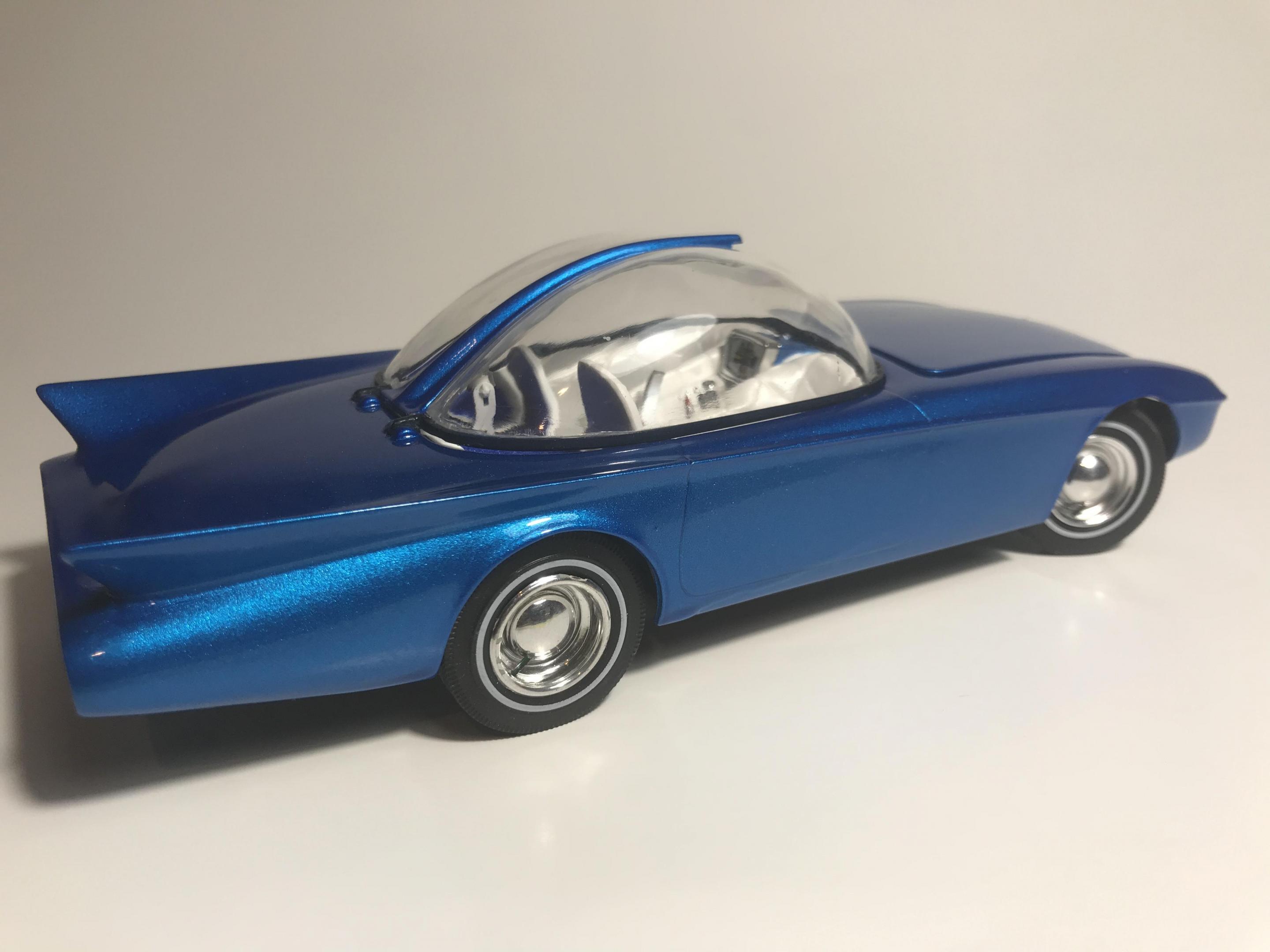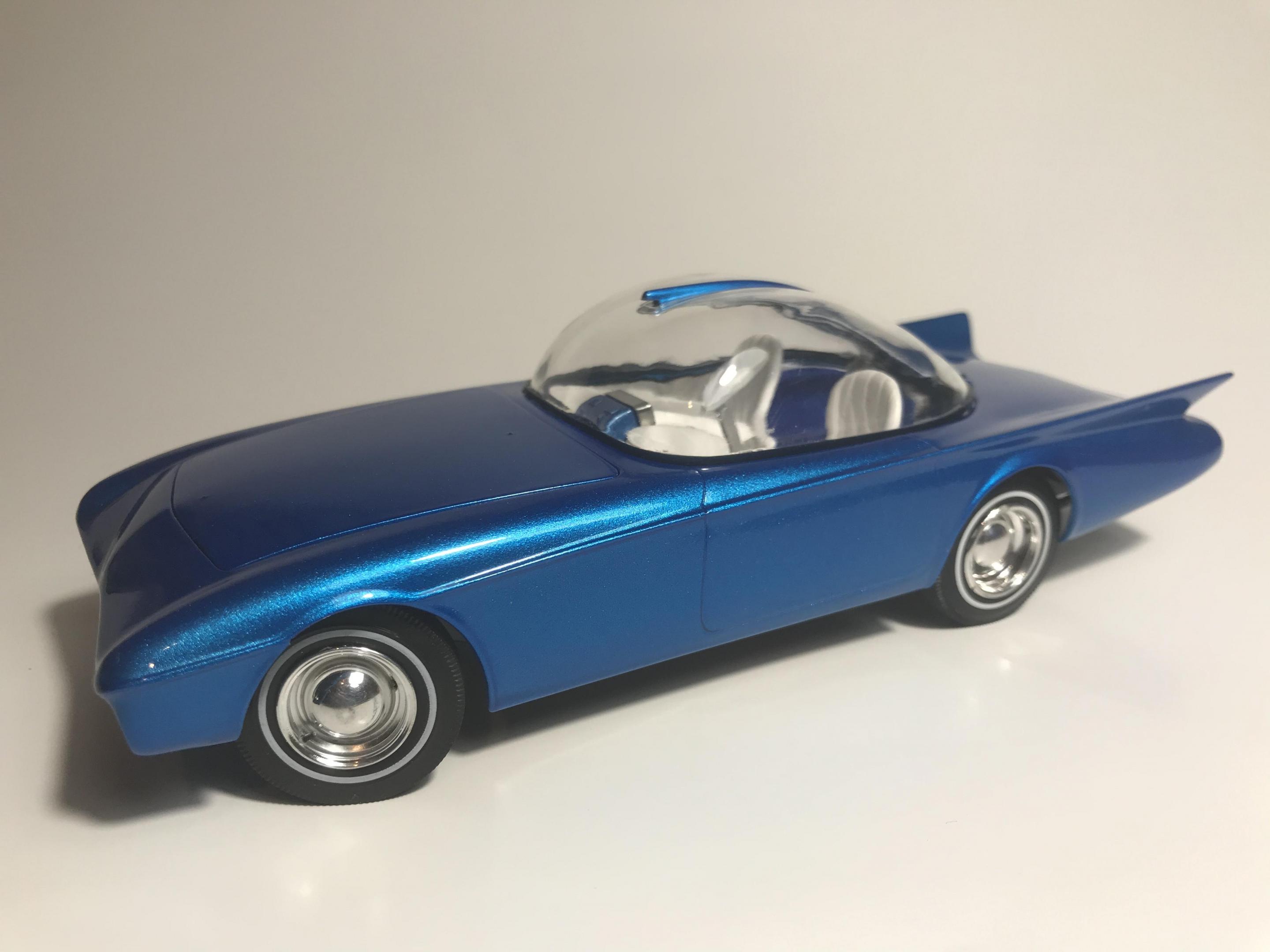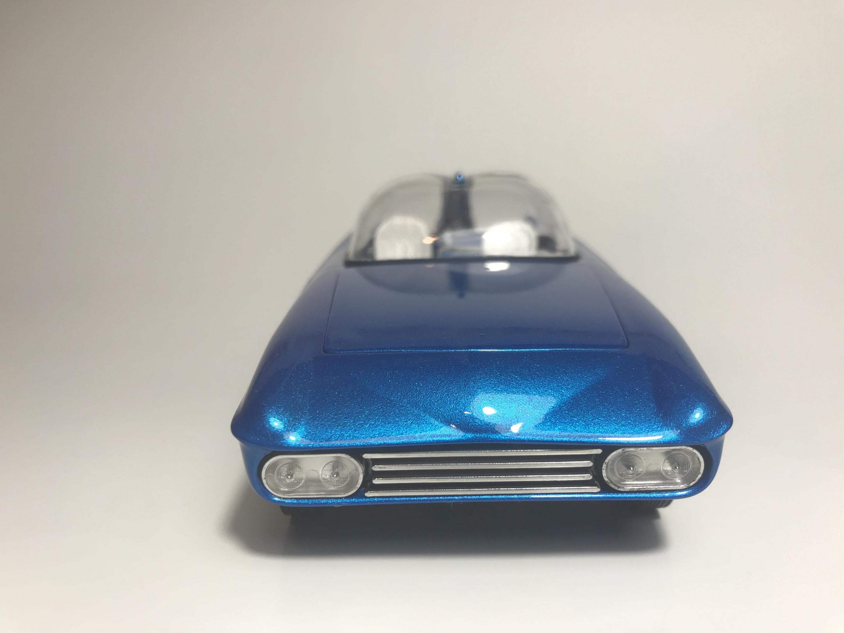 I just built the lil coffin so I wanted my next build to be in the same starbird custom shop family so I chose the Predicta show car , I got this kit from a buddy out in California, a nice sealed 1990 issue kit , first time for me to ever build this kit as it is meant to be build, I’ve over the years use this kit many times for parts for other custom builds , built pretty much box stock except for wheels and tires , not sure when the real car lost its big white wall tires but I found pictures of it with the narrow white walls , chrome wheels with babymoons, I really like that look so that’s what I went with, after molding a few body parts I sprayed a mix of silver and candy blue as a base for the 6 coats of candy blue and 3 coats of clear, this kit came together very nicely which is probably why it was a big hit with 12 year old boys in 1964 ,there never seems to be a shortage of 1960’s built glue bombs on eBay, I did have a problem with the bubble top though which is why it will sit just like it does in the pics never ever to be opened with out a screwdriver!!! Lol , all in all cool kit , and glad to finally build a predicta to put in my display case , hope you like !!!