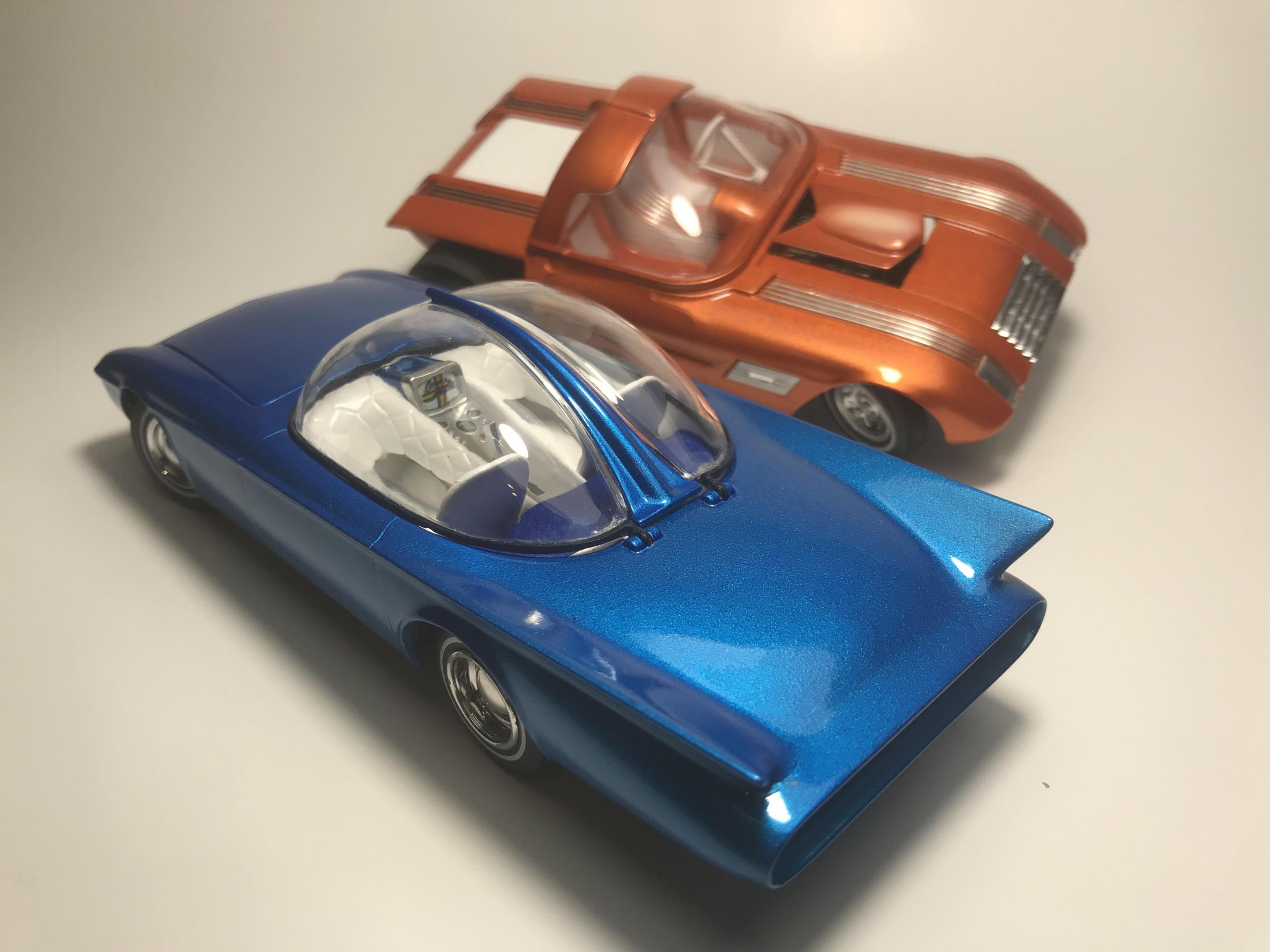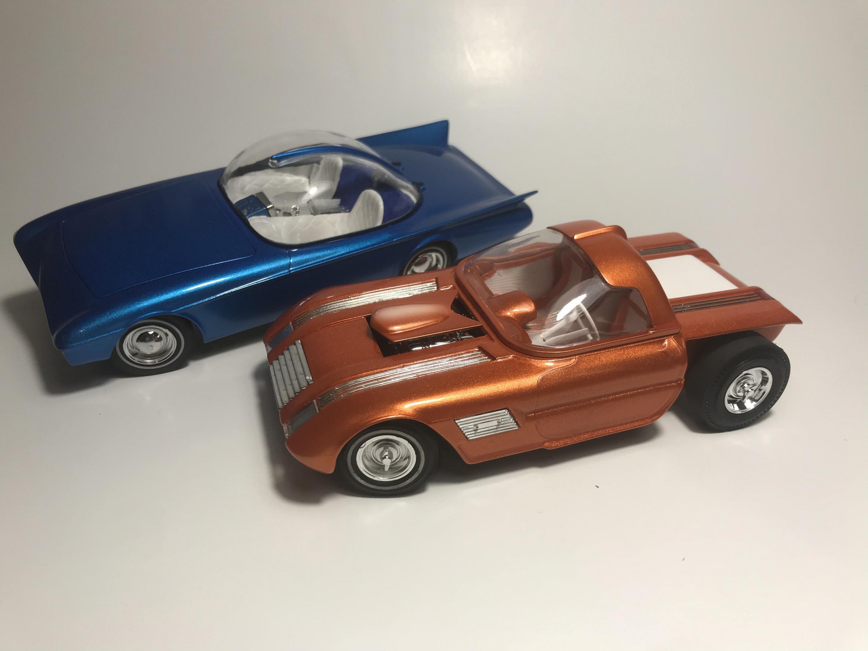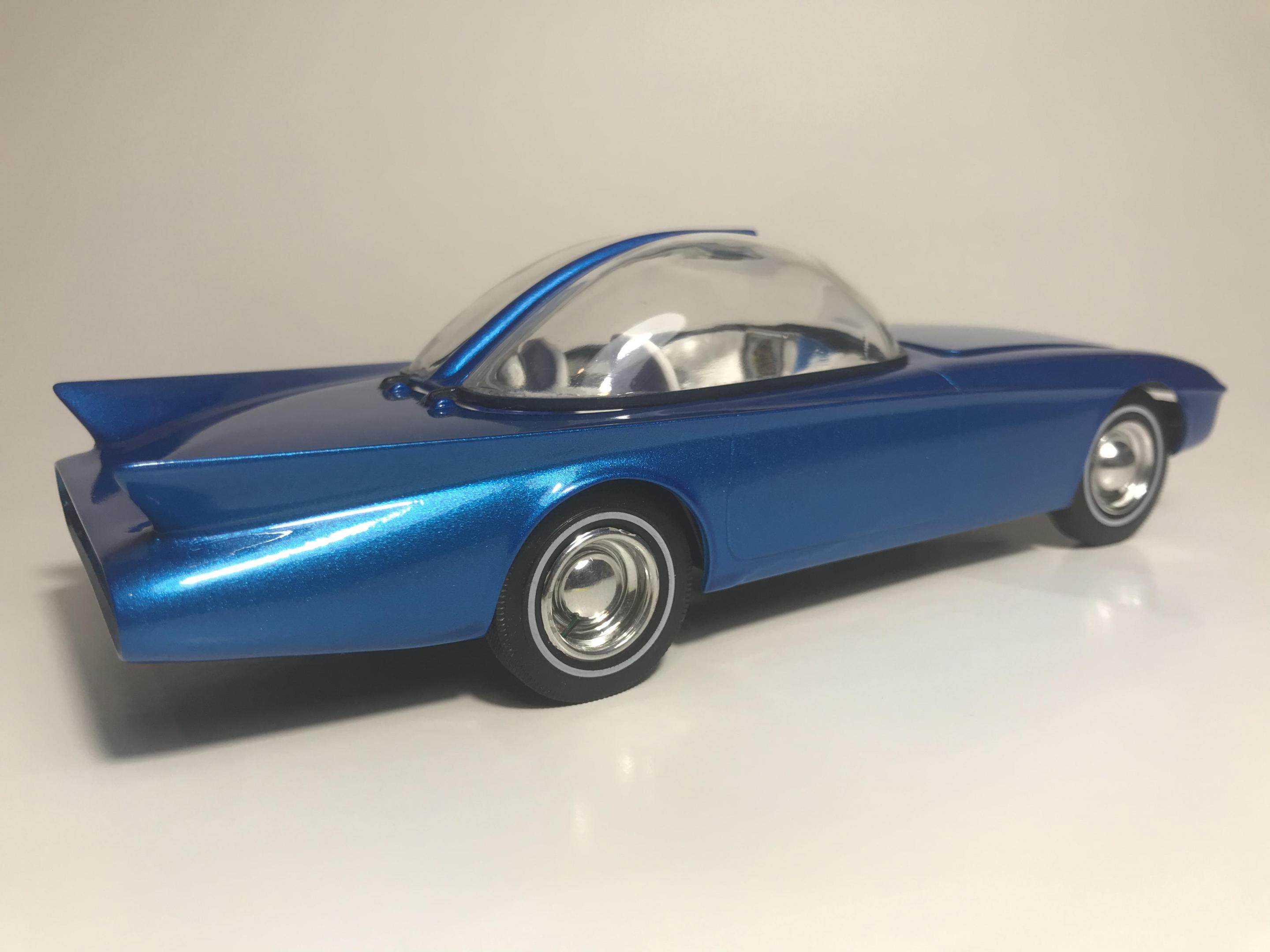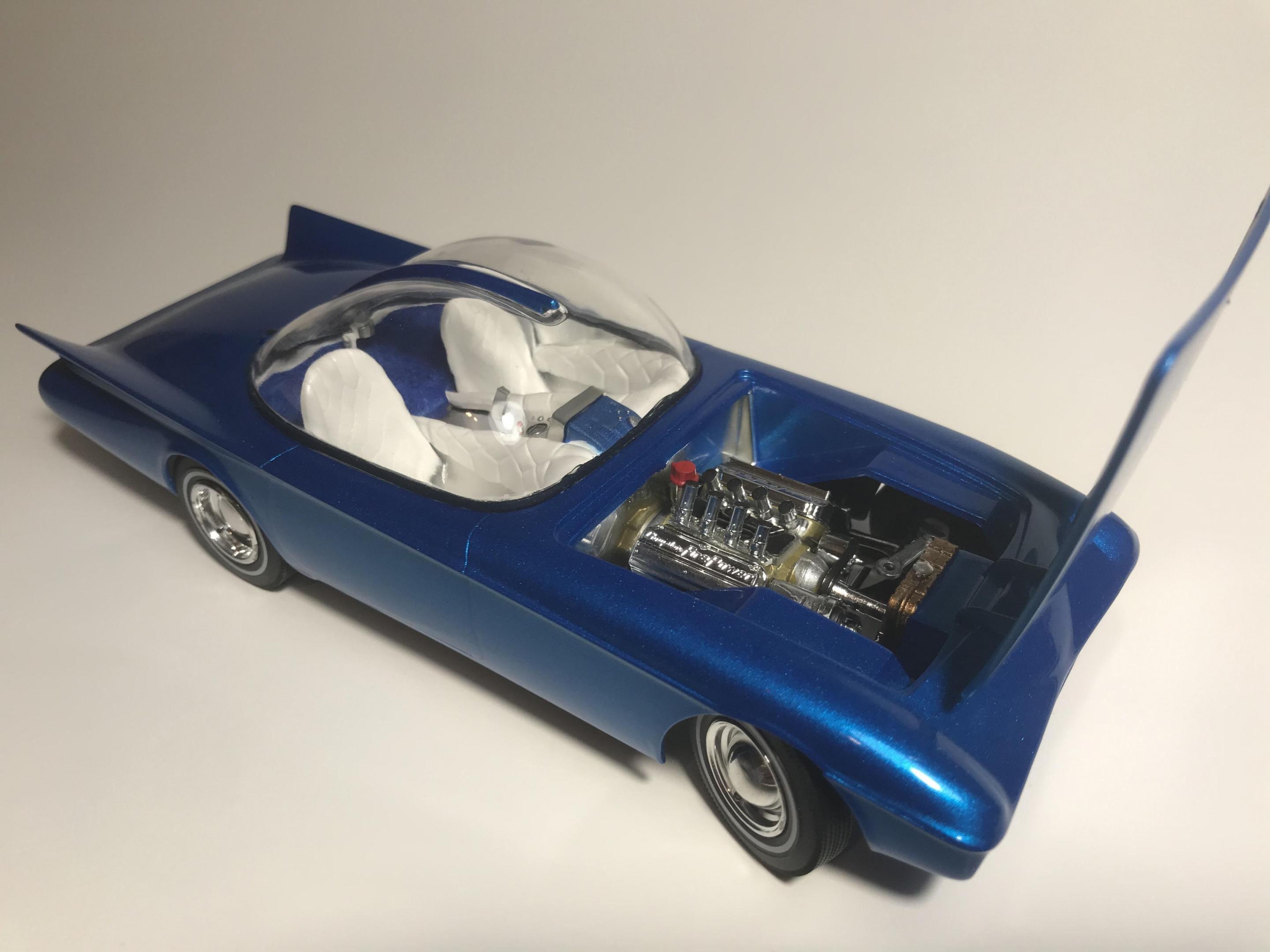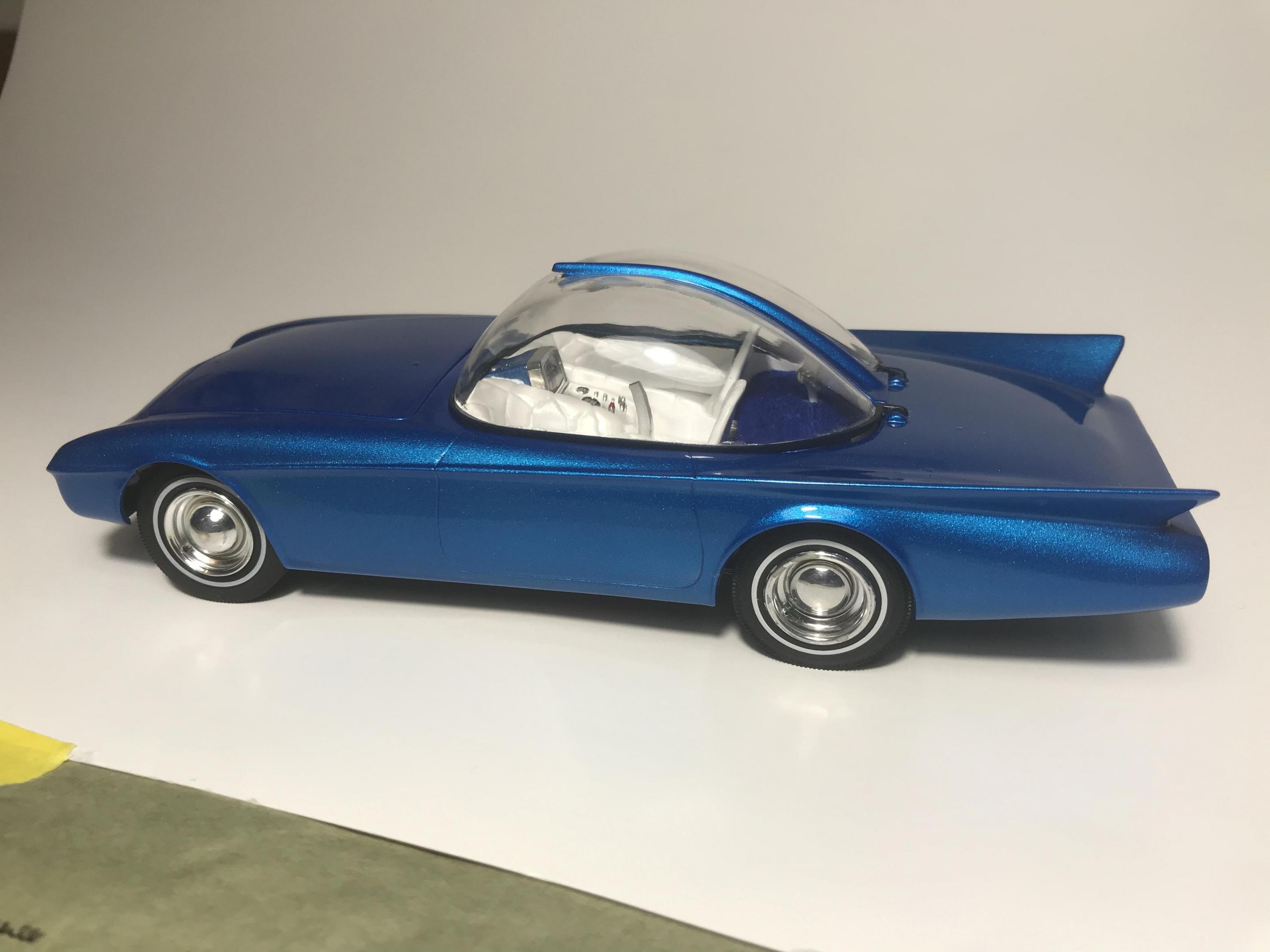 I just built the lil coffin so I wanted my next build to be in the same starbird custom shop family so I chose the Predicta show car , I got this kit from a buddy out in California, a nice sealed 1990 issue kit , first time for me to ever build this kit as it is meant to be build, I’ve over the years use this kit many times for parts for other custom builds , built pretty much box stock except for wheels and tires , not sure when the real car lost its big white wall tires but I found pictures of it with the narrow white walls , chrome wheels with babymoons, I really like that look so that’s what I went with, after molding a few body parts I sprayed a mix of silver and candy blue as a base for the 6 coats of candy blue and 3 coats of clear, this kit came together very nicely which is probably why it was a big hit with 12 year old boys in 1964 ,there never seems to be a shortage of 1960’s built glue bombs on eBay, I did have a problem with the bubble top though which is why it will sit just like it does in the pics never ever to be opened with out a screwdriver!!! Lol , all in all cool kit , and glad to finally build a predicta to put in my display case , hope you like !!!