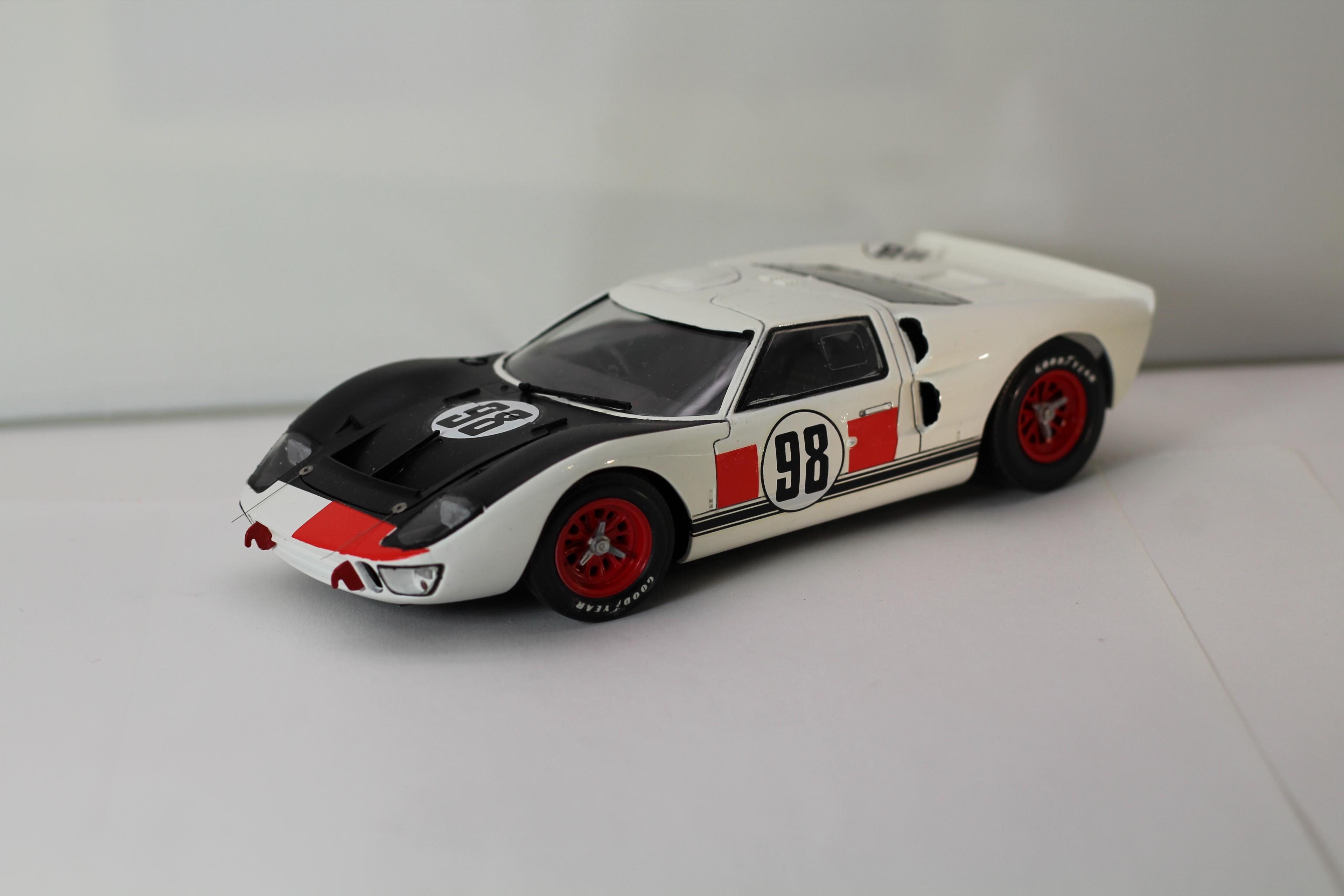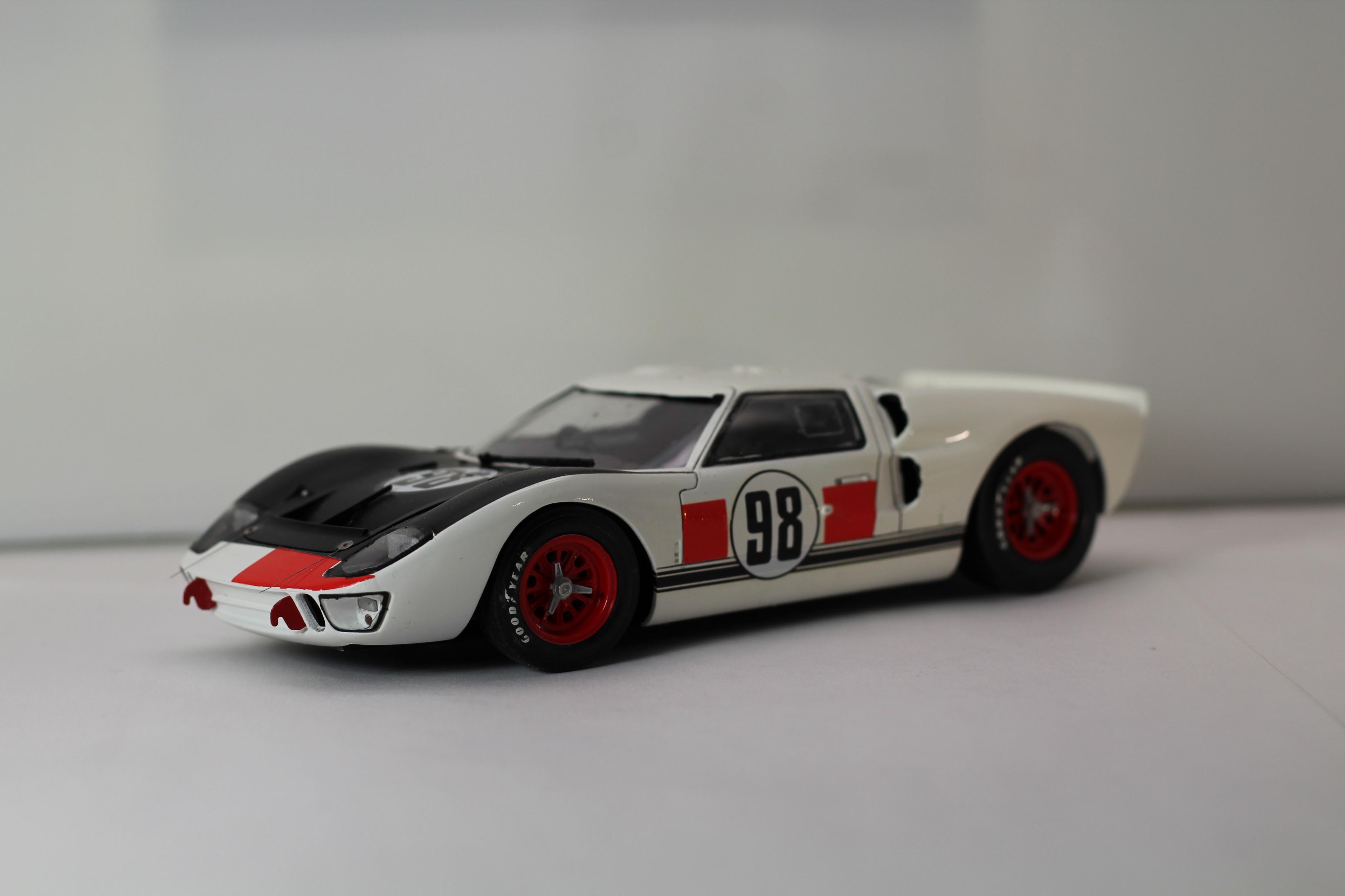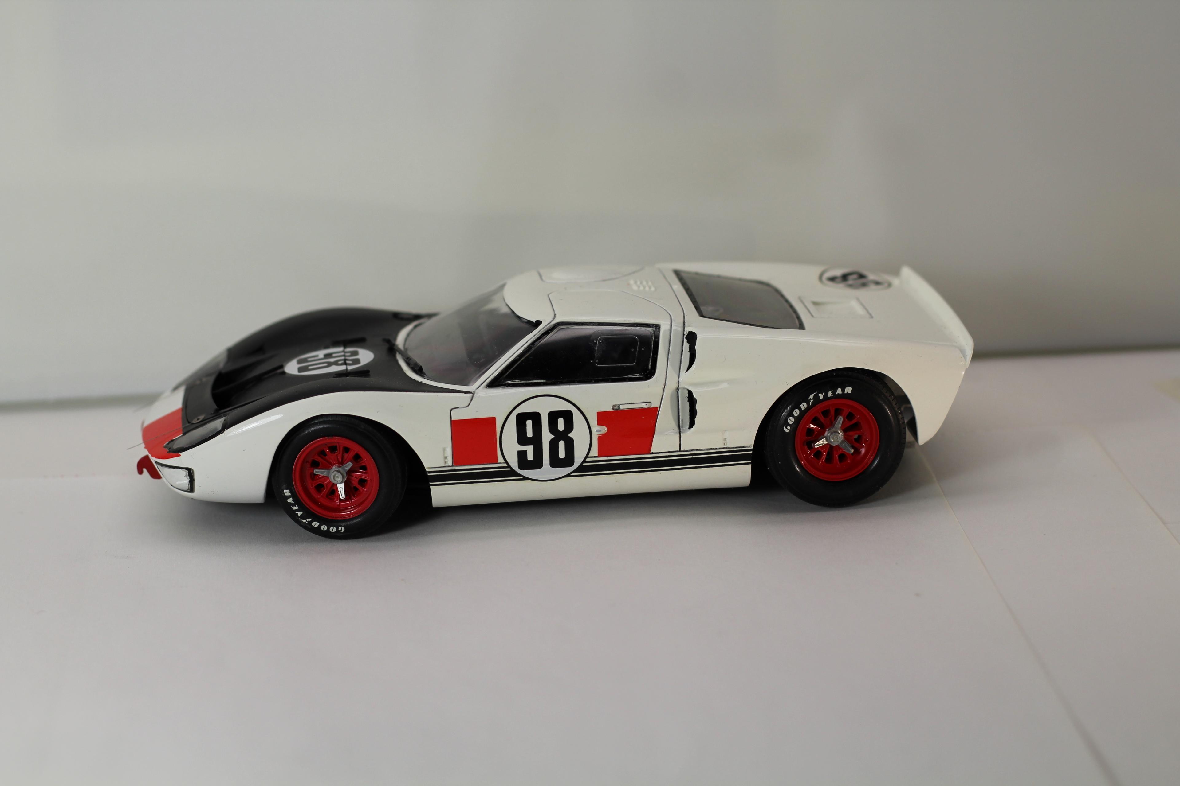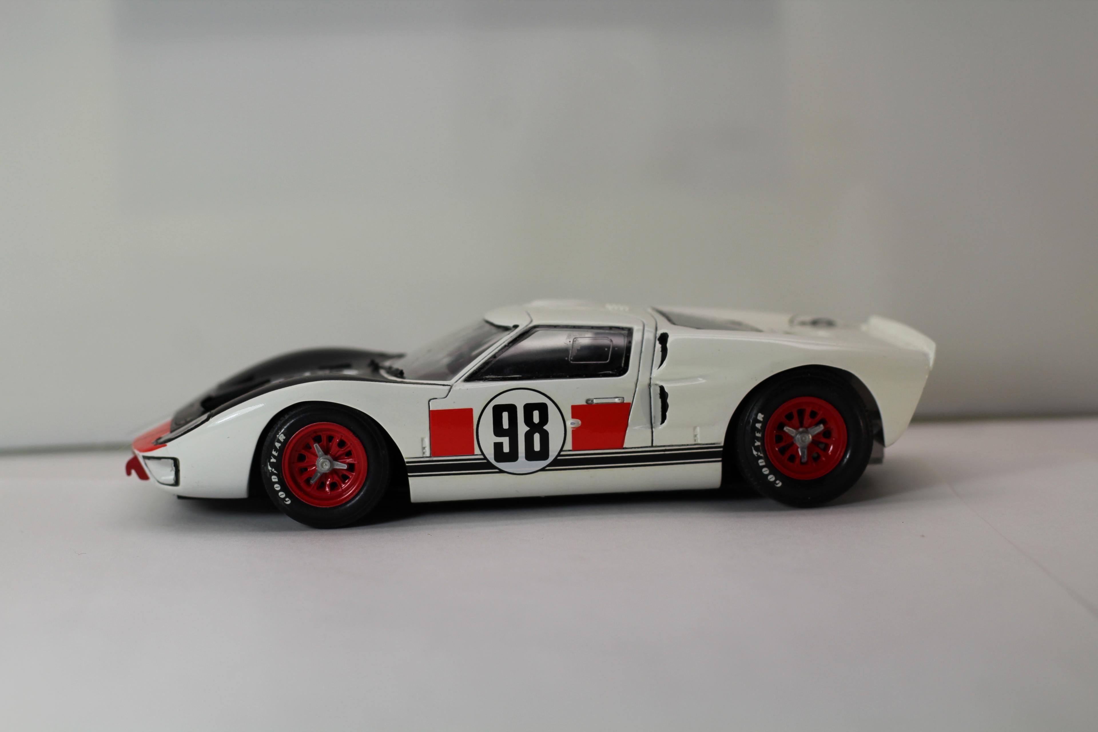 Another recent build. Ken Miles Ford GT Mark II. Daytona winner. Exterior is a custom white mix. Box stock build of the Revell kit. Questions? Enjoy! https://dangervideo.smugmug.com/Models/Ford-Model-Cars/Ford-GT-Mark-II-/ Danger