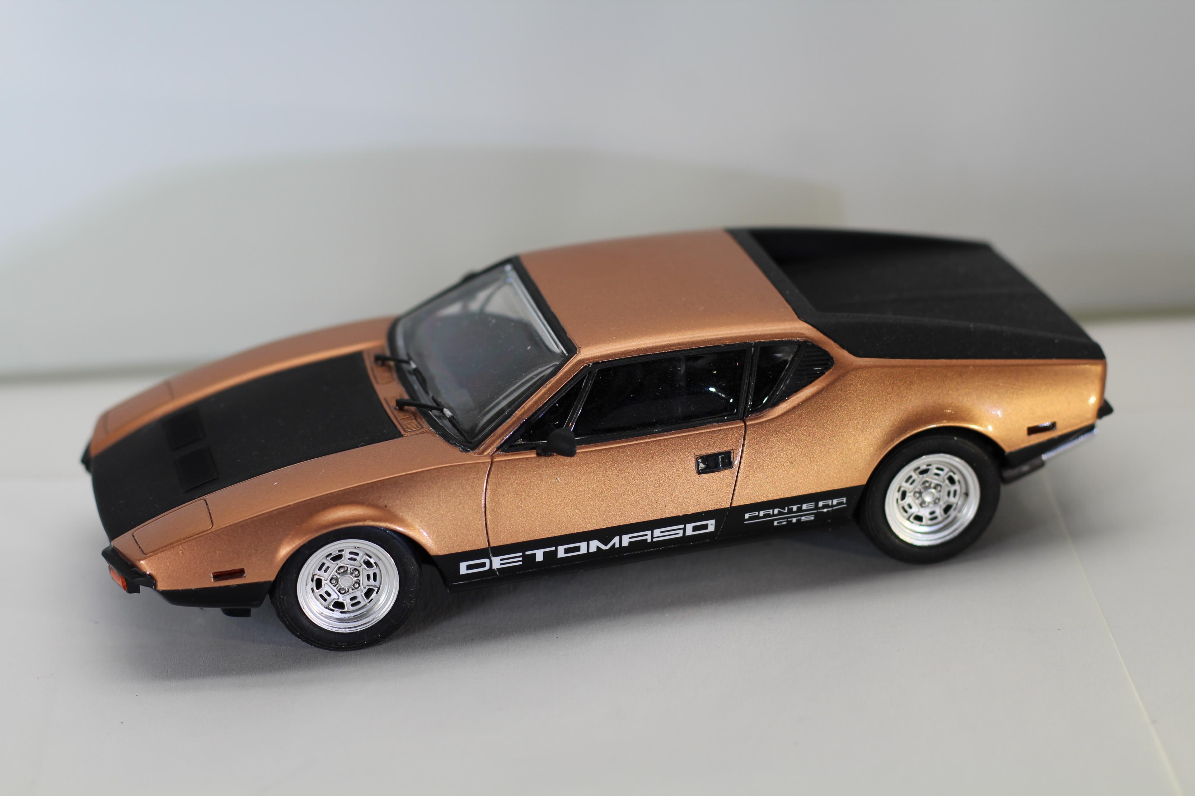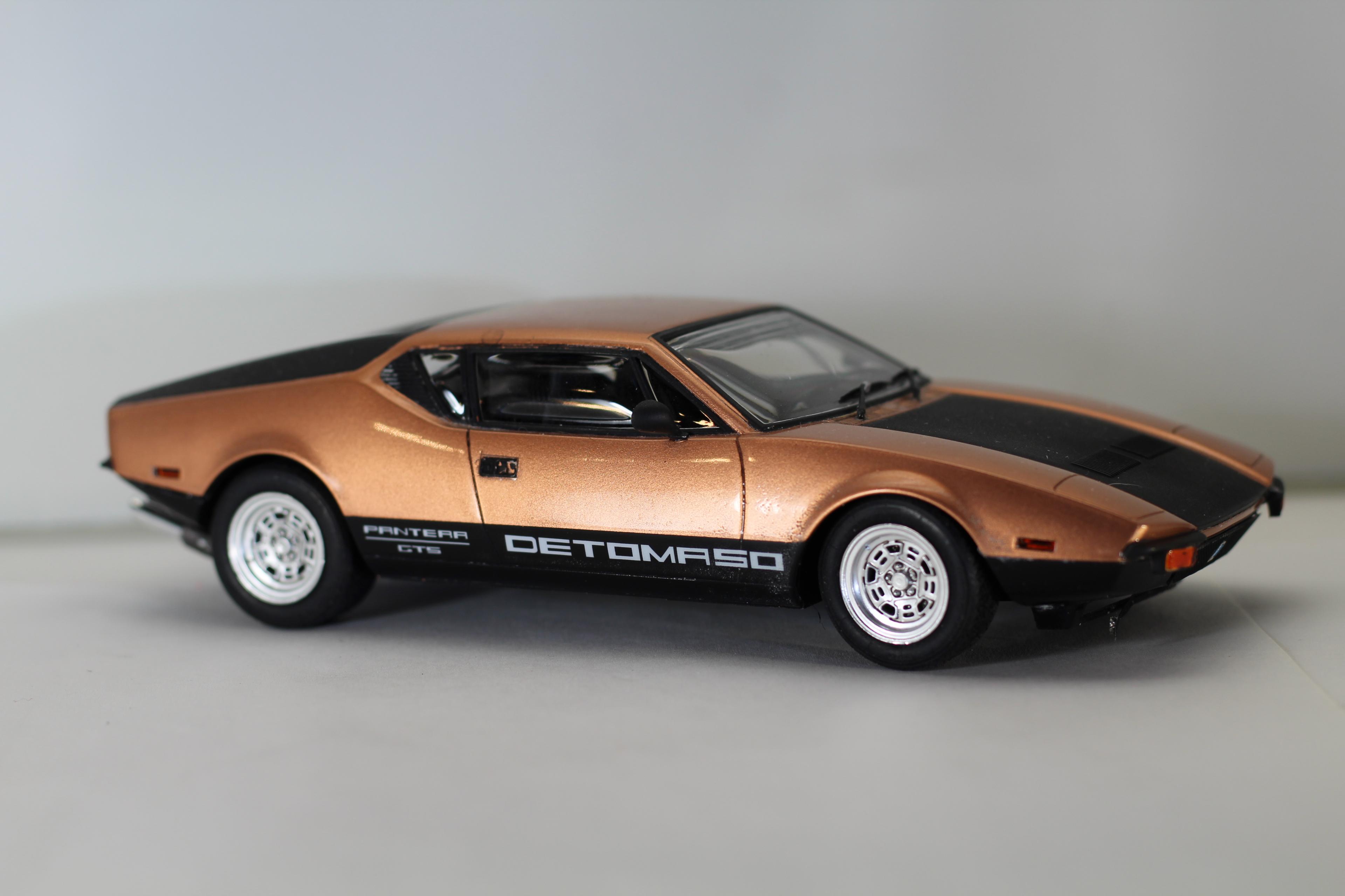 Another recent build, Fujimi's Pantera. Finished in Copper and Semi Gloss Black, with a dark grey interior. Photo-etch grills, shifter gate, gauge bezels. Enjoy. All comments welcome. Danger