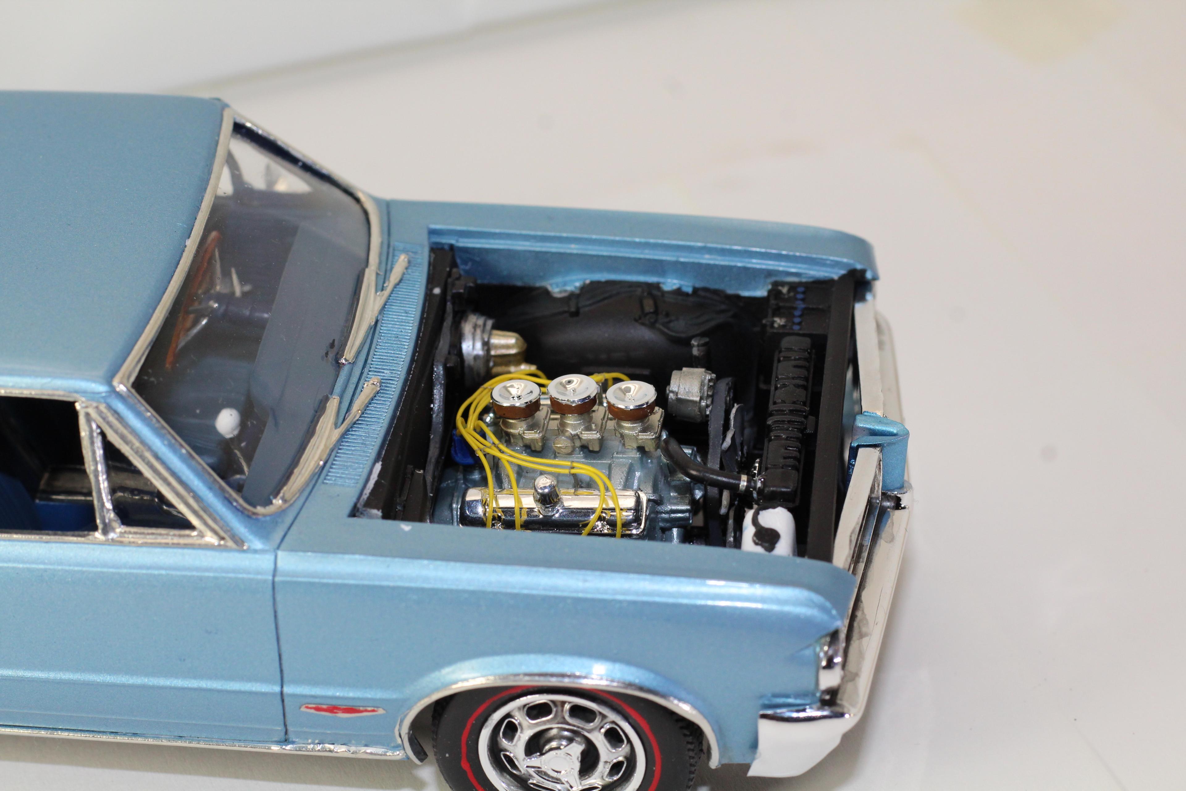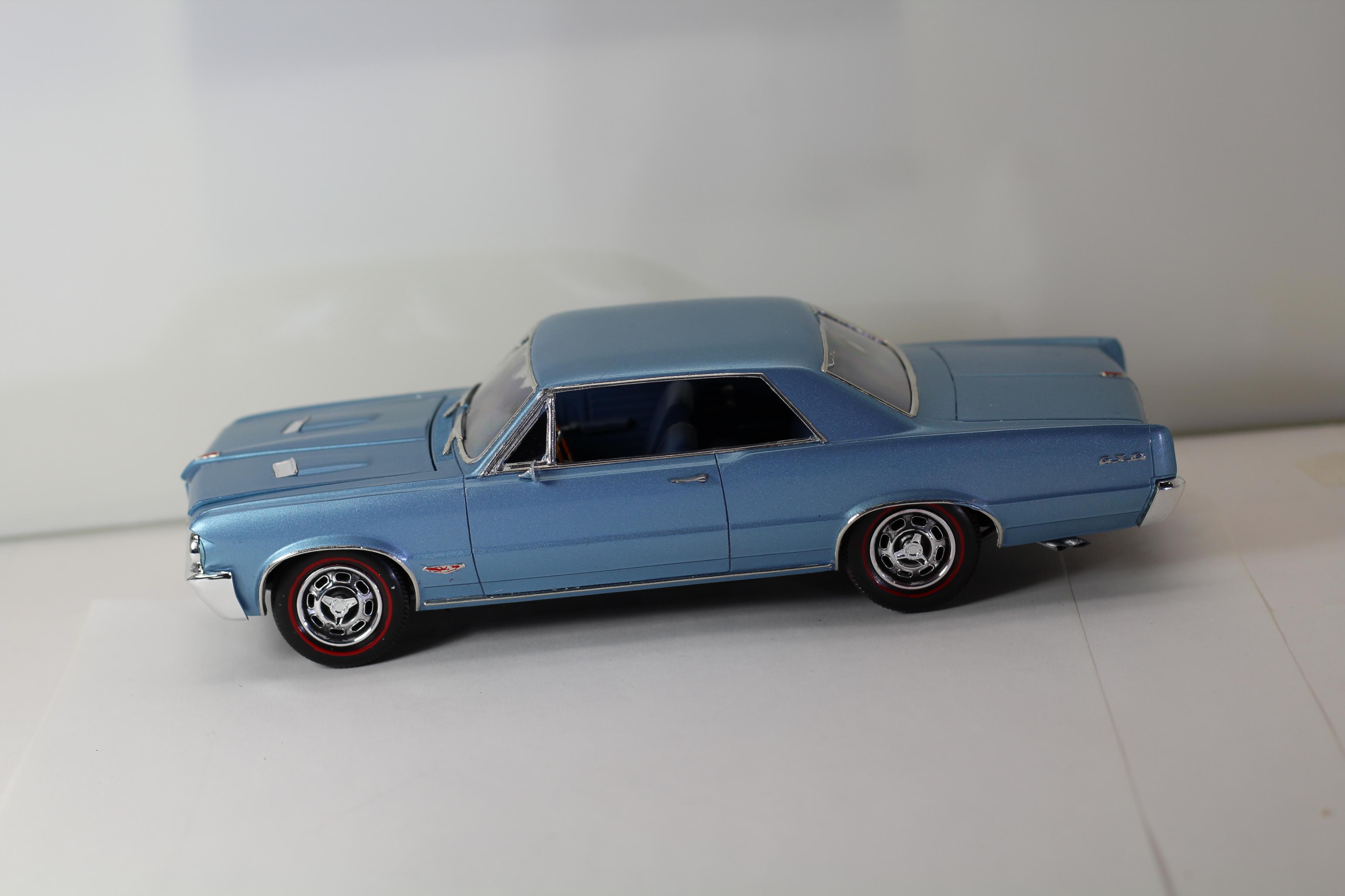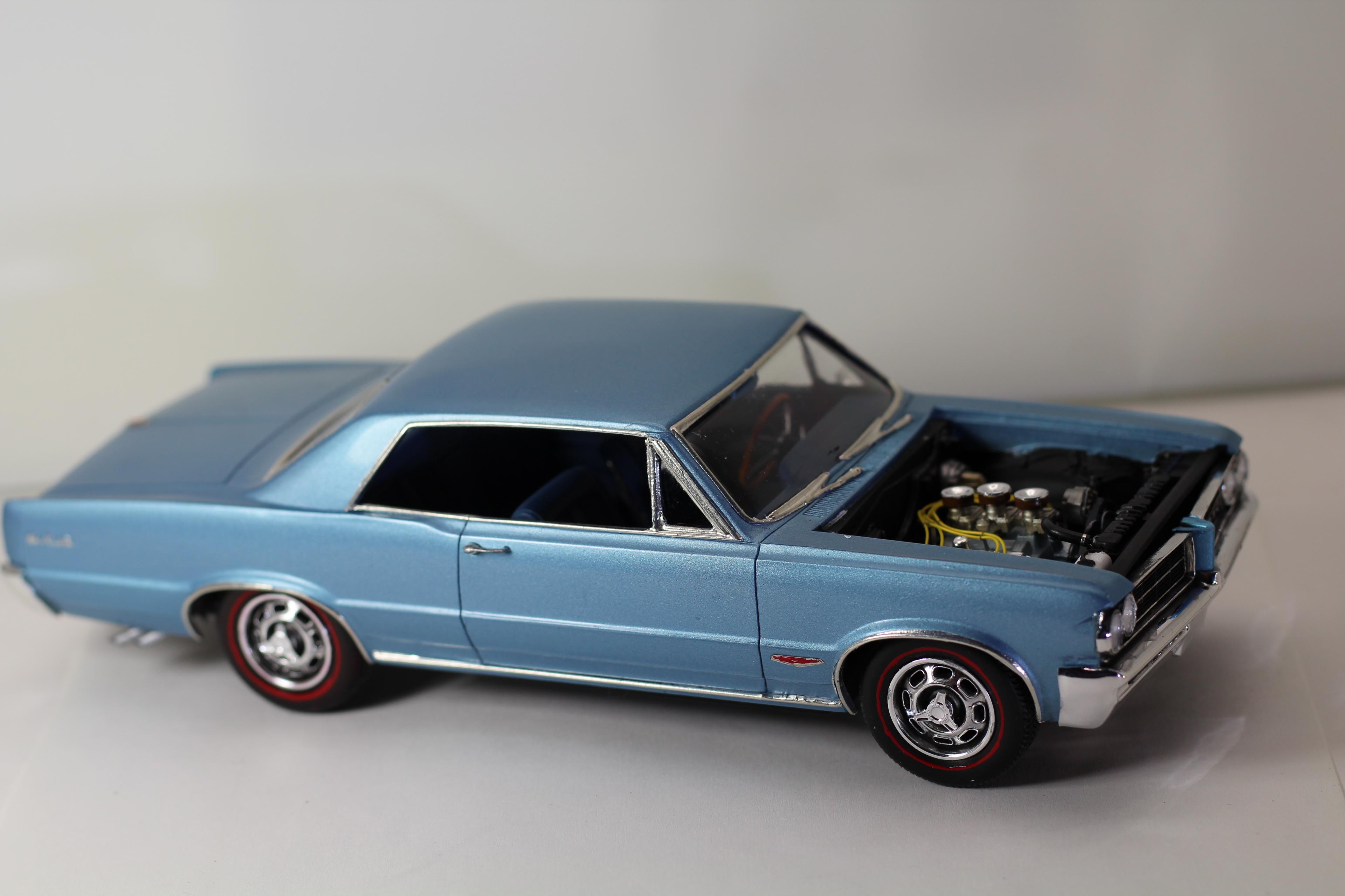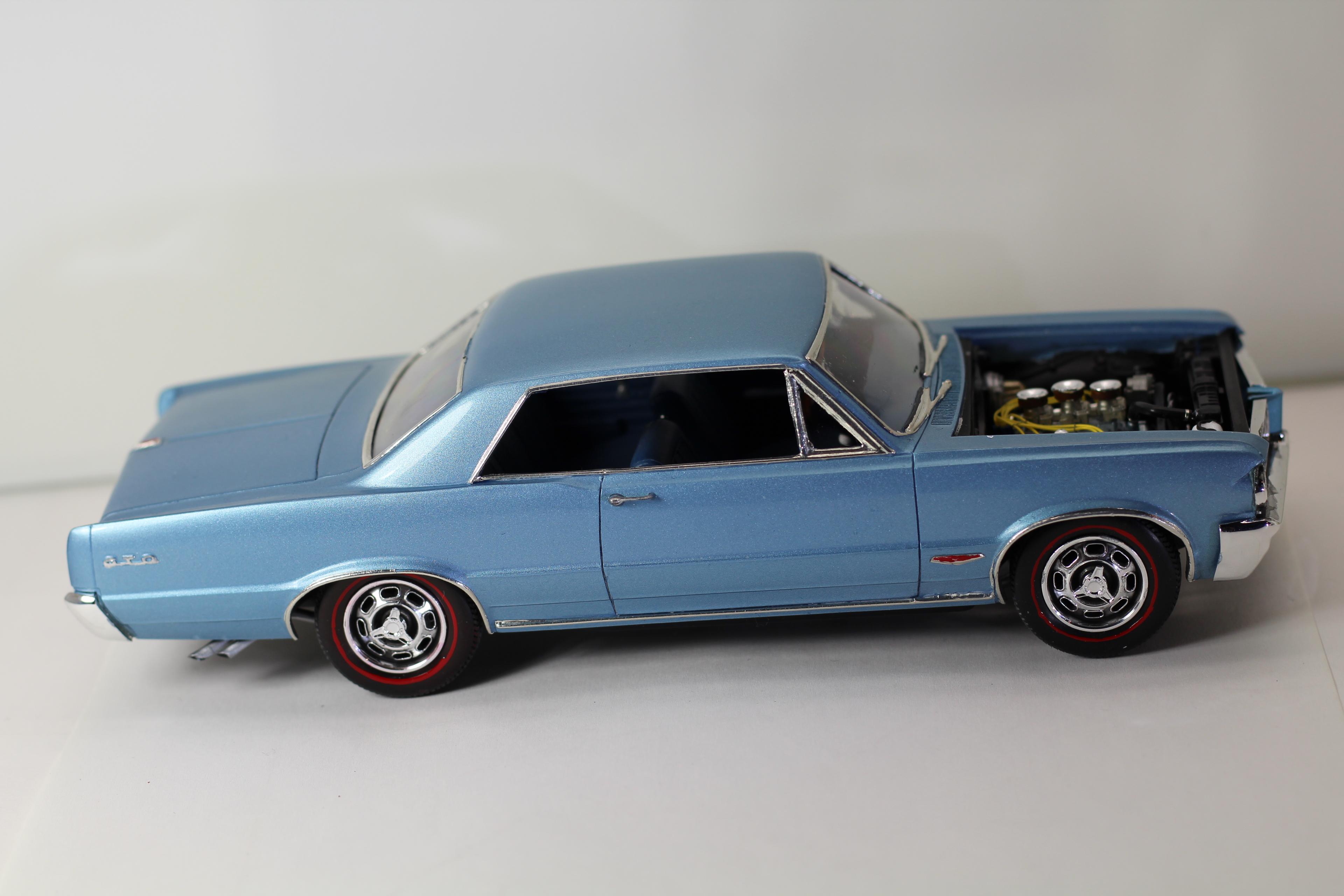 Here's my 64 GTO Hardtop built from the Monogram kit. Exterior is Nassau Blue Metallic with a custom dark blue interior. Wired and plumped the engine. Bare Metal Foil on all the trim. Painted the red lines on the tires. Replaced the door handles with Fireball models resin door handles. Enjoy. All comments welcome. Danger https://dangervideo.smugmug.com/Models/GM-Model-Cars/Pontiac-Models/64-GTO-Hardtop/
