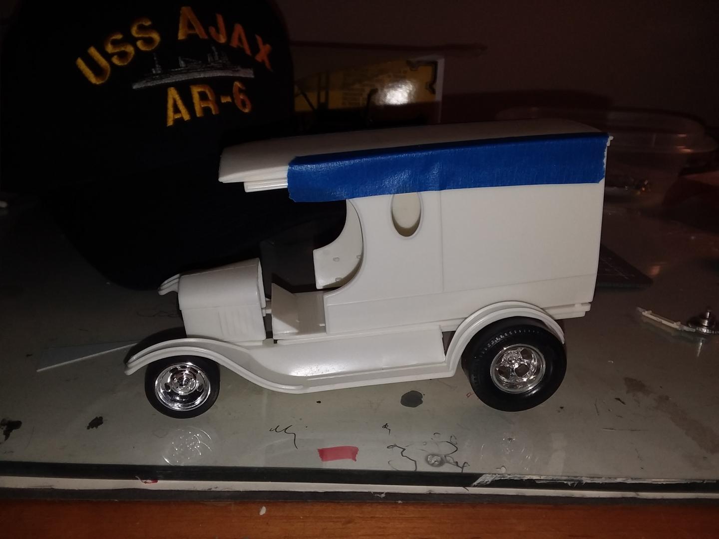 The kit is AMT 23 delivery the last release of the kit. The back tires are Revell slicks with MPC funny car wheels. Thank you guys or the nice comments.