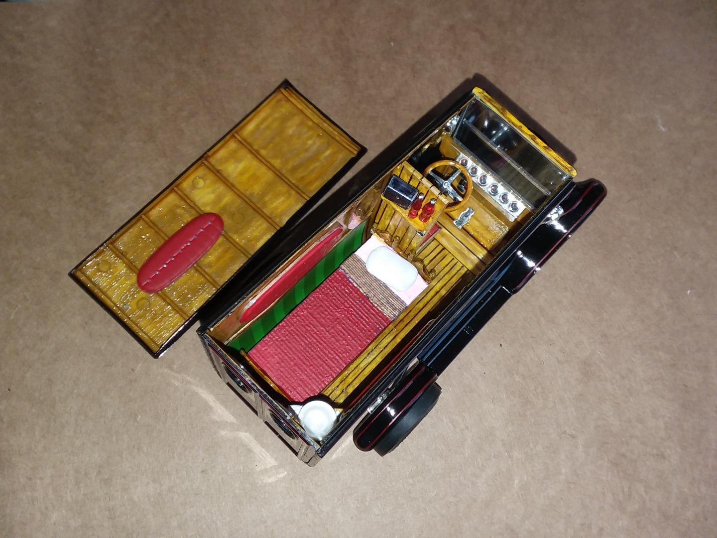 Got it done. This is Auntie Freaks mobile boudoir. Not much room back there but everything working girl needs. Drinks, cash box, whore bath, and a bed. Thanks for looking. I forgot the red light.