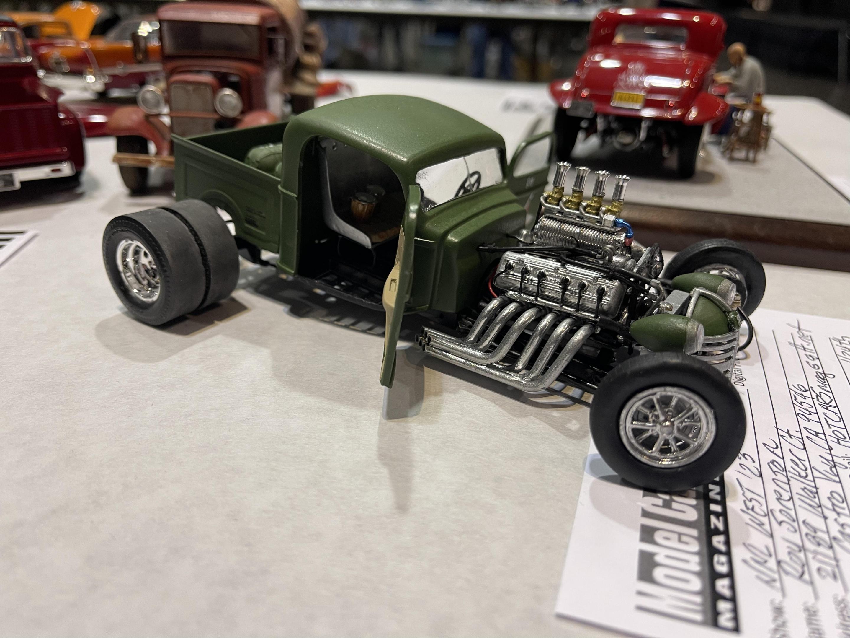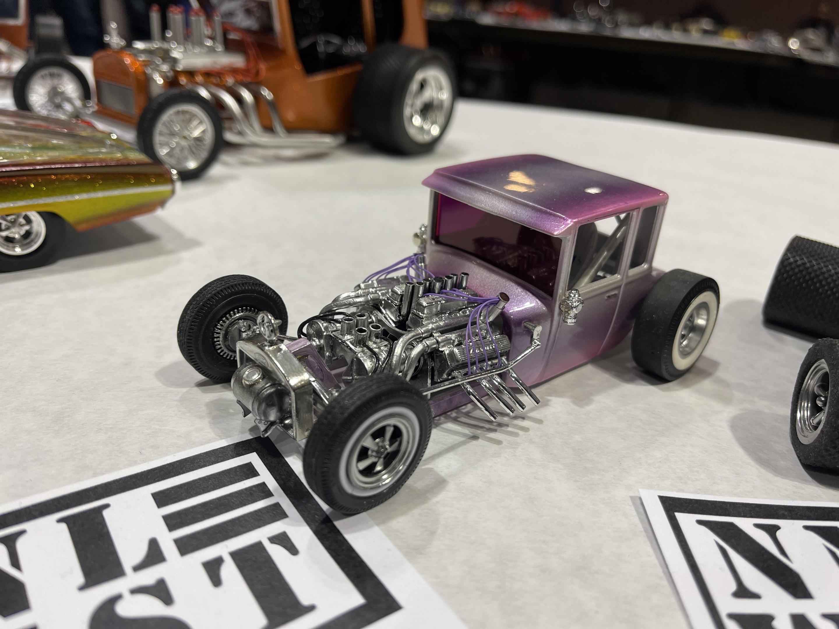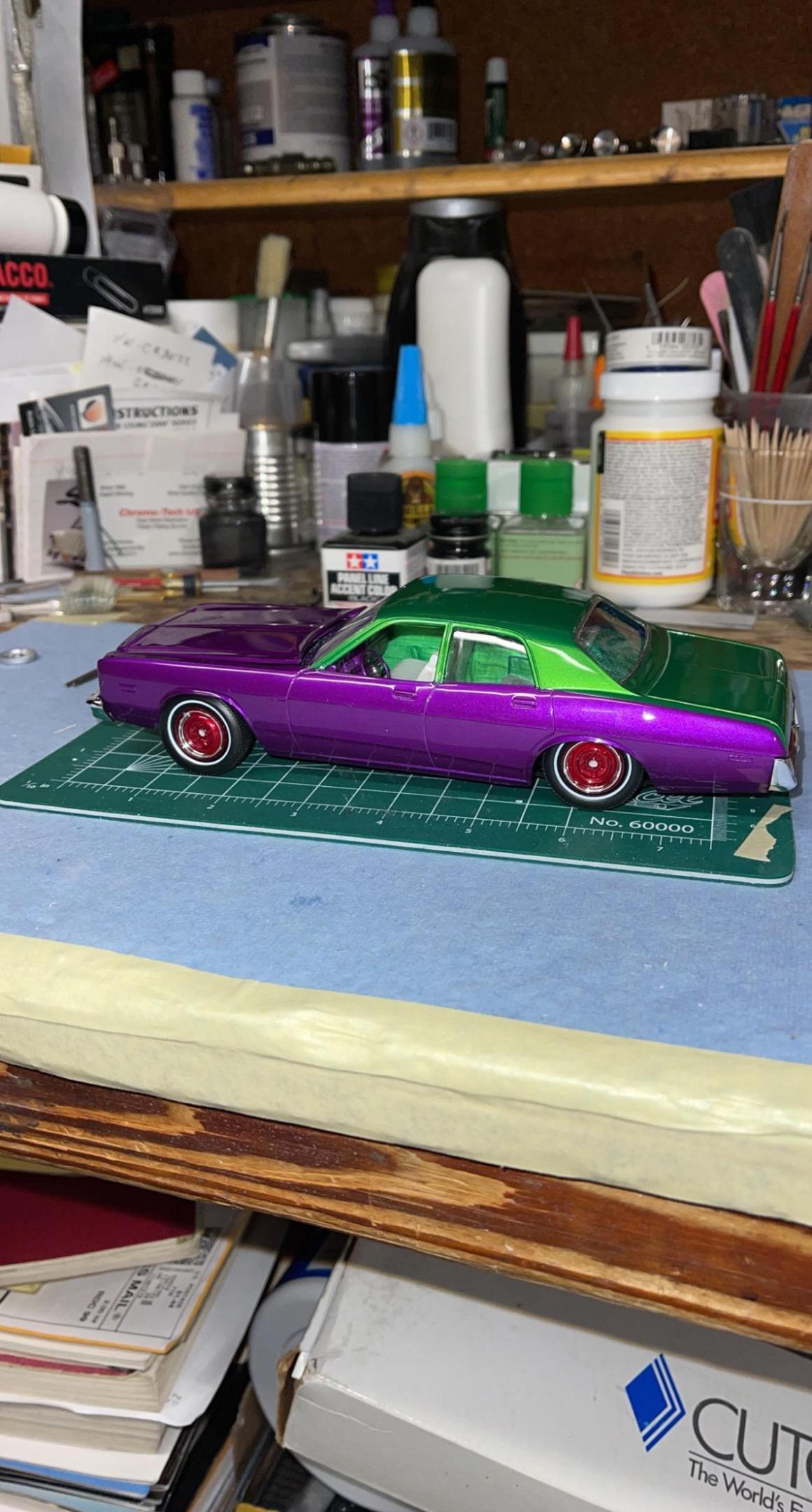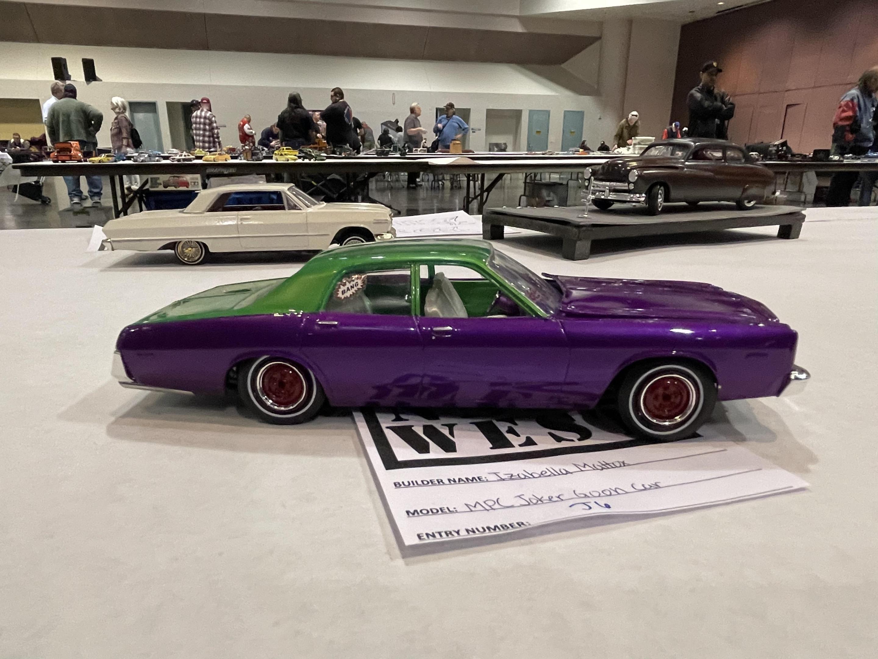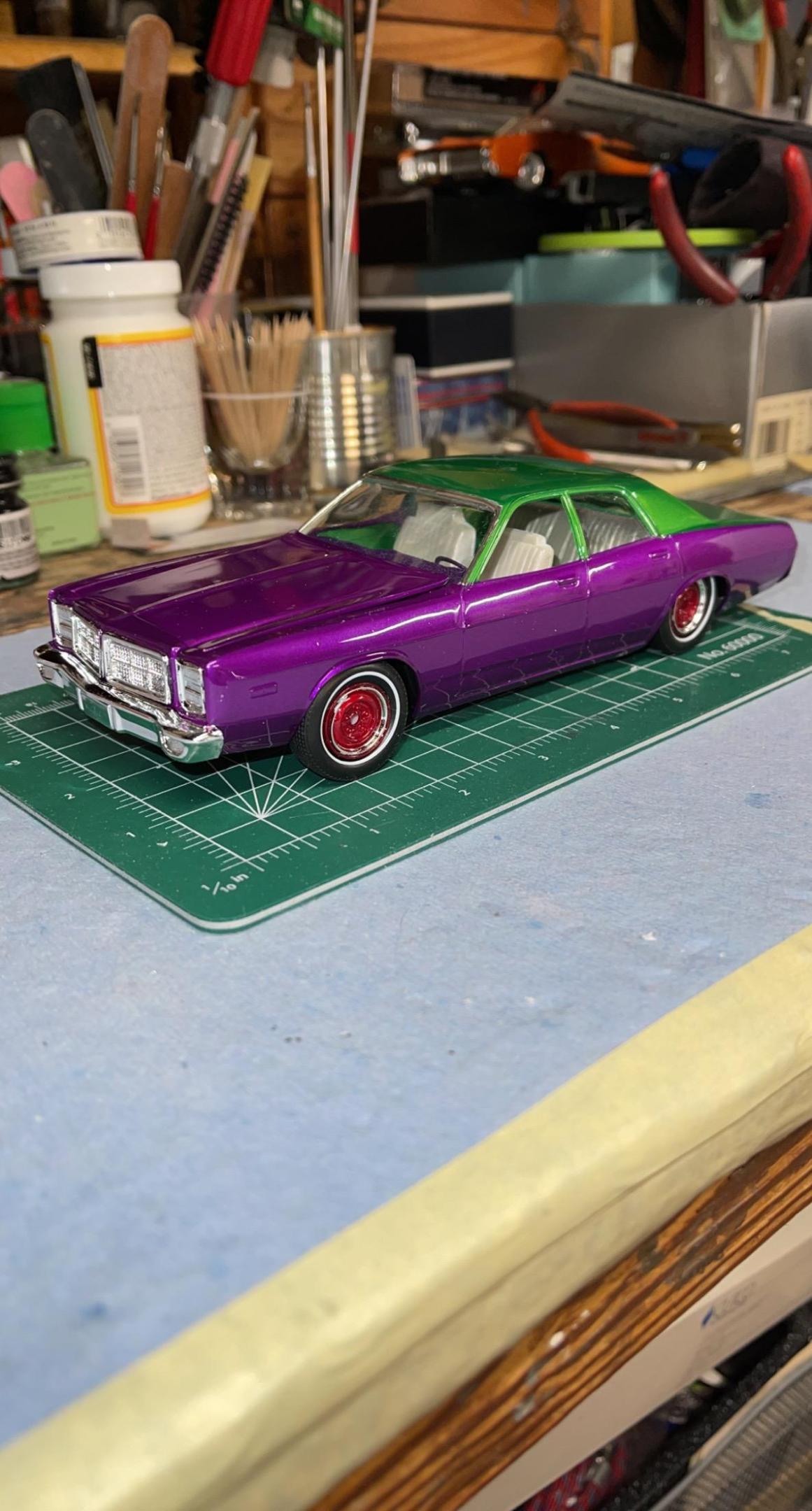 Happy Sunday all, this build had been in the WIP section for some time, my daughter has been working on it off and on for over a year around school and pool league. She got the build wrapped up this week. Overall, it the kit went together pretty well, I was thinking she would have some issues when it came down the grills and bumpers, but they all fell into place pretty easily. The model itself is built mostly with the kit supplied pieces. The idea for the build came from us all being fans of the Batman movies and fans of the Joker character. We saw the kit and thought about building it similar to the box art but wanted to dress it up a little. With the Joker, you kind of associate the green and purple in his attire but Bell wanted to tie in white and red from his face makeup. That is where the whitewalls and steel wheels came in along with the pearl white seats. The original plan was a fatter white wall, the newer 32 Ford donated its steel wheels and tires, but she had issues with the whitewall decals, so we stole some thinner white walls out of an AMT 65 Pontiac. The body is sprayed in House of Kolor's Passion Pearl and Limetime Green then covered in Deltron 3K clear. The interior was shot in the same bases, the seats were shot with HOK Snow White Pearl, she used green flocking for the carpet and some purple over the top of the dash. Some exhaust ends were added, made from some tubing and black wash was applied to the grill pieces. She took the model to the NNL West yesterday was super happy to receive the youth award! Onto the next builds, she has a Revell VW she is working on and wants to build a Revell Merc or one of the 29/30 Fords for the upcoming West Koast Kustoms show coming up in Santa Maria!