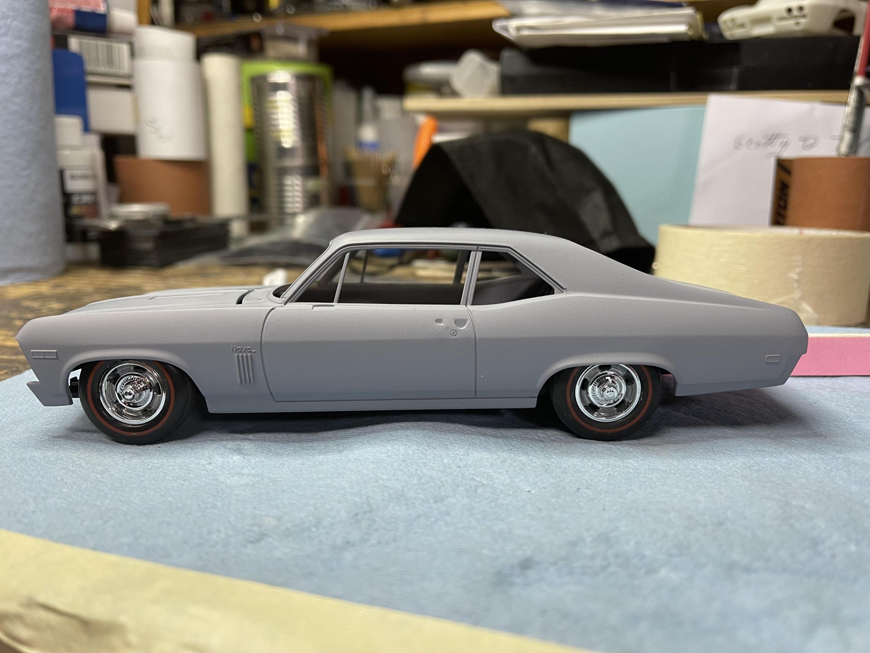 Little bit of more body work and cleaning/scribing etc. working on extending that body line where I removed the corvette emblem. I like to tape off the surrounding areas and keep the filler as minimal as possible