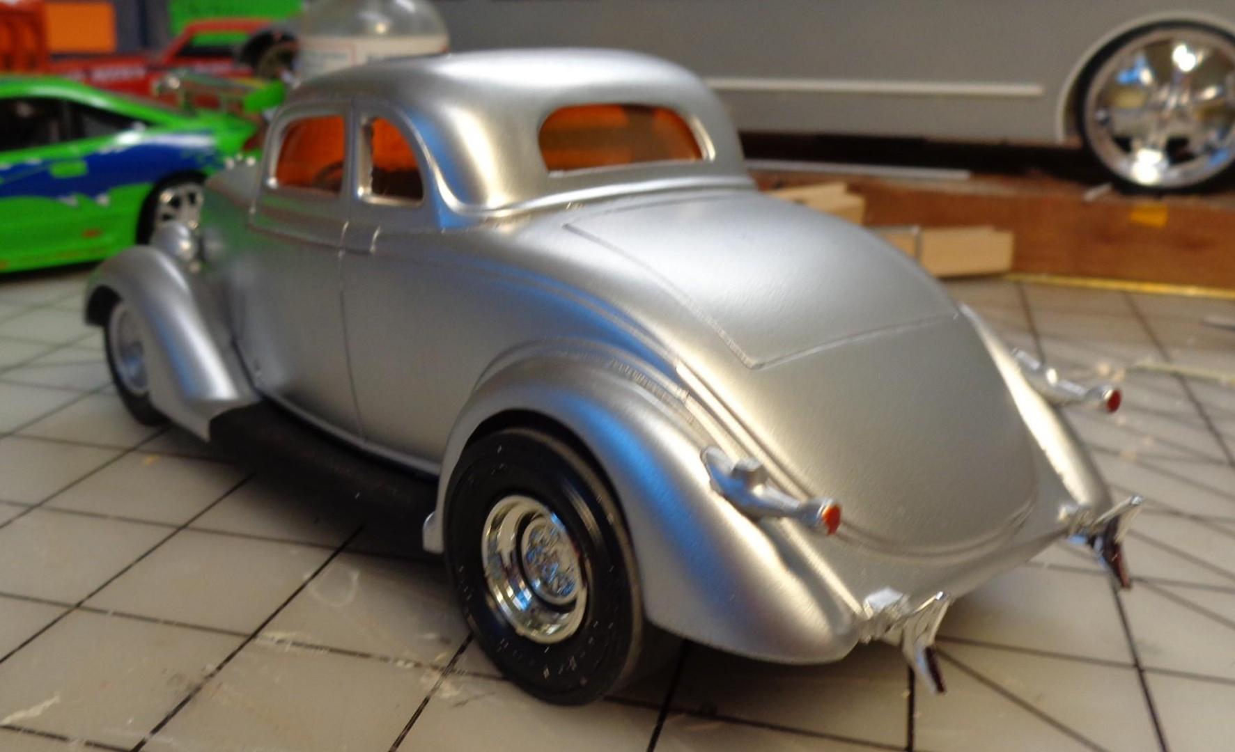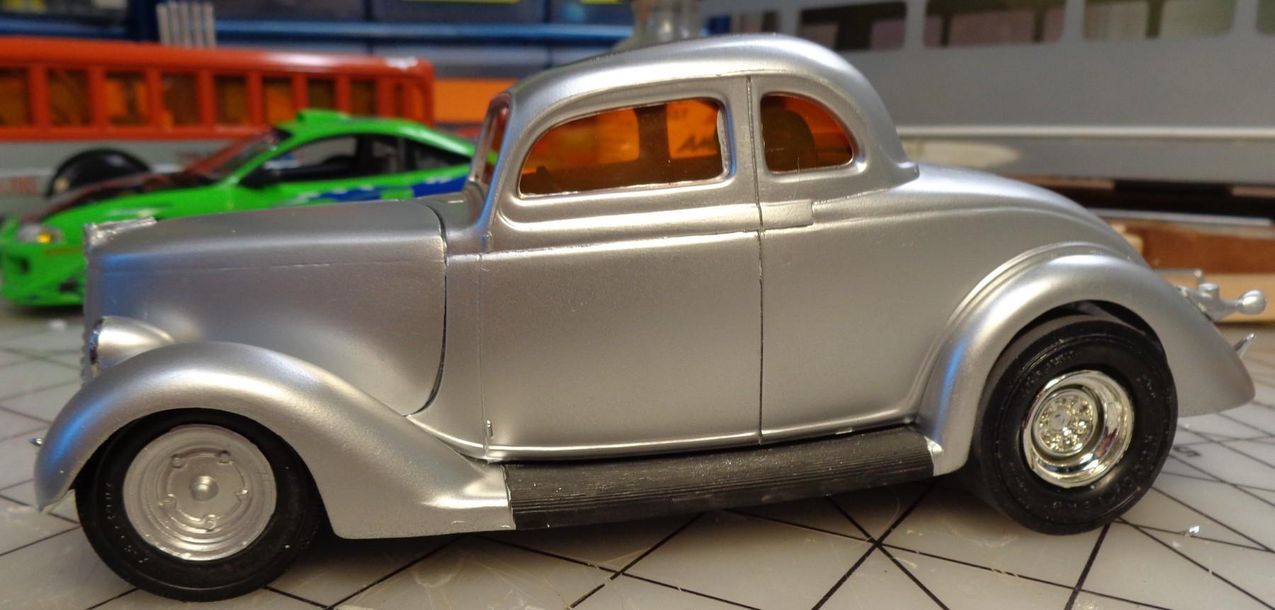 This stalled project is about 12-14 years old. It started as a LSR car....then a custom....then a street rod....so it's not any one thing!!! Pretty much just what comes in the box.....Tamiya Silver Leaf paint. Orange clear stock windows. Even after 12 years this one fought me. I had painted it years ago....decent paint...but when I opened the box a tire had messed it up. I repainted it....only to have glue run around the grille and ruin the hood!!!! It's done.....just stand back and look!!!! thx