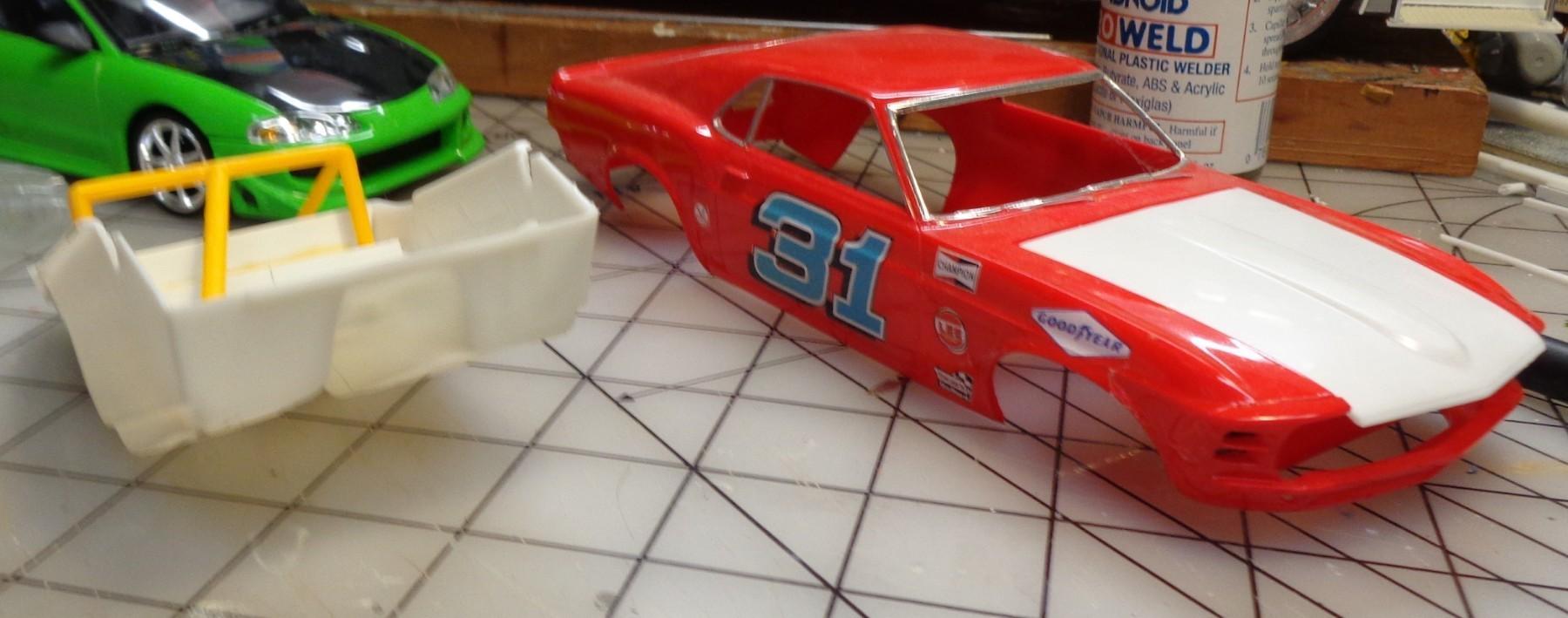 Started a number of years ago......just lost my way and put it in a box. I am trying to build as many of Tope's race cars as possible. Monogram 1970 Mustang with a simple roll cage and racing interior. Tamiya bright red paint and Penngwen Hobbies decals.