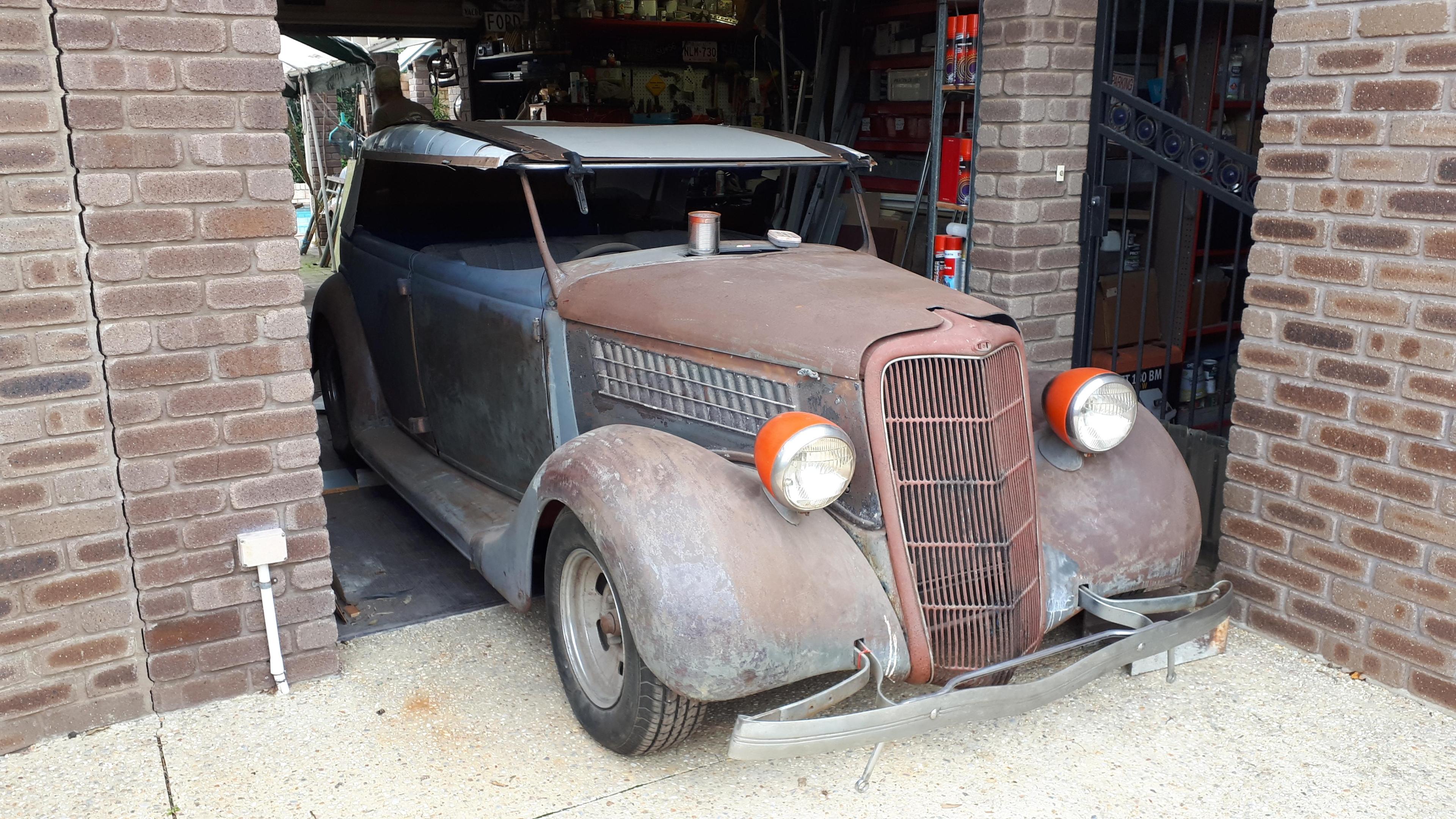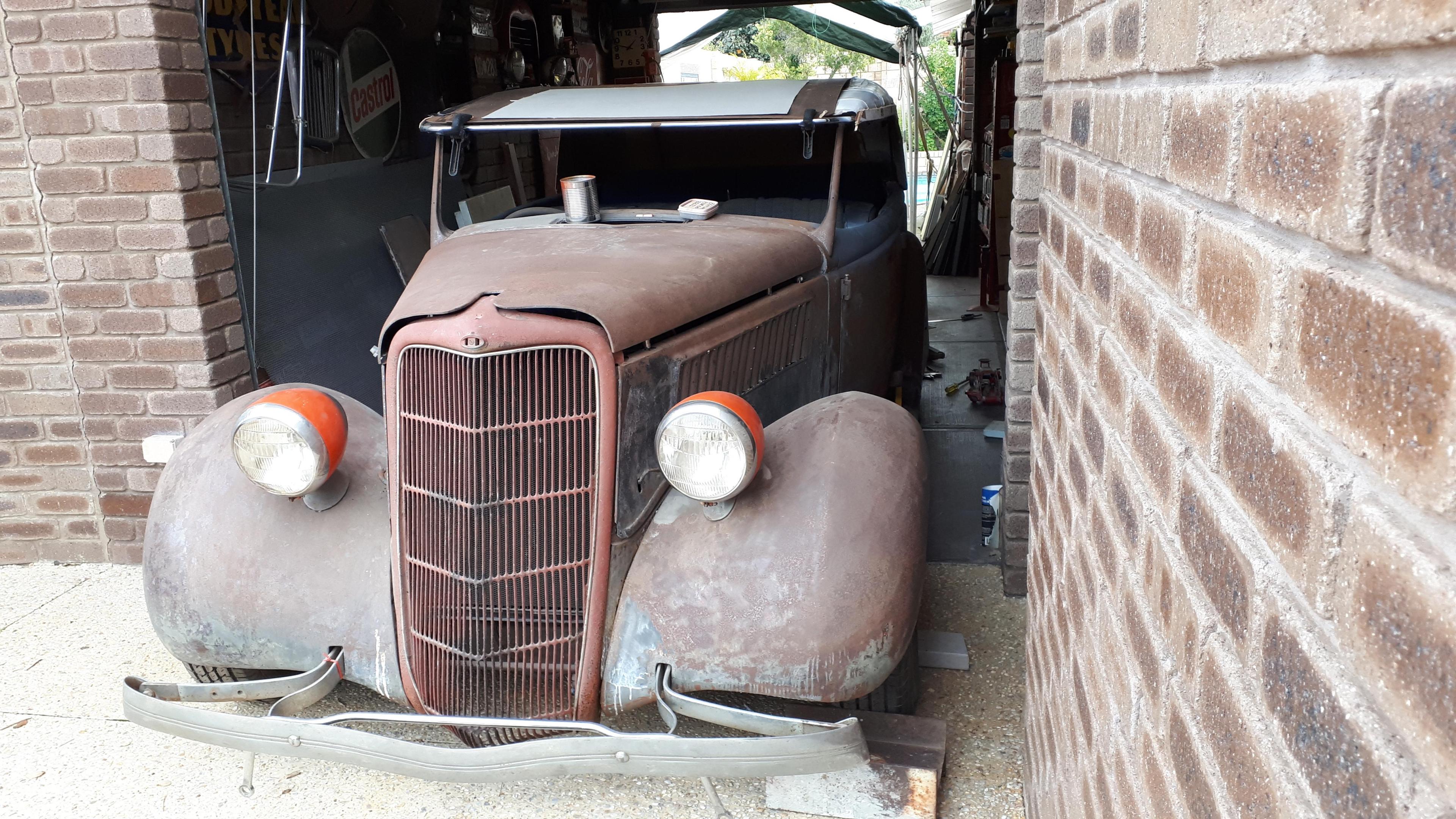 Here's mine, the original "twelfth of never" project. I have been on this over thirty years but refuse to give up. A 1935 Ford phaeton that I bought at an auction as a complete basket case for $100, and then sold unrelated parts out of it for $100 the next day - yep, a free tub! This has had a huge amount of work done on it in the time I have owned it but still has a long way to go. I promised everyone that as soon as I retired I would be working on it seven days a week. No, really! Instead, I have been building models like tomorrow is the last day of the universe. I have finished eighty models in 20 months but alas, the phaeton is still sitting in the garage laughing at me. Will eventually be a fifties style custom but with 350/T400 under the hood, Holden IFS and Chrysler Centura coil sprung rear. The basic fabrication work is all done but final details like interior, plumbing, exhaust and gear shift are killing me! I want to get this car so right and not just hand it over to someone to finish. My motto is, "I can make mistakes for half the price of a professional!" Wish me luck! -