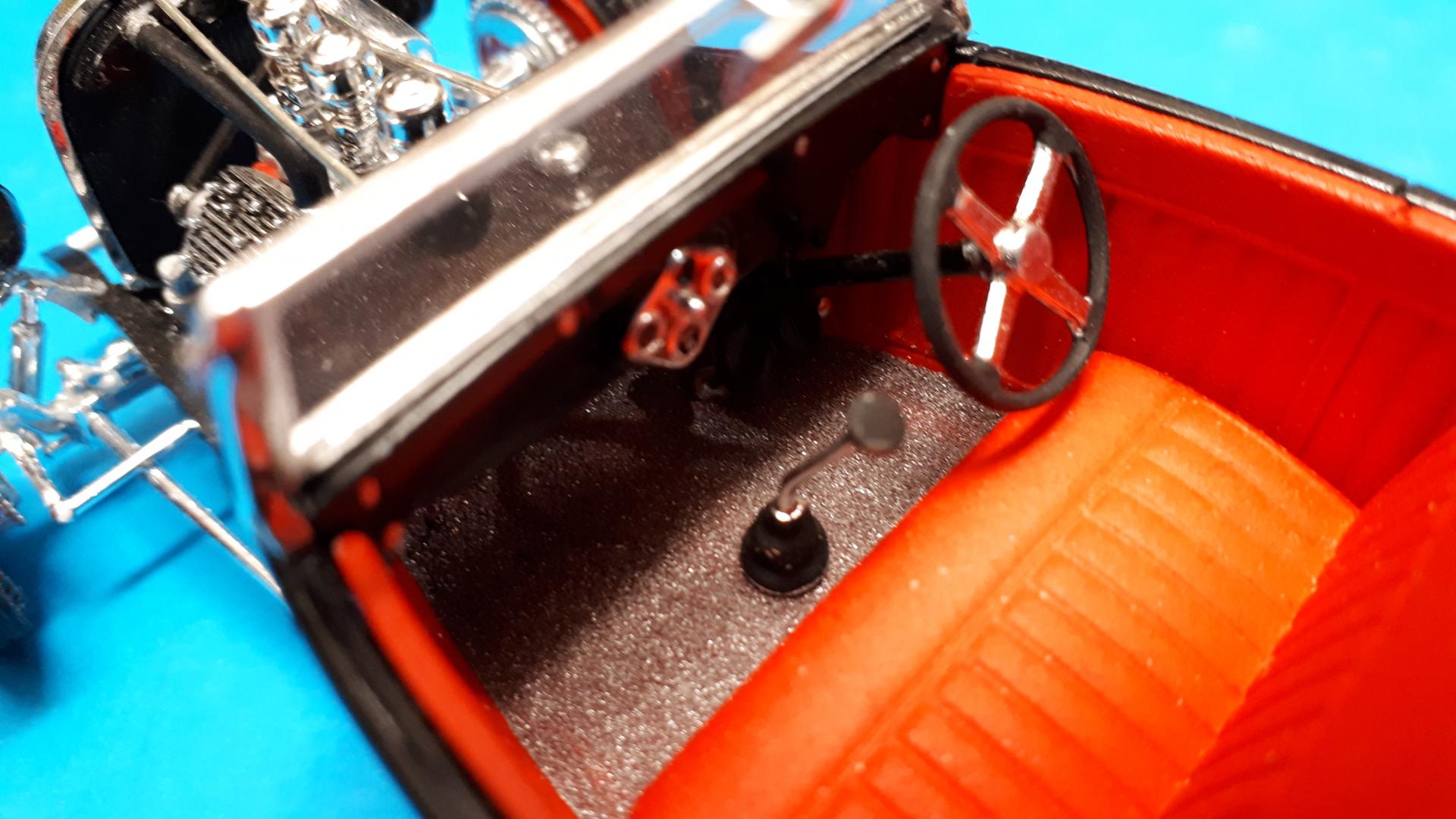 Yes Dave, I read that article by Pat Ganahl when I was still in high school, frustrated by the fact that at that time, AMT kits were not sold in Western Australia! All we could get was the Monogram Son of Ford, the Boss A bone and the SweeTee so my brothers and I bought them up in multiples to be able to build a rod of some sort! And yeah, horizontal, vertical, level, I don't know what the right way to describe the placement of the prisms cut into the headlight glass, other than they shouldn't be crooked! Speaking of headlights, I kept looking at those photos above and decided I couldn't stand them anymore, they had to be replaced. They are just too big for that era car. So last night, I gently removed the medium sized Revell kit lights and replaced them with the smallest sized lights after painting the buckets black. I'm much happier now! Cheers Alan