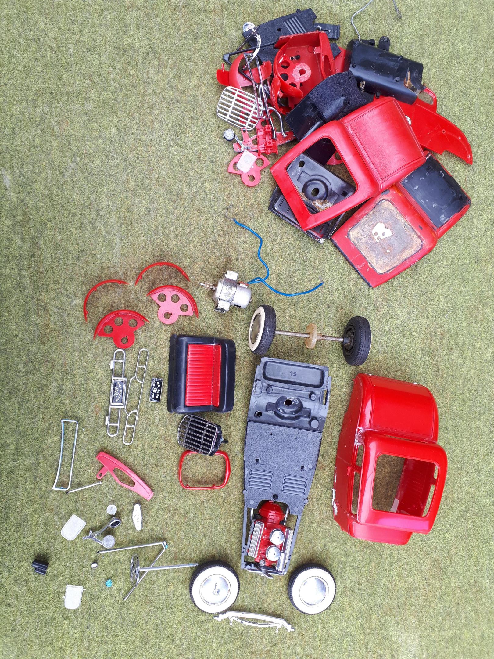 With repairs to the body and frame completed it was time to paint and re-assemble. I chose metallic blue Duplicolour because I am a rather traditional rodder and the temptation to have an entire fleet of red hot rod models is huge. Besides, you rarely see this model in any colour other than red so that was a good enough reason for me. I love the finished product and love that I saved an old model from going in the trash. It is a real flash back to the late fifties/early sixties. I didn't attempt to super detail it in any way because there are far better Deuce coupe models out there and being in approximately 1/20th scale there are not a lot of parts available to upgrade them. But that didnt stop me starting to look closely at the remaining parts left over in the box.