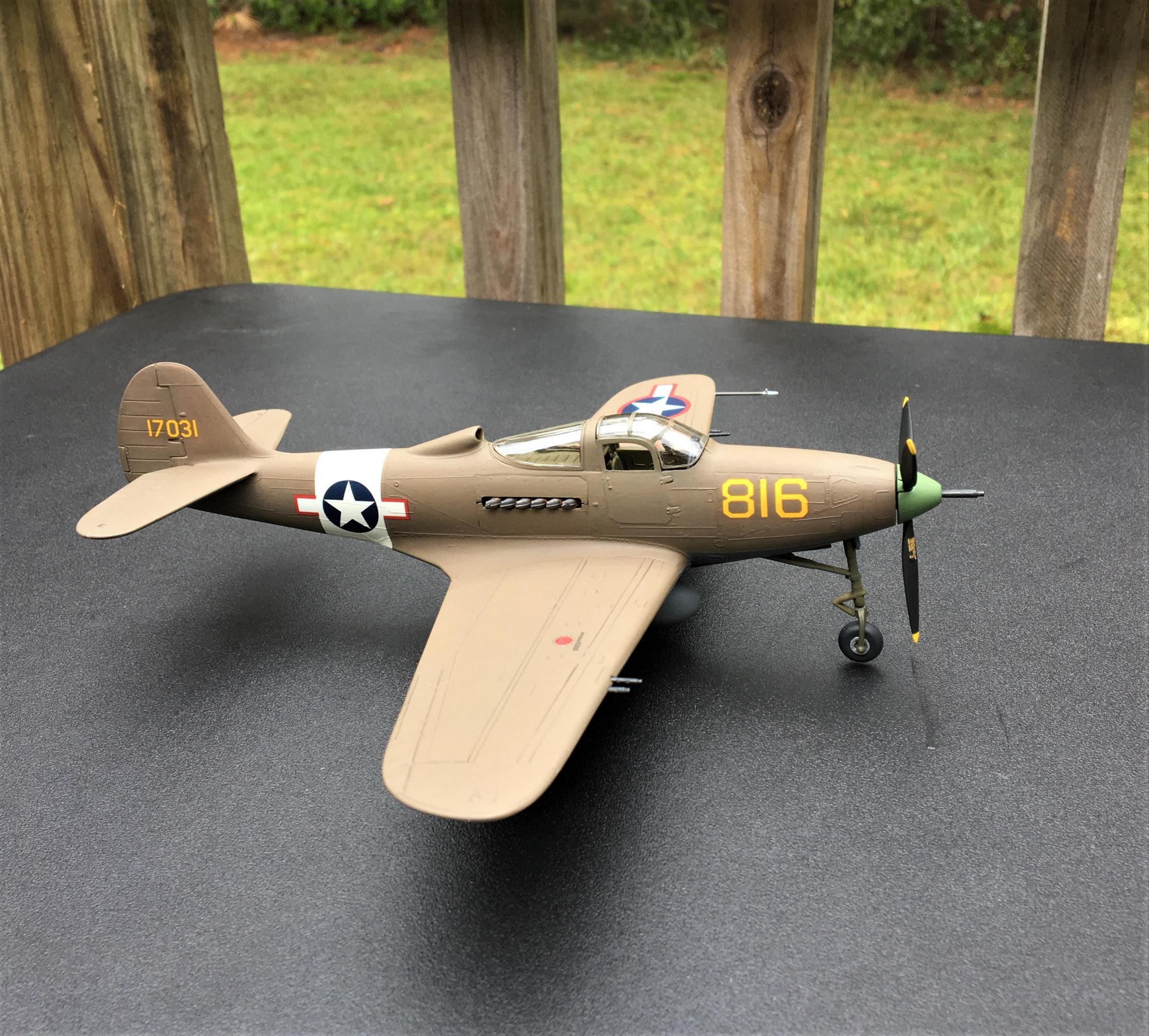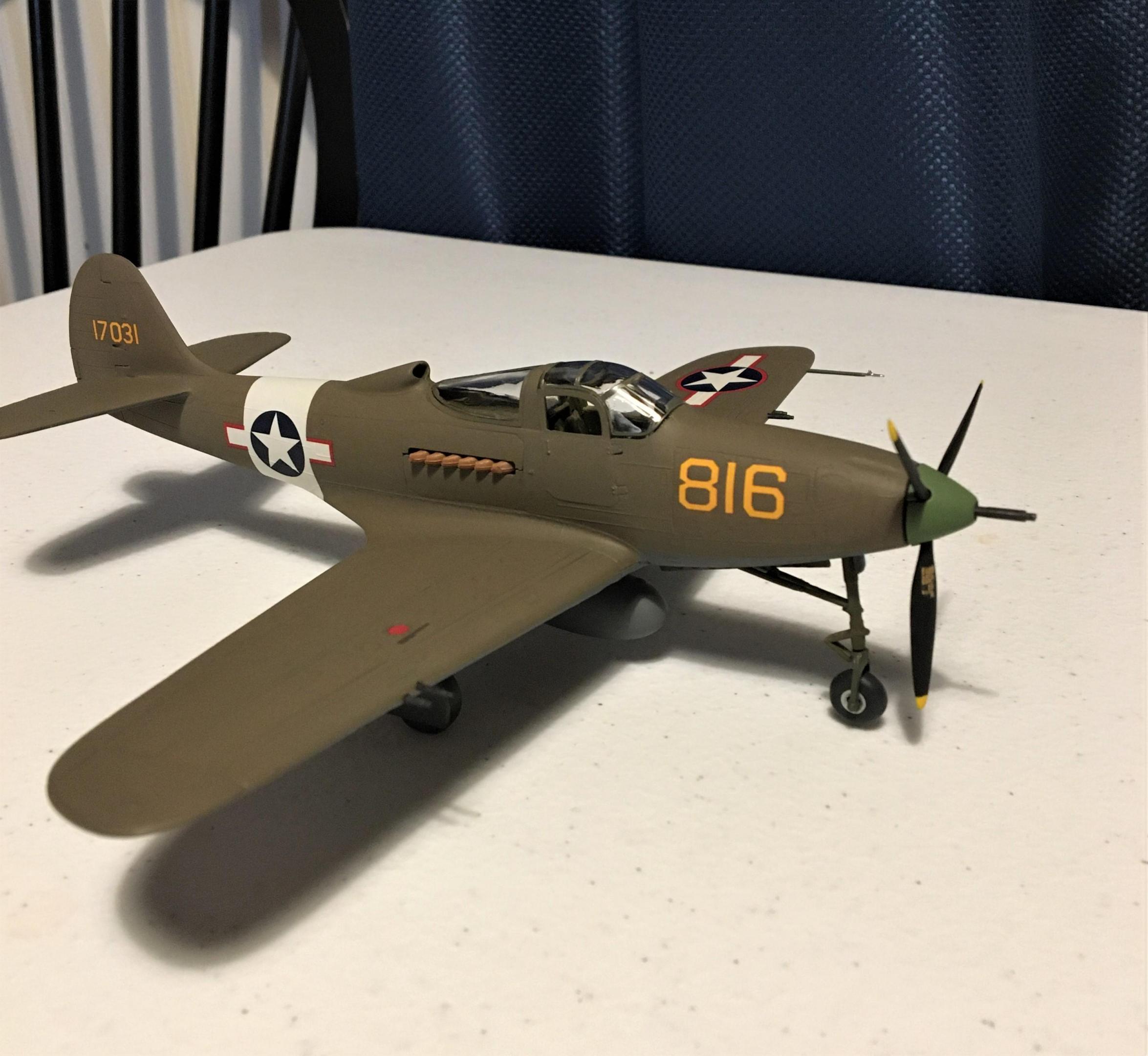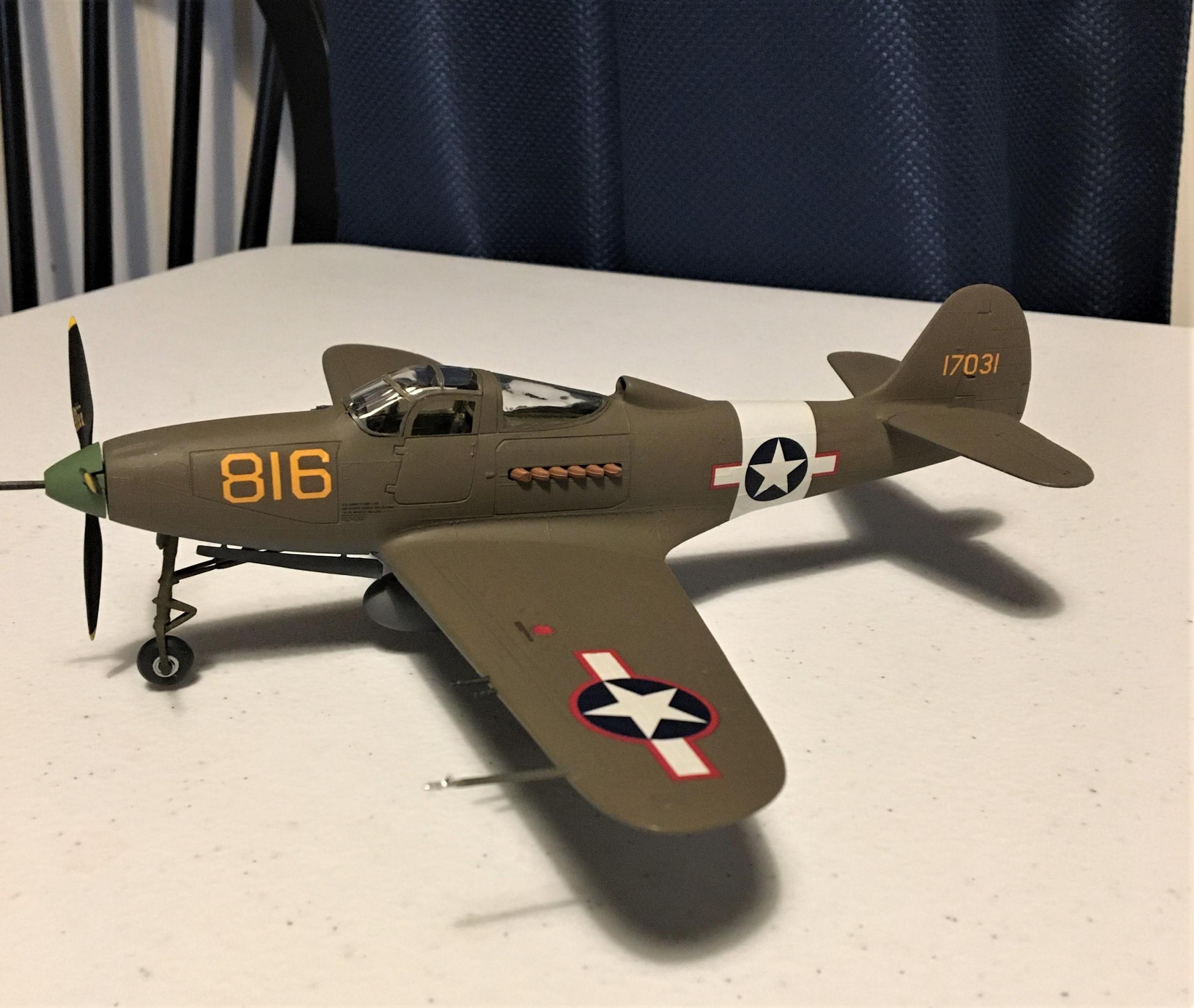 20. First plane I have finished in several years. no weathering or super detailing just OOB. Kit markings for a North Africa theater aircraft. Still a decent old kit. Pollyscale paint with Testors dullcote. Carpet monster kidnapped the gunsight and one nose gear door fell off.