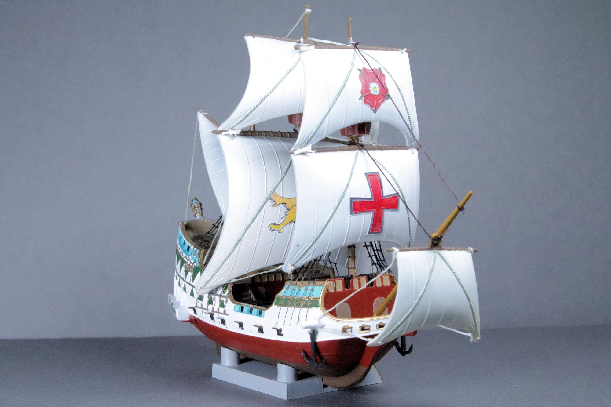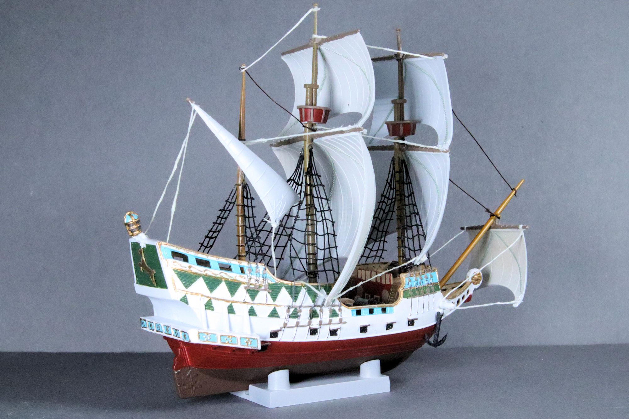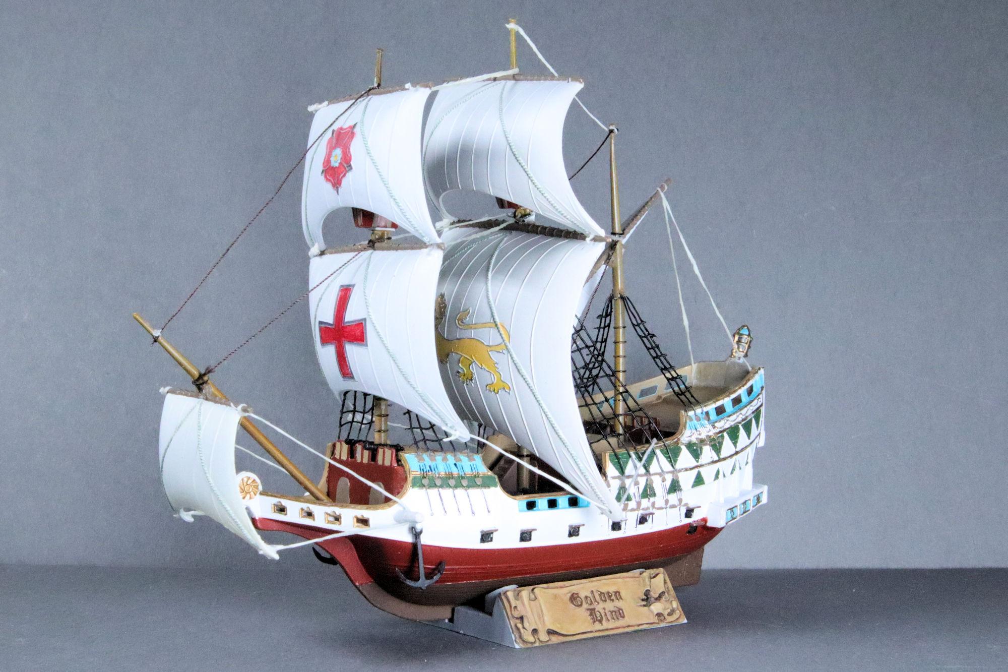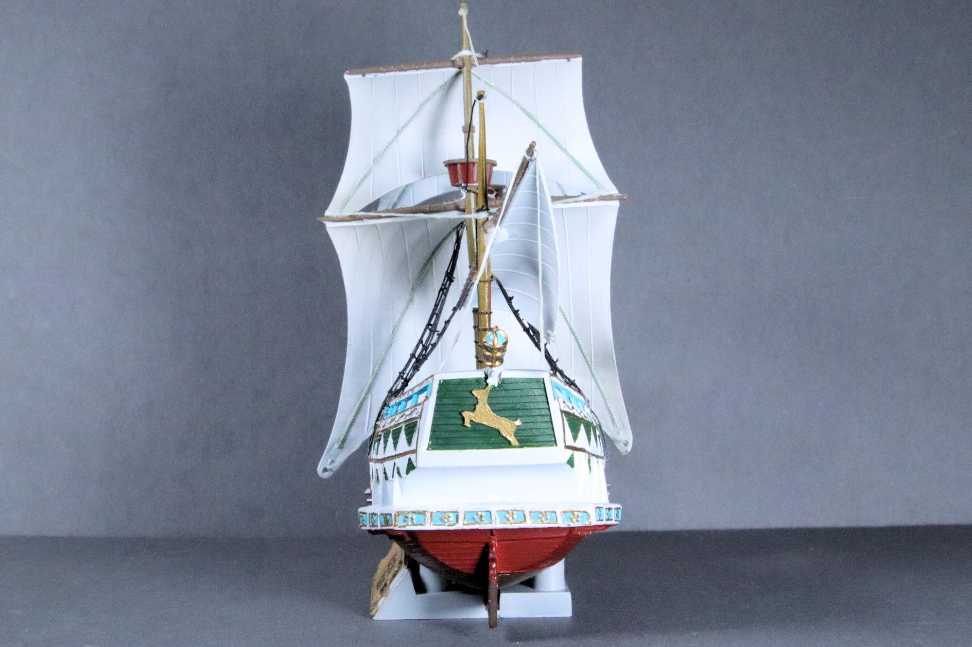 Hello Everybody! This kit is supposed to be a rendition of the Golden Hind captained by Sir Francis Drake in the 1570s. The actual ship which inspired this kit no longer exists but a few replicas have been built and this kit holds little resemblance to any of them. The kit seems to be based on an entirely different style of ship. It's probably the standard base master from which all the other ships in Lindberg's series were derived. Needless to say, I'm not particularly concerned about the historical accuracy of this build. For those who may be interested I have a complete WIP thread that details the whole build process. That being said, on with the show. This kit was more of a challenge than it had a right to be. Using wire and string, I fabricated the ratlines to replace the clunky plastic ones that were missing from the kit. The deer silhouette on the stern is cut from photo paper and painted gold. There are a few other photos I want to post and I still have to get my traditional Display Case shot. So until then, thanks for taking the time to look and please feel free to post any comments you may wish to share. David G.