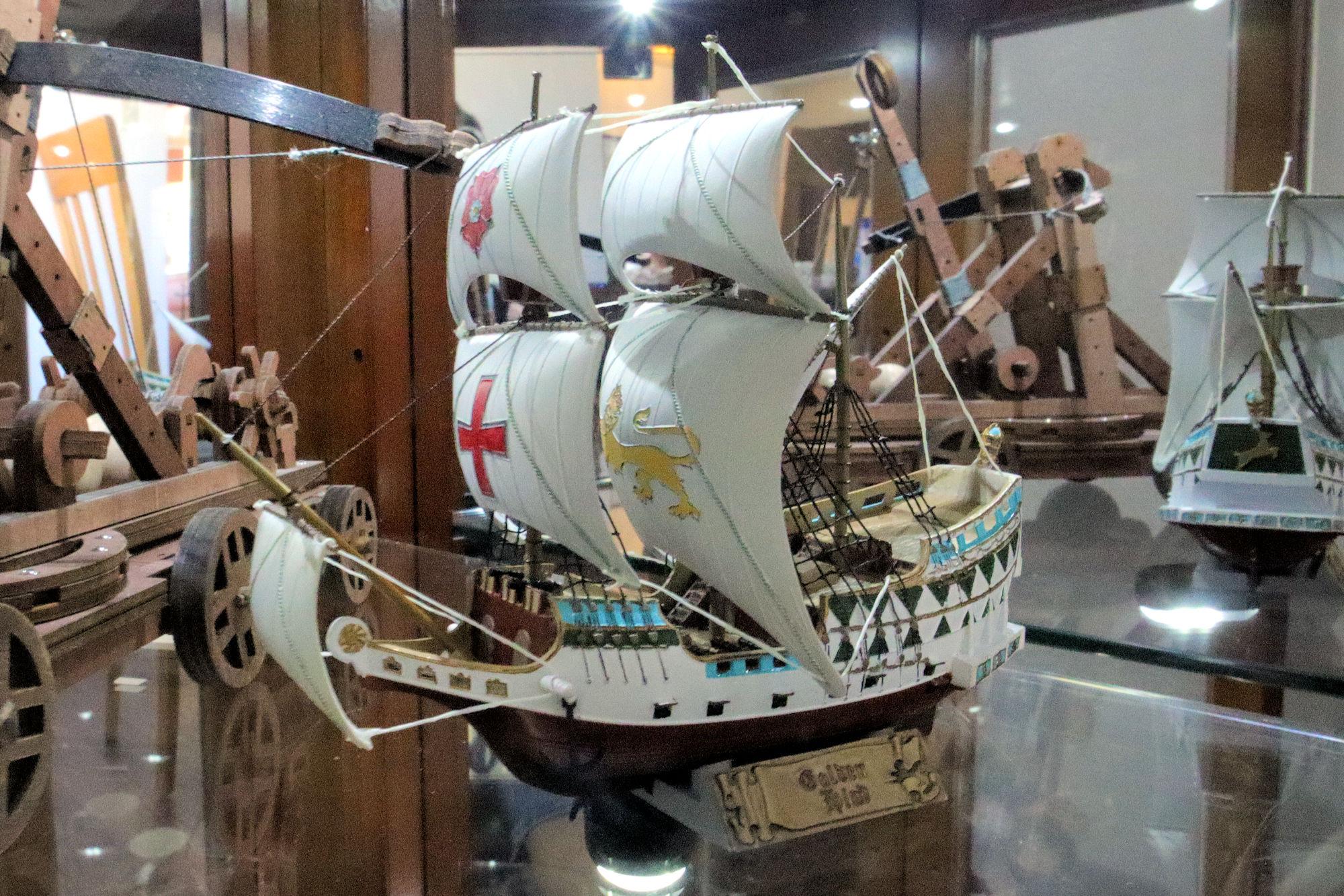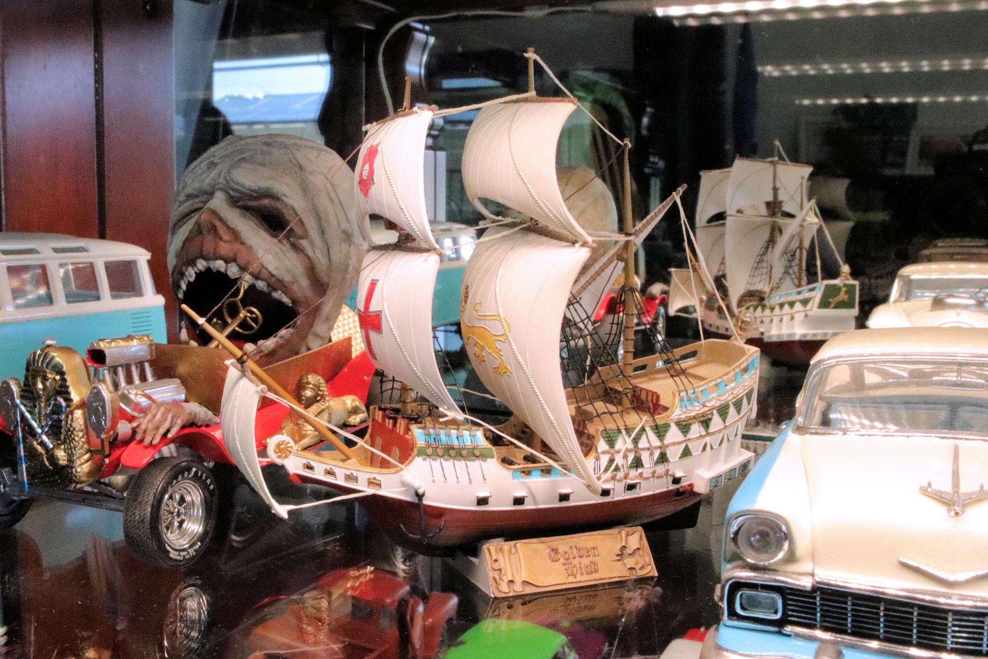 Hello Everybody! These are the last of the photos for this build... I promise. I think the scratch built ratlines make a big difference. This will be the cover shot. There's not much deck detail, but there it is. This is my traditional Display Case Photo, but it seems out of place with all these cars. My plan is to keep it in the curio cabinet. I think it looks much better here... right next to the catapult. As always, thanks for taking the time to look and thank you for your support patience. Please feel free to share any comments you may have. David G.
