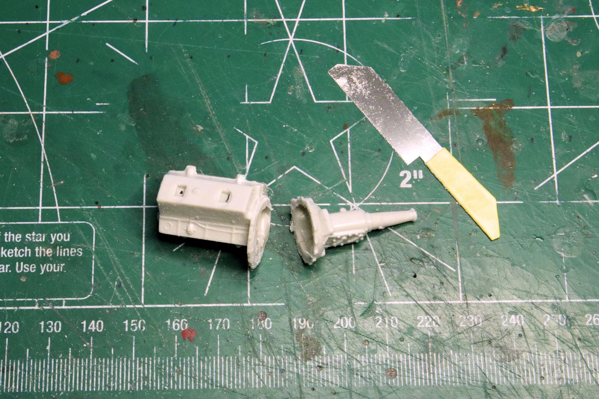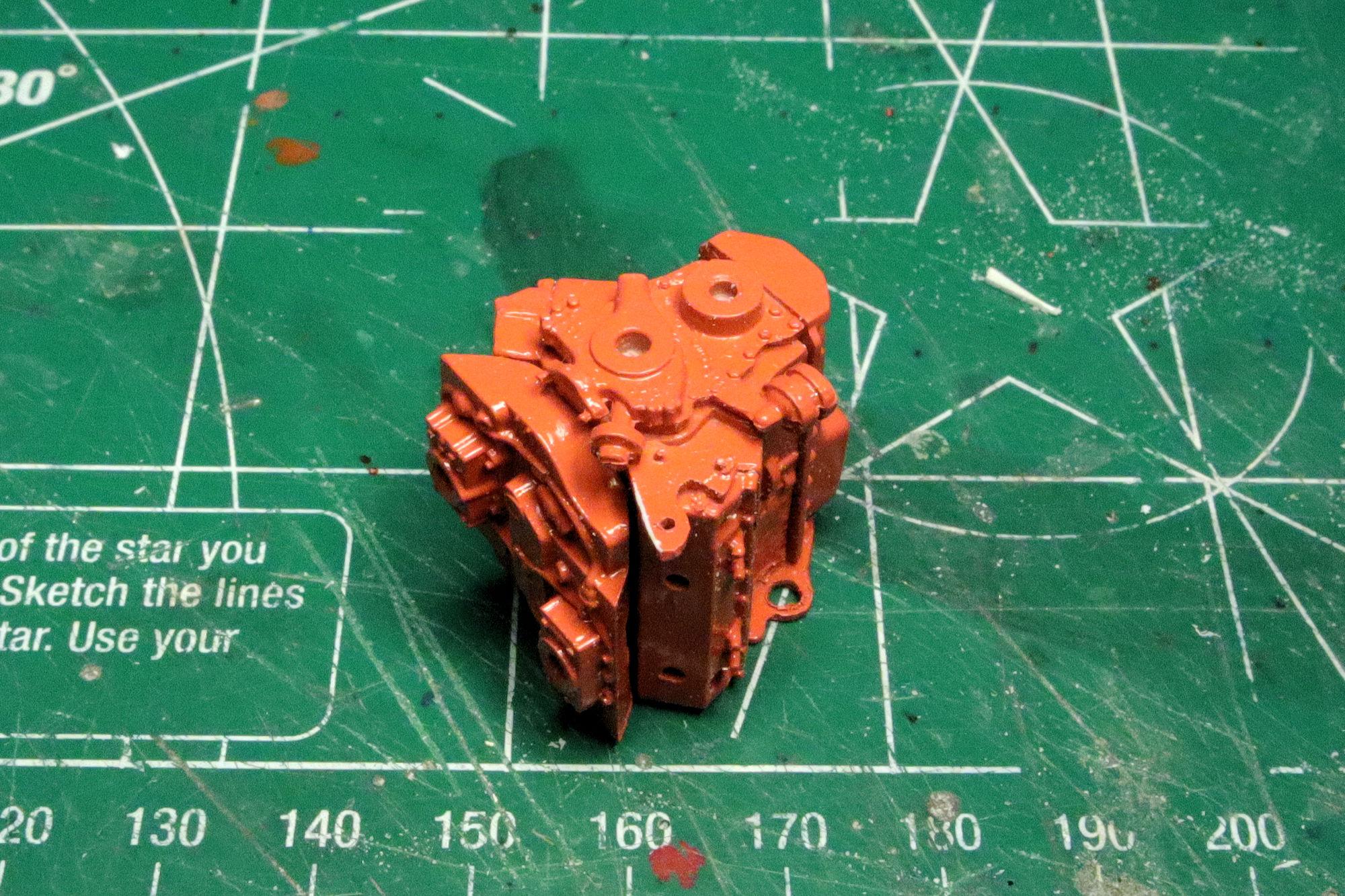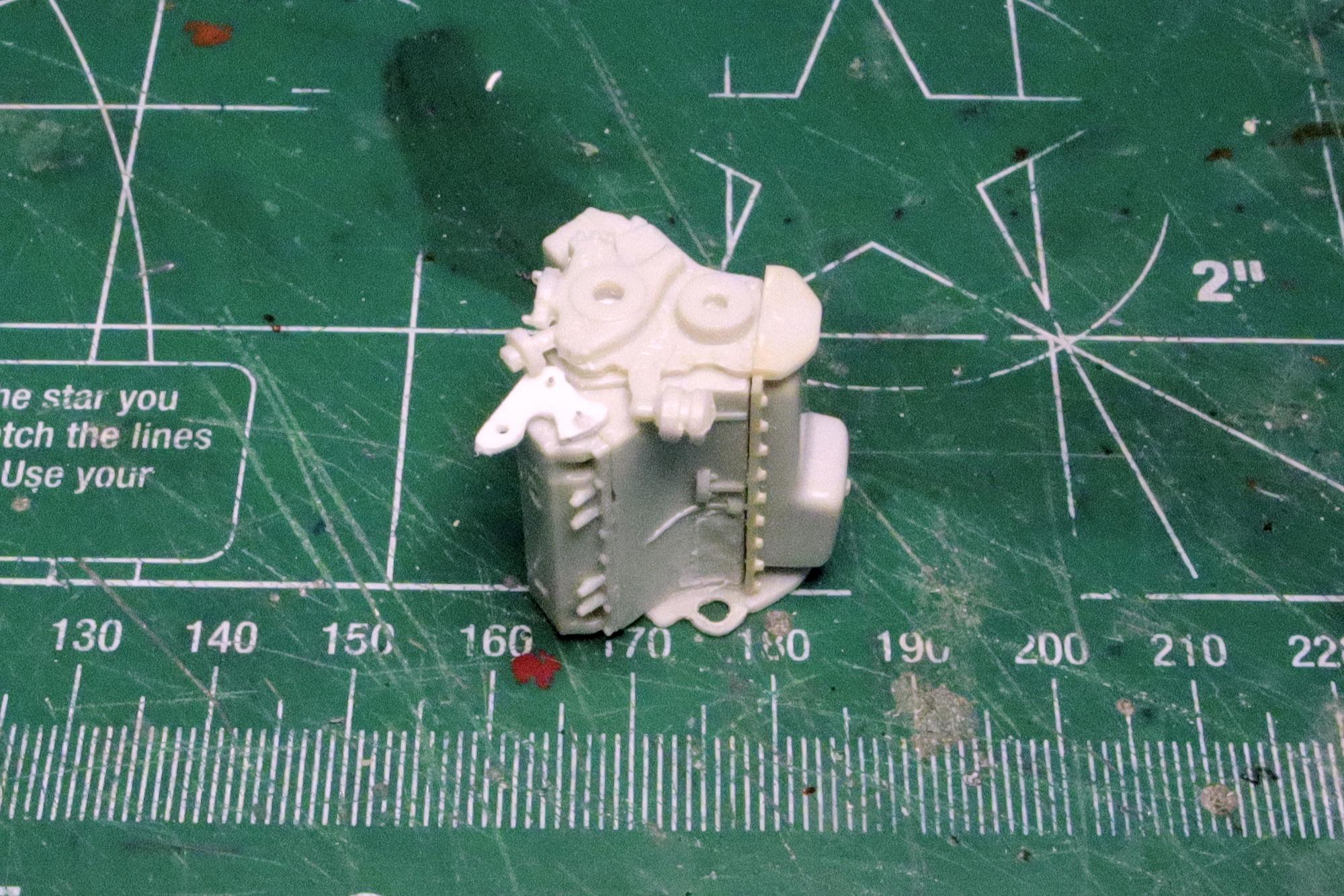 Thank you Greg. No, where the starter bump is on transmission is too high in relation to the engine block. It would place about 1/4 of the starter inside the cylinder bank. Thank you much Alan, that yellow certainly does seem like a good color for a hot rod. I really do like the Red Ram but I've moved on from that one. The one I found to use in place of it is the dual carb Max Wedge from AMT's '49 Merc. It has much better casting detail and without the blower it should allow me to put the hood on if I choose. And it feels like more of a daily driver engine than the blown Hemi... it's a little more realistic, I think. Thanks, David G.