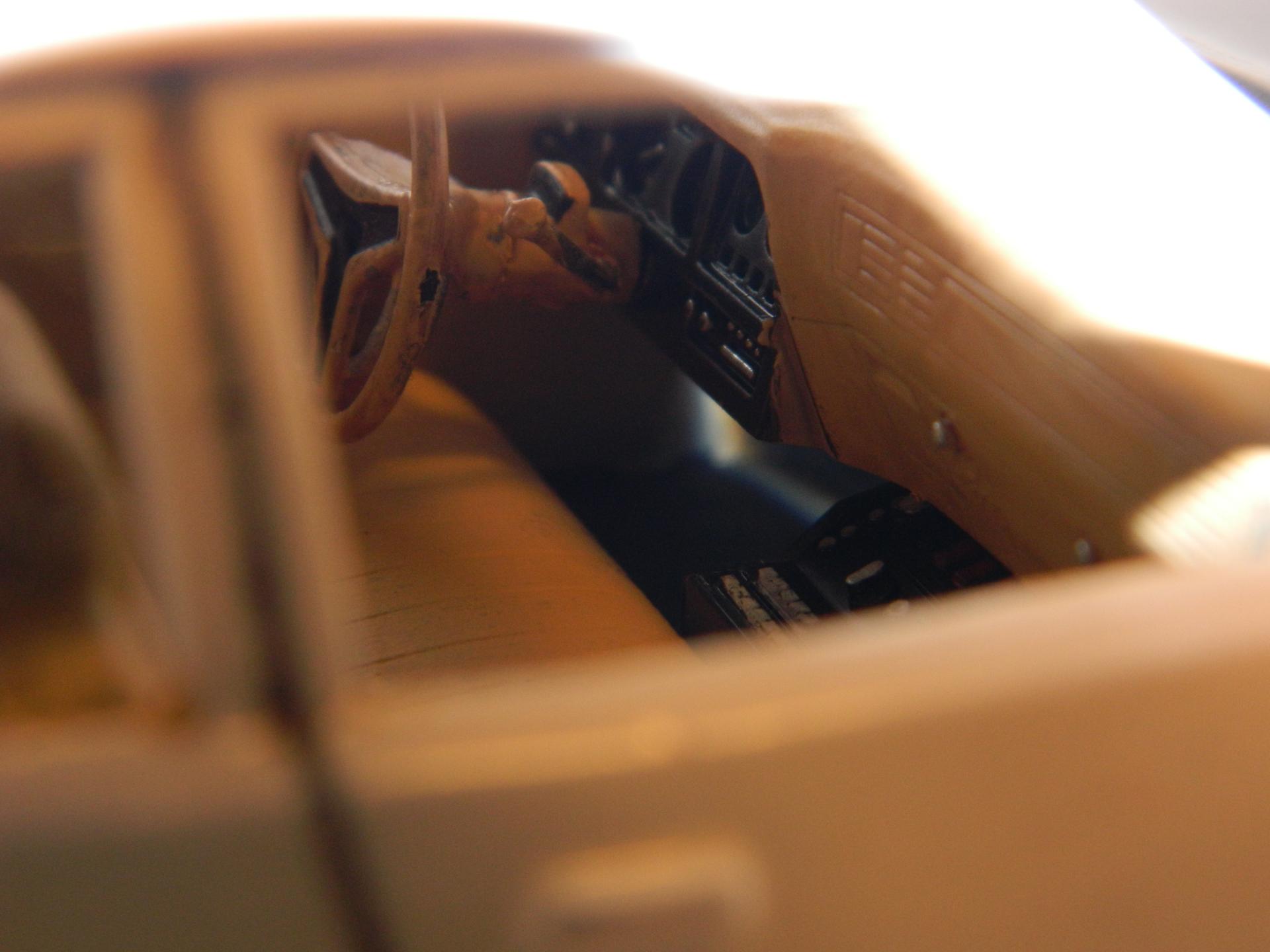 I fired up the paintbooth this morning and added another coat of Dupli-Color Forest Green Pearl to the roof. Because of the humidity, the paint blushed on part of the roof, but that polished out by rubbing a terrycloth towel on it. The join line on the roof is barely visible, but once I add several coats of gloss clear to the body, it'll probably come back. When you consider all the problems I have had with these Moebius kits, I don't think I'll be buying anymore. I do have other Moebius kits in the stash, but I'll build them when I want to and it'll be a while before I do. Moebius has a long way to go before they can be considered a good kit manufacturer by me. Right now, they are way down on the list! I removed the tape and mockup the body with the interior, chassis, and bed. Looks good so far, but it has been a lot of extra work! More to come...