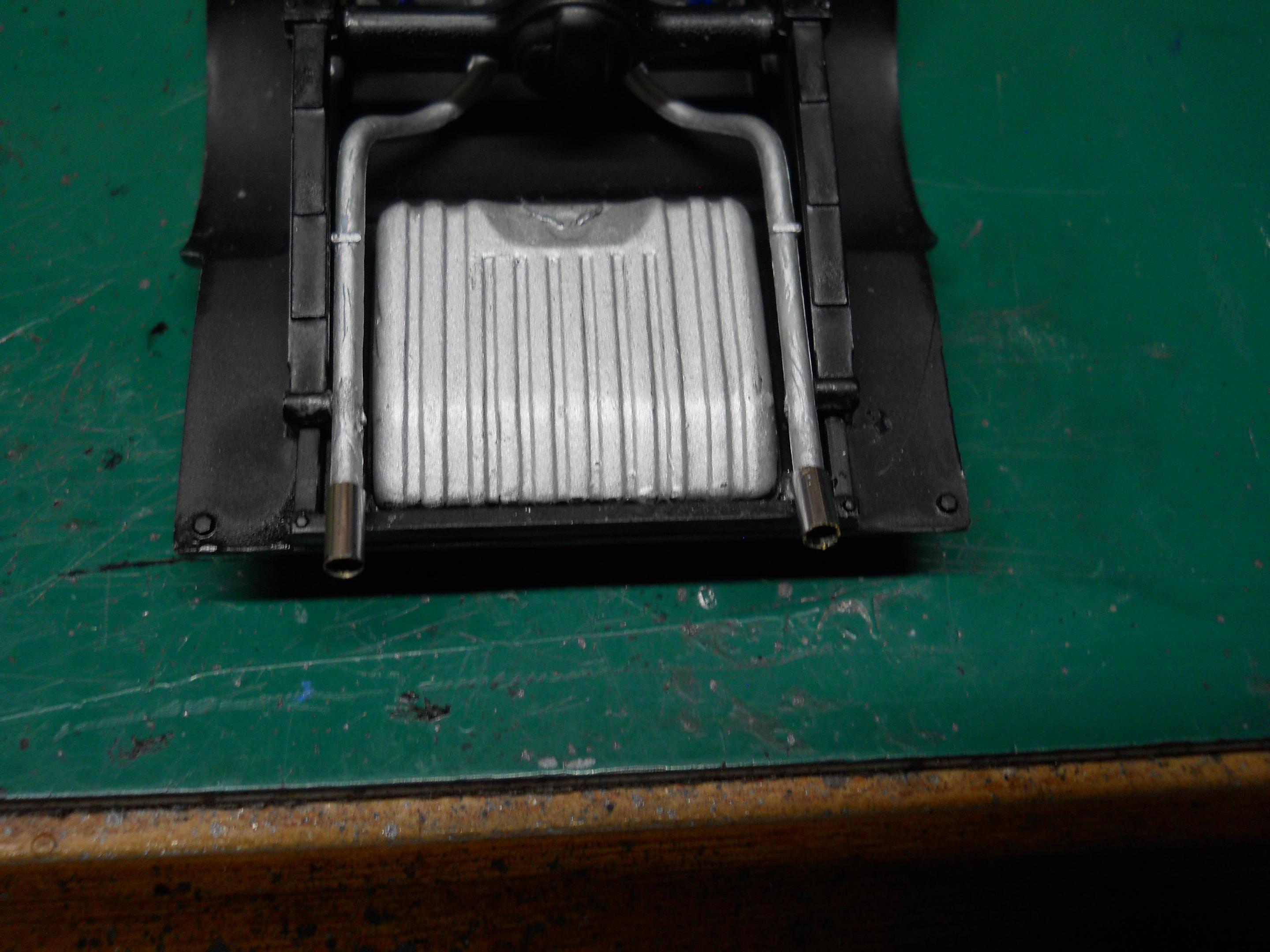 1967 Mercury Comet Cyclone GT One difference between the '67 Comet and the '67 Fairlane is the rear deck difference. The rear deck is longer on the Comet than the Fairlane and it shows in the AMT kit. I made a plate for the chassis which will be painted with Tamiya TS-6 Matt Black. The exhaust tips will either be bent into a straight position or removed for the aluminum tubing.
