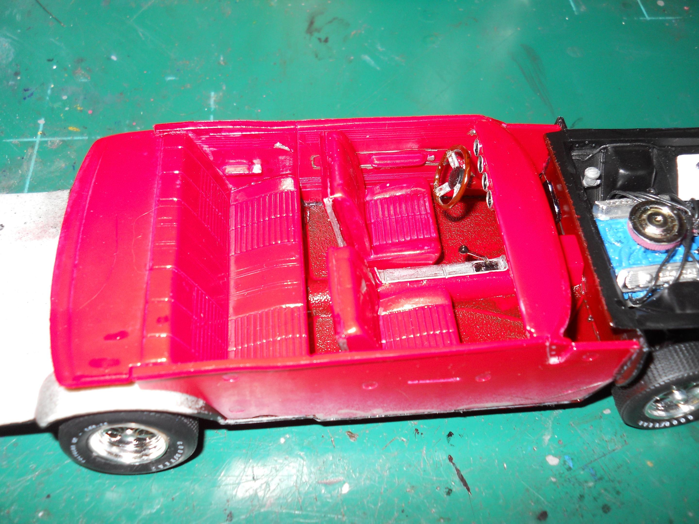 I painted the roof liner of my Merc today. The hood is in a container of Easy Off Oven Cleaner to remove a bad paint job. The Merc is now ready for assembly!