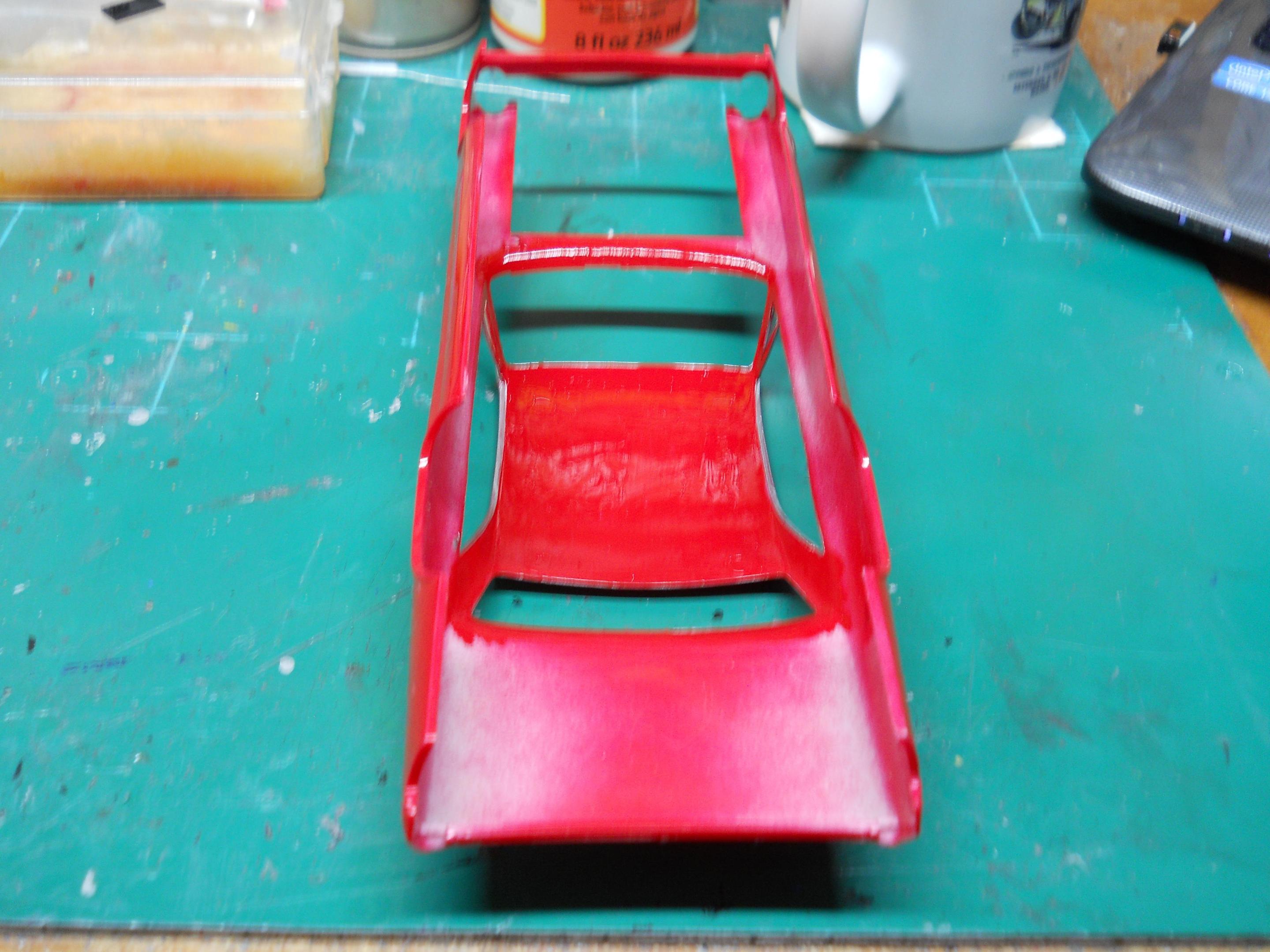 1967 Mercury Comet Cyclone GT I glued the body on, but the exhaust tips are too far in under the body to be seen, plus there is a gap between the end of the chassis and the inside of the rear bumper. And, the hood is in need of a repaint.