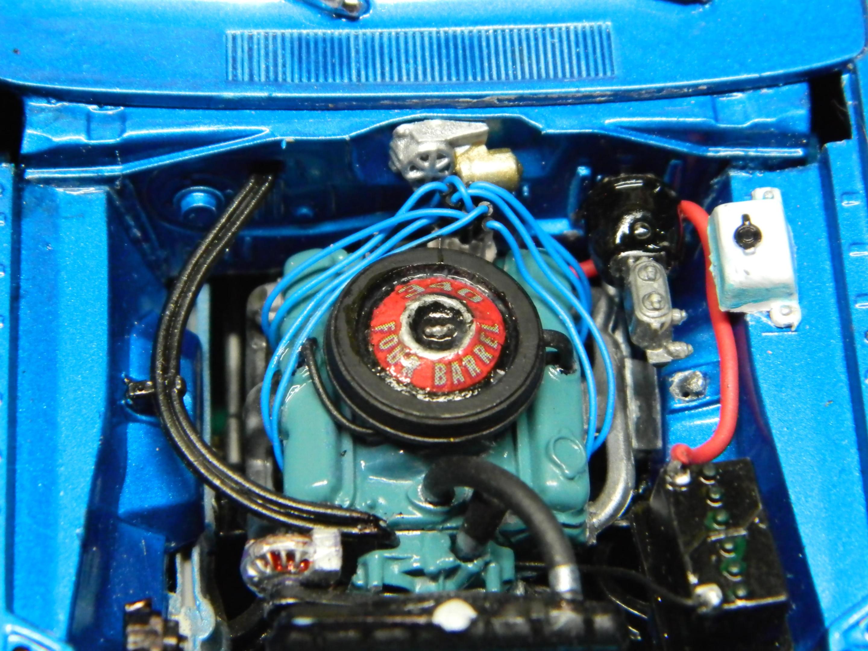 The engine came from the AMT 1971 Duster 340 kit. I originally got the 340 for another project, but that was cancelled as I had a change of heart. Many Dart GTS' came with the 340 engine, so I added that engine to my build. -